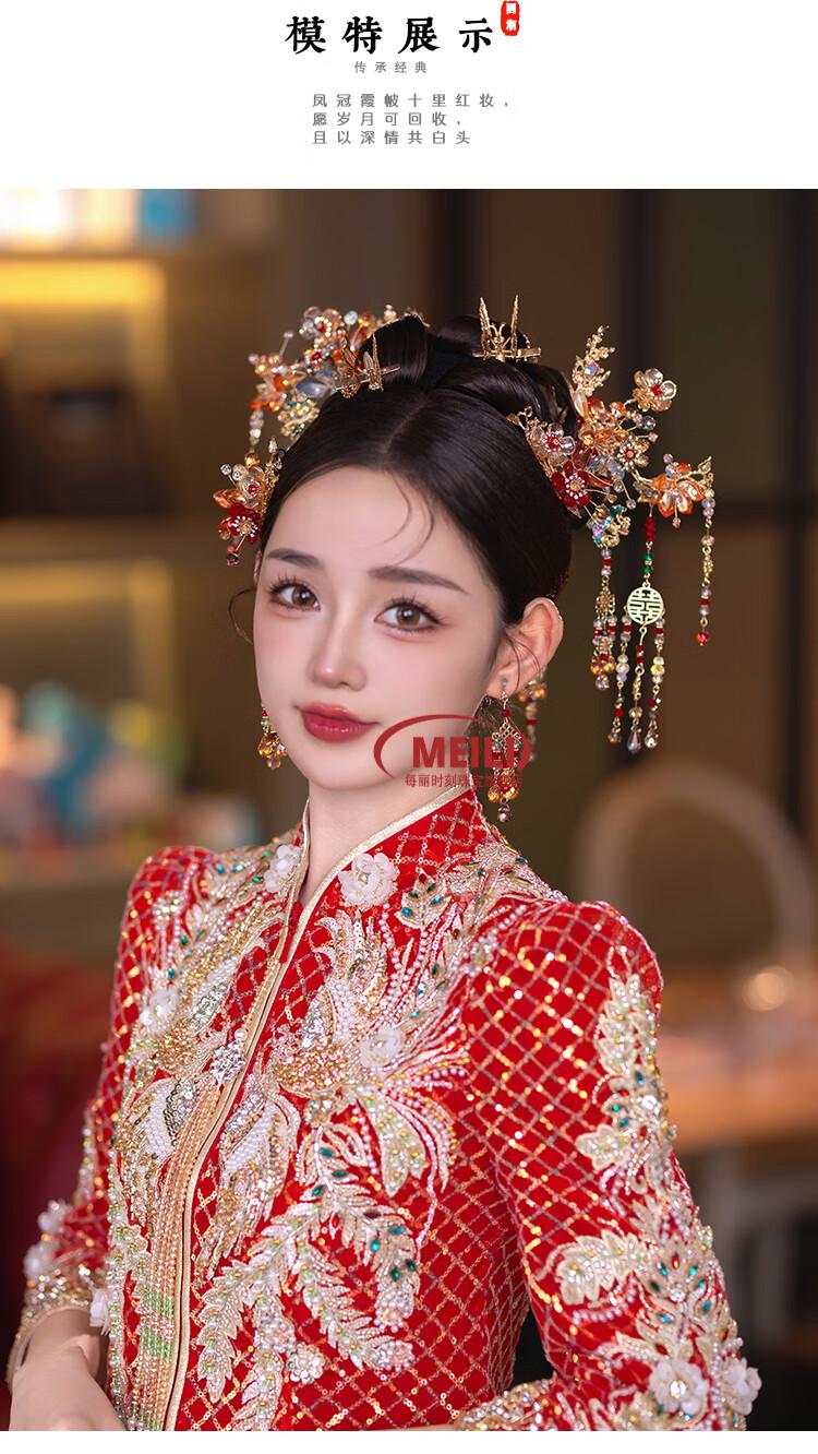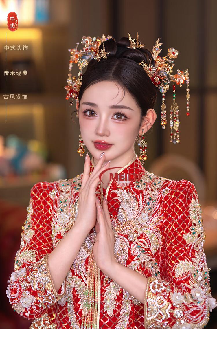 Fat Donglai's same style Xiuhe clothing and headwear Xiuhe female bride Xiuhe 2024 new new Chinese style bride autumn and winter horse face red jade 8-piece set + ear clip