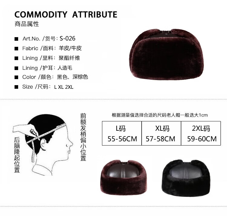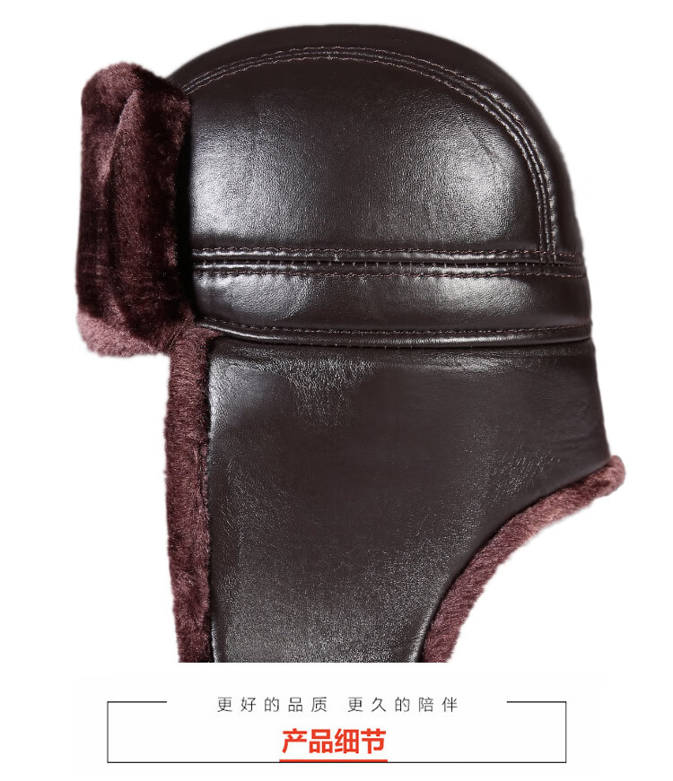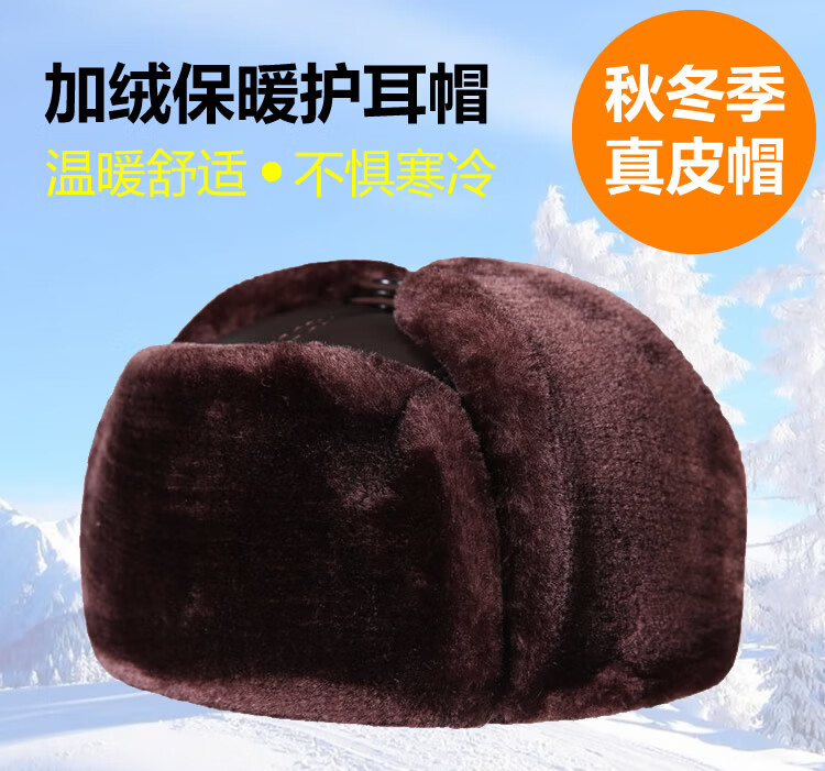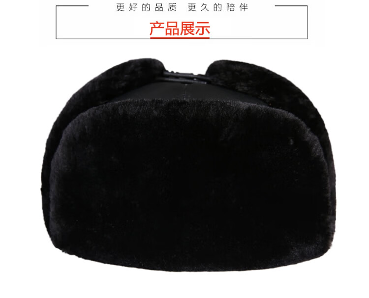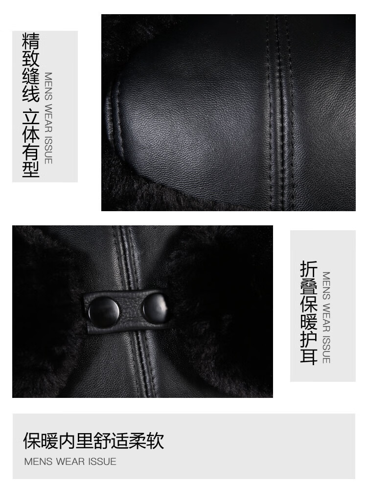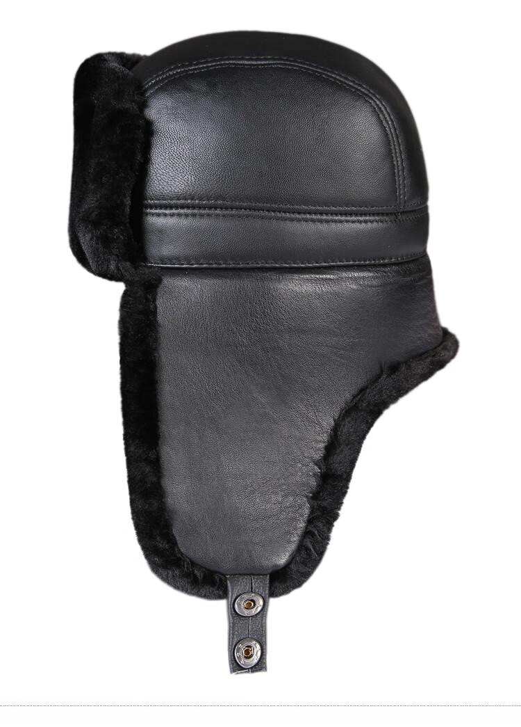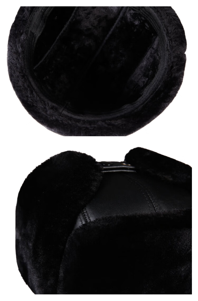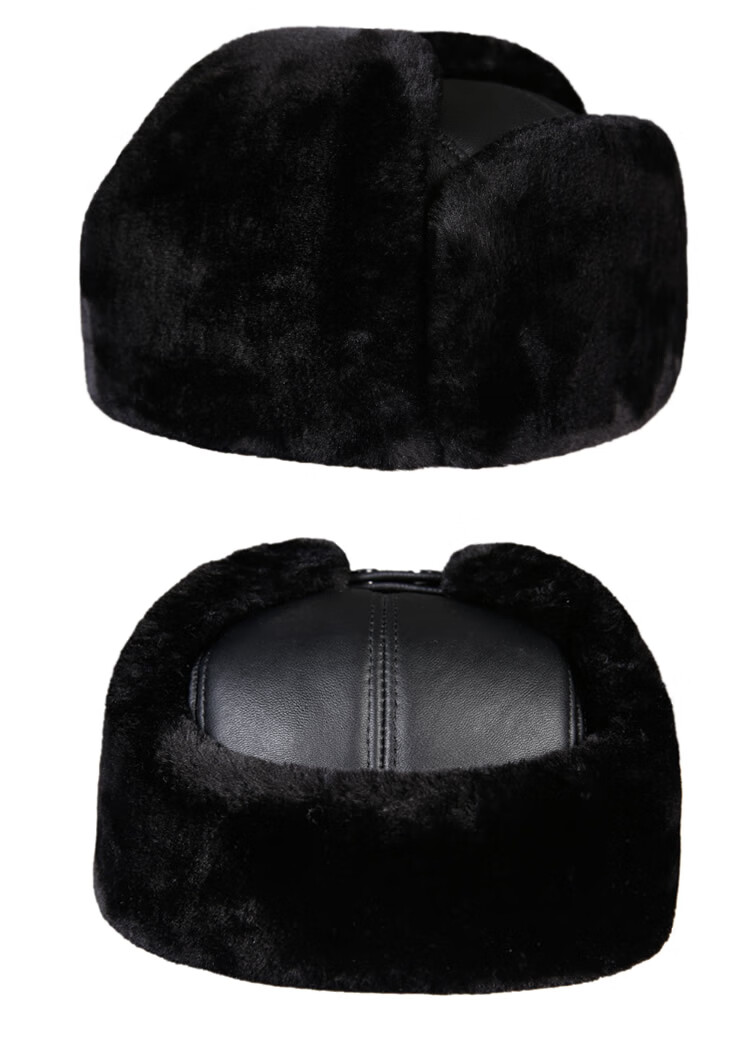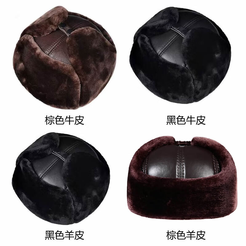 Aushan genuine leather warm ear protection hat for middle-aged and elderly men in winter, father, old man, old man cotton hat, grandpa Lei Feng hat plus velvet, first layer sheepskin - black L (head circumference 55-56cm)