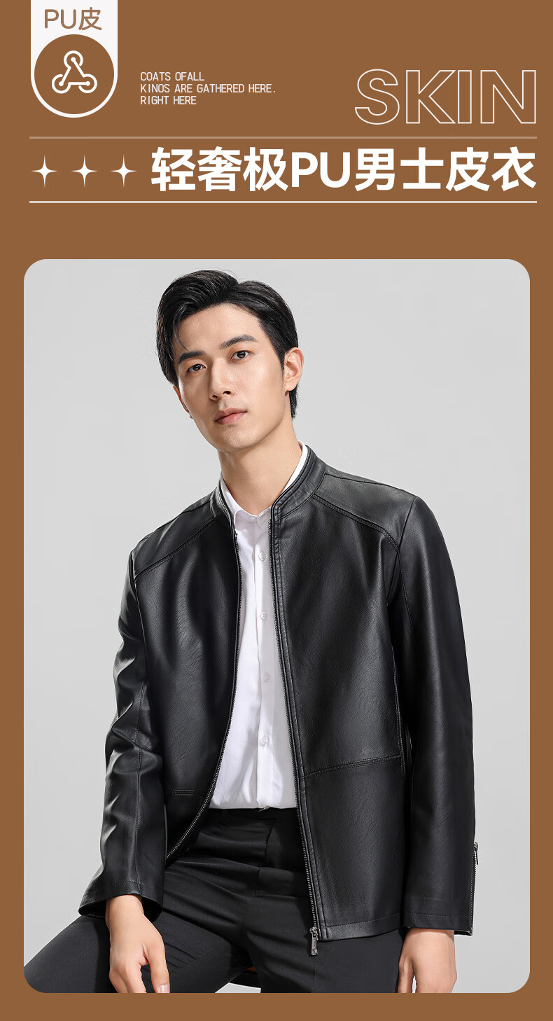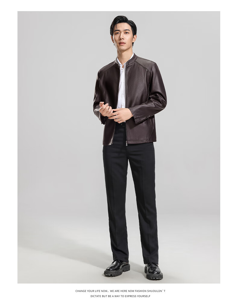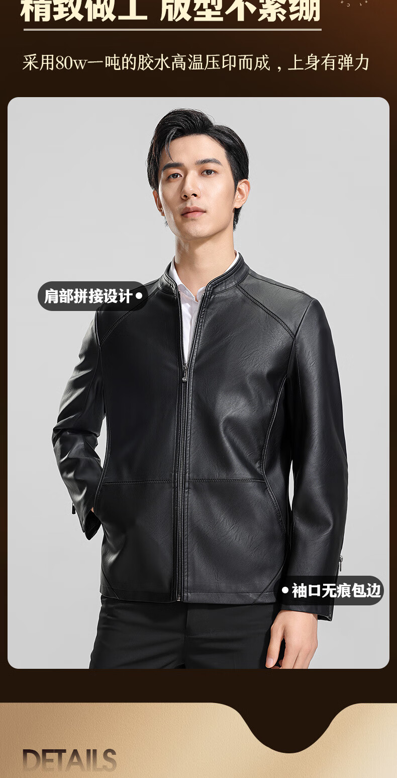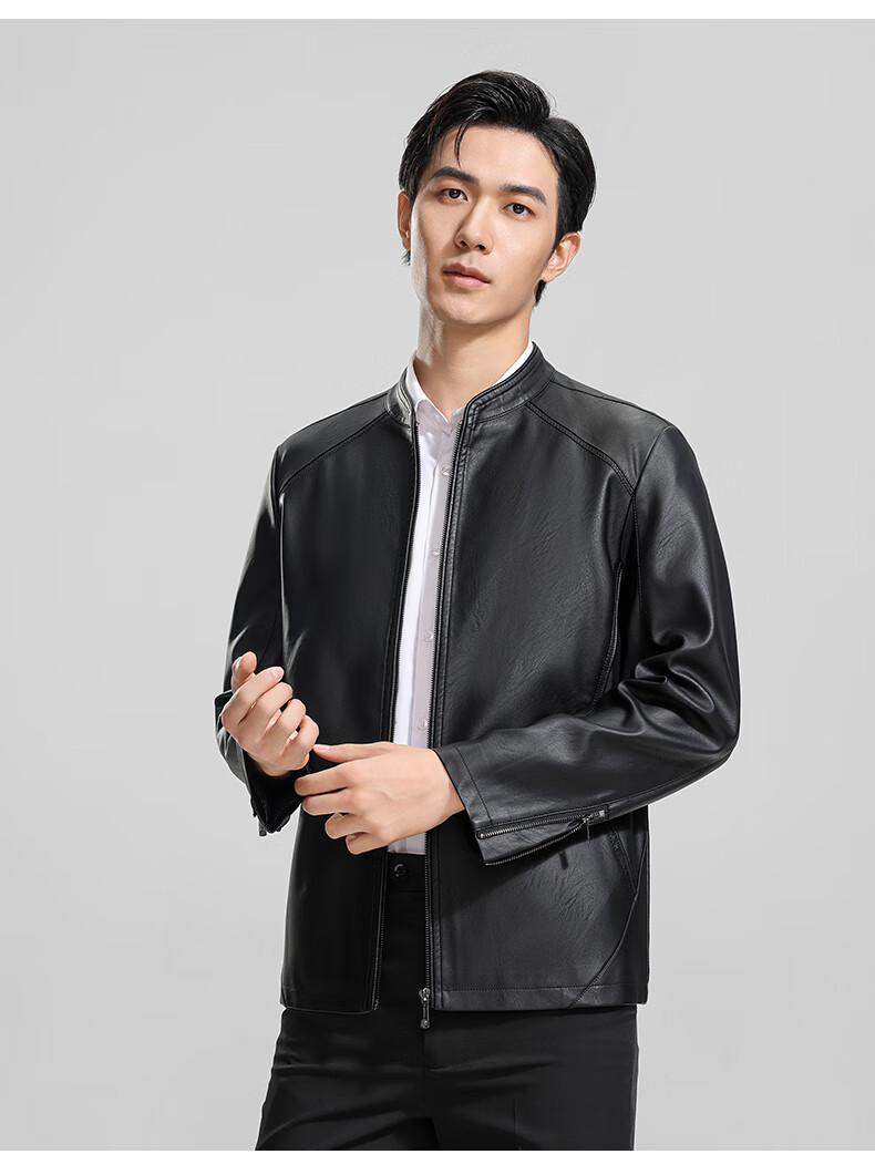 ROMON Men's Imitation PU Leather Stand Collar Leather Jacket Spring and Autumn New Business Casual Light Luxury Leather Jacket High-end Windproof Jacket Top Hongka L 175