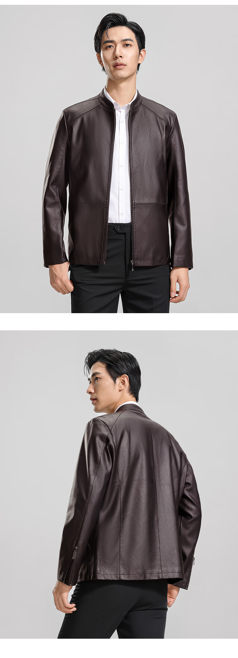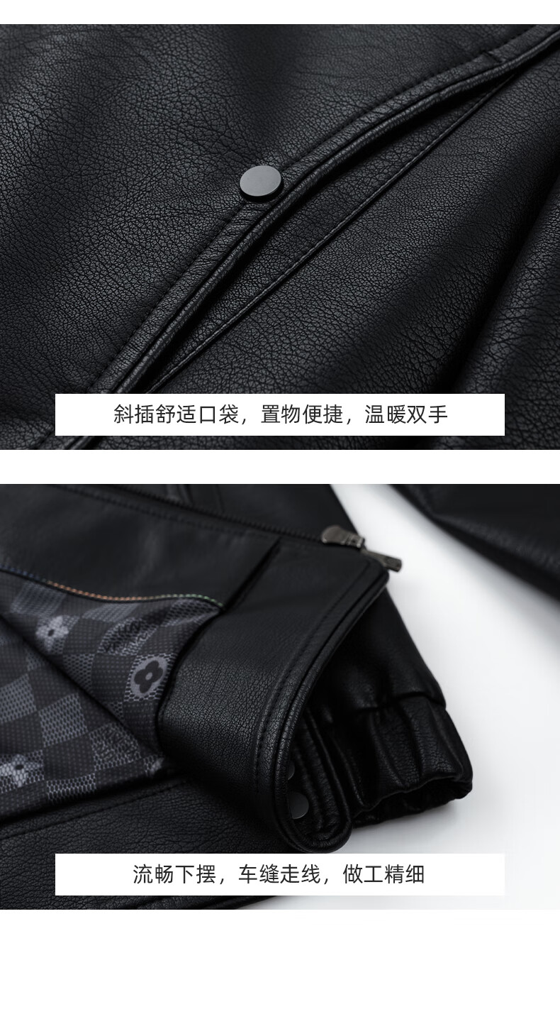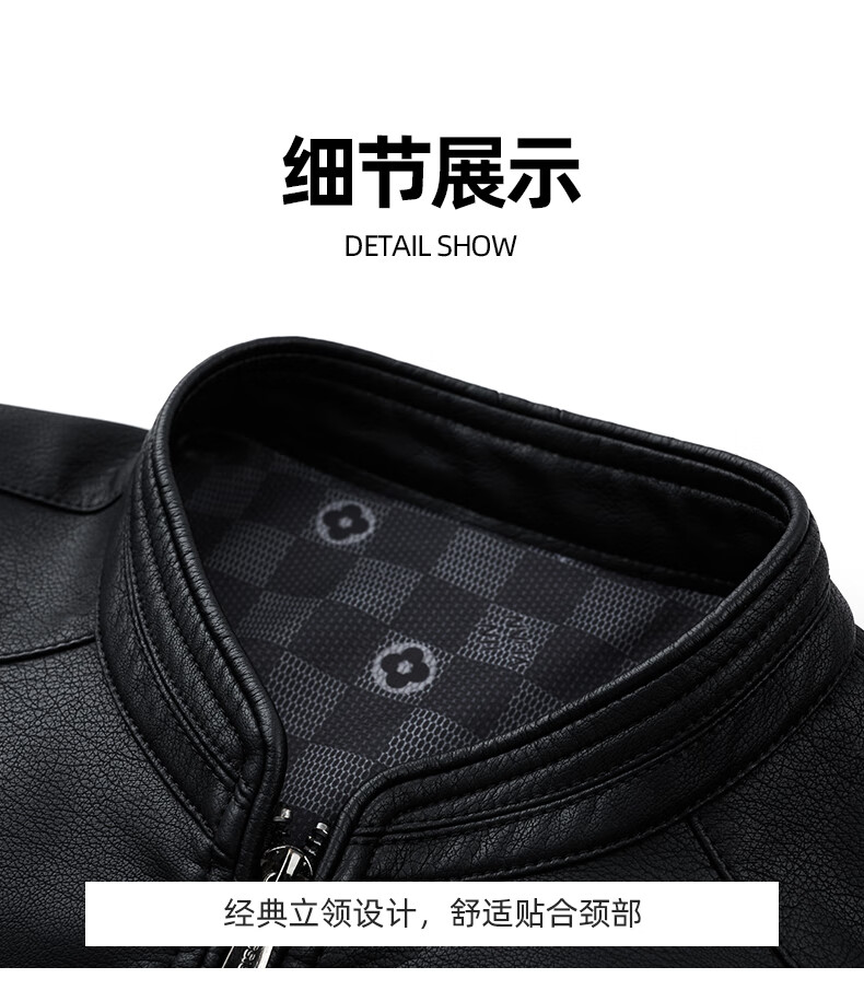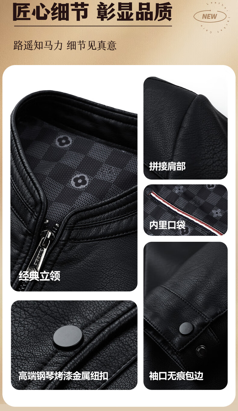 ROMON Men's Imitation PU Leather Stand Collar Leather Jacket Spring and Autumn New Business Casual Light Luxury Leather Jacket High-end Windproof Jacket Top Hongka L 175