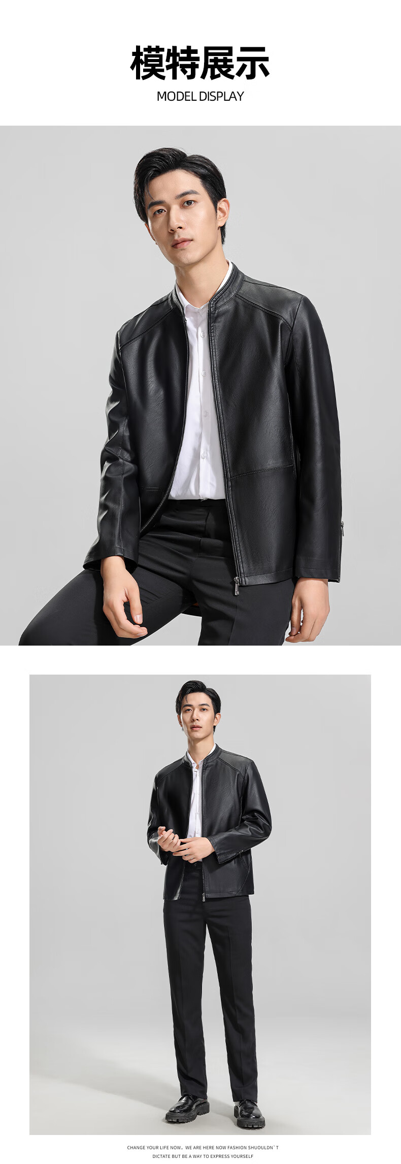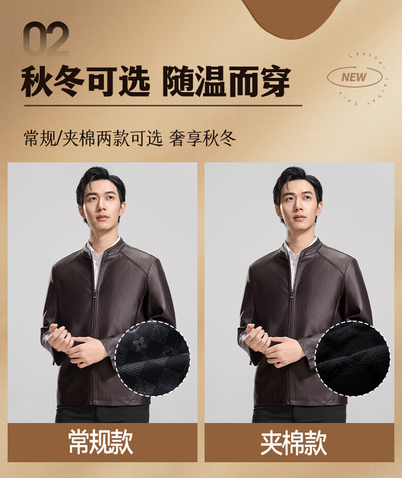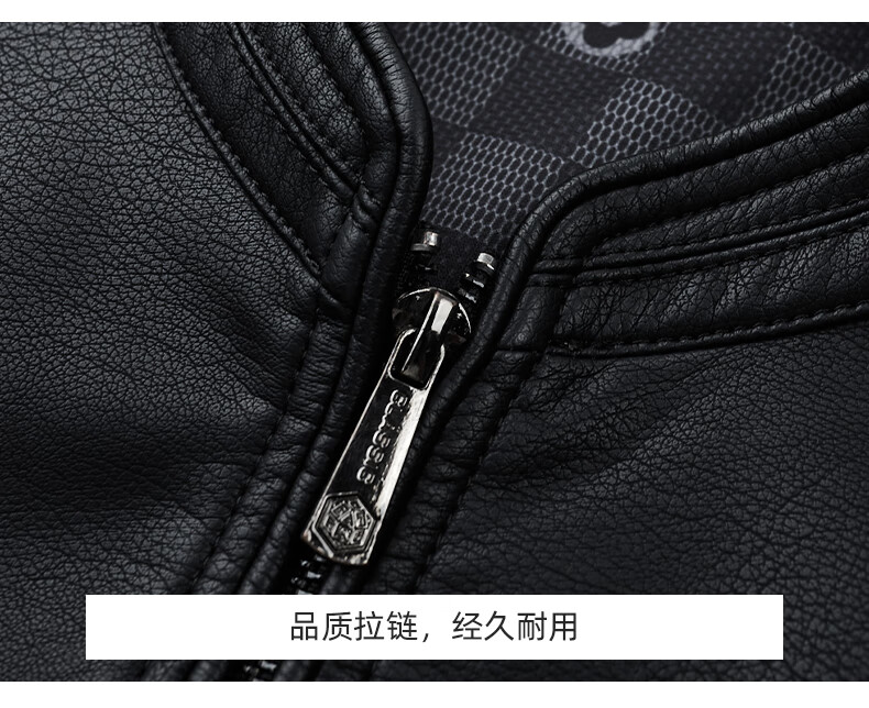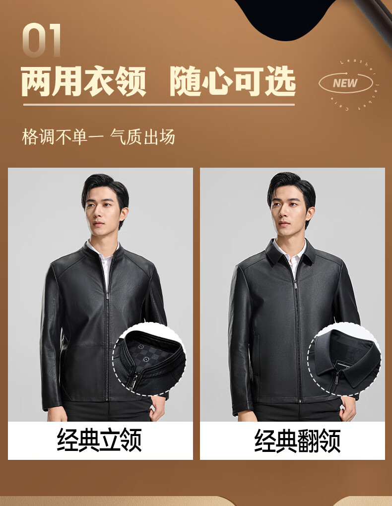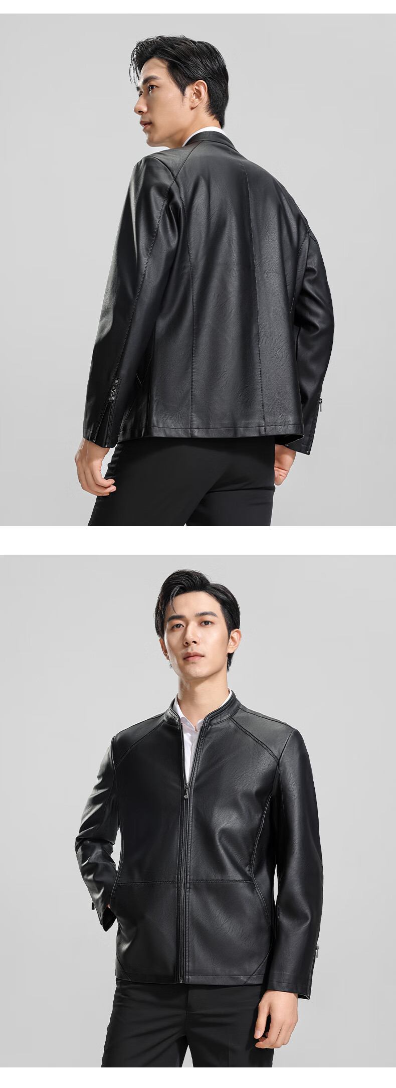 ROMON Men's Imitation PU Leather Stand Collar Leather Jacket Spring and Autumn New Business Casual Light Luxury Leather Jacket High-end Windproof Jacket Top Hongka L 175