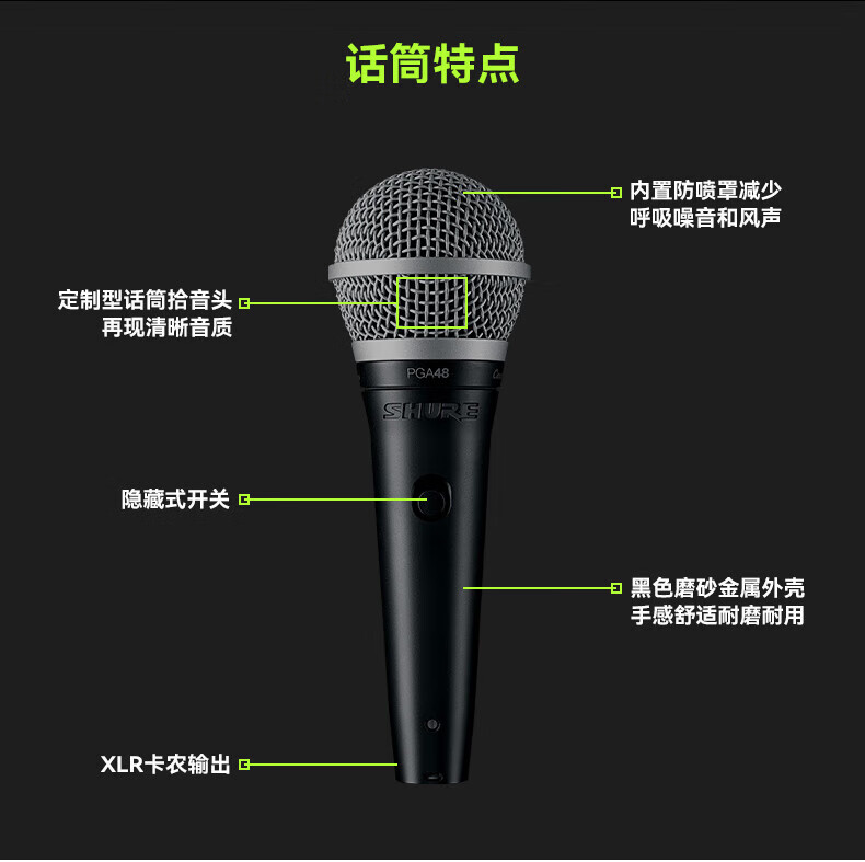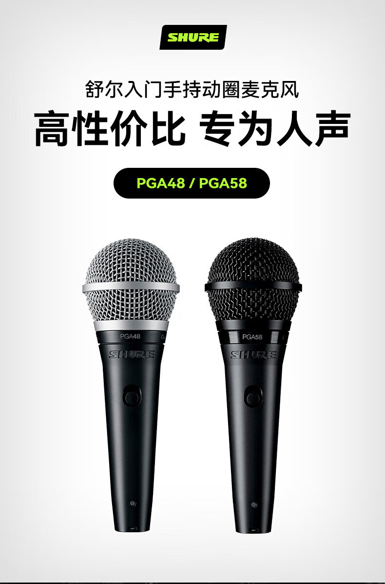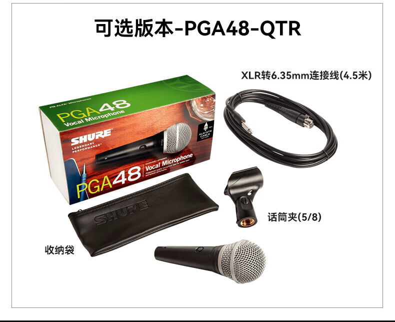 SHURE Genuine original brand new Suzhou-made Shure SV100 SV200 PGA48 PGA58 dynamic microphone home karaoke guitar speaker playing and singing microphone speech KTV PGA48LC + 5 meters 6.5 line genuine national line