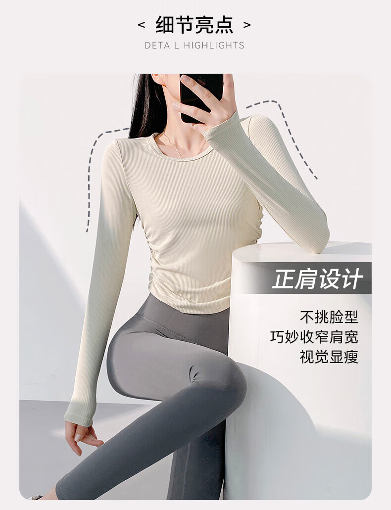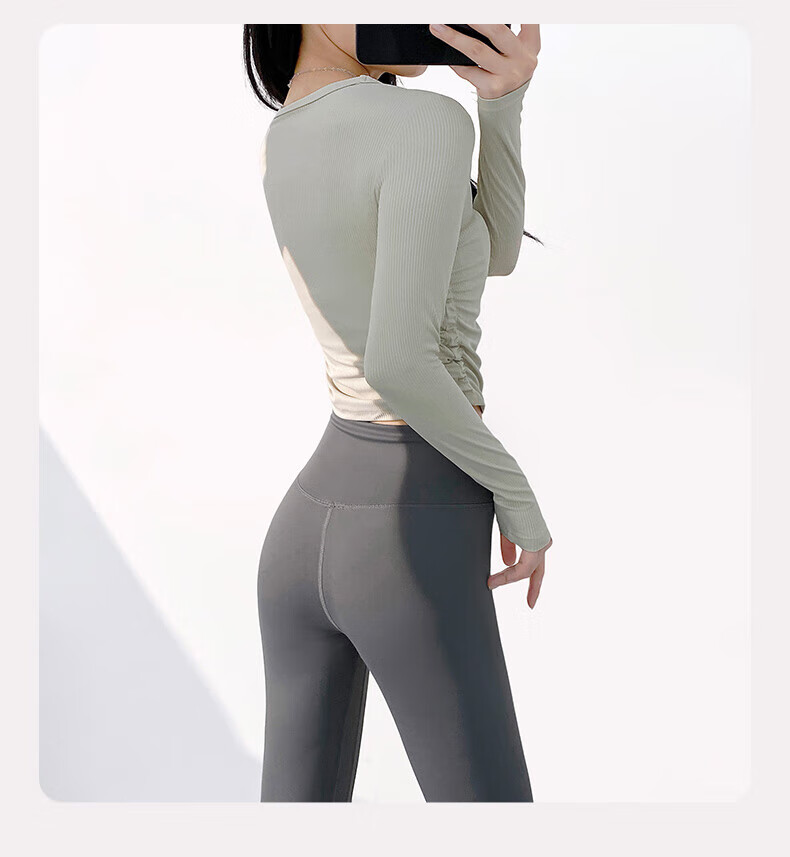 Lu Geli Yoga Wear Women's Sports Suit Autumn and Winter Long Sleeve Quick-Drying Pilates Training Wear Fitness Two-piece Set Yoga Wear 2-piece Set White + Gray XL Recommended 115-130 Jin Jin equals 0.5 kg