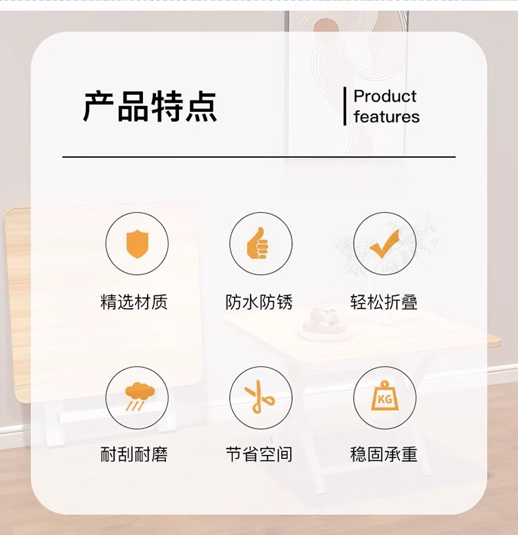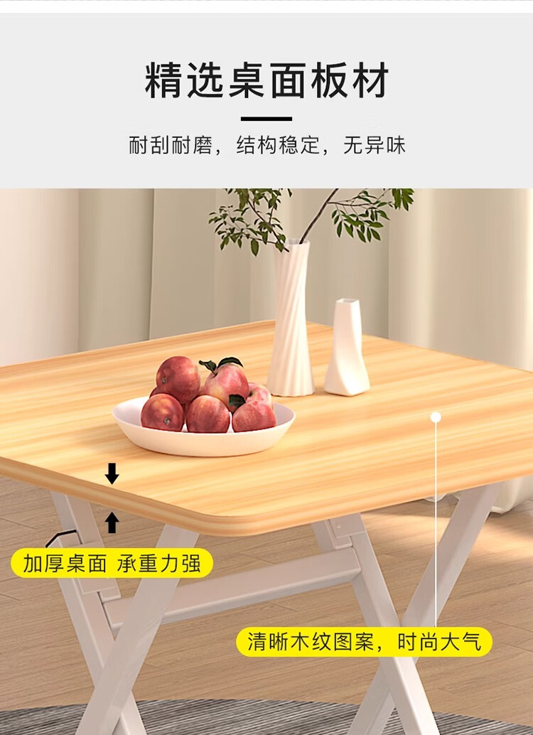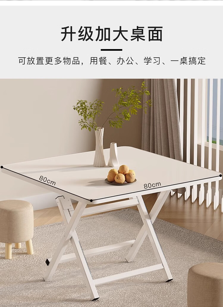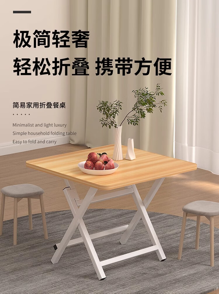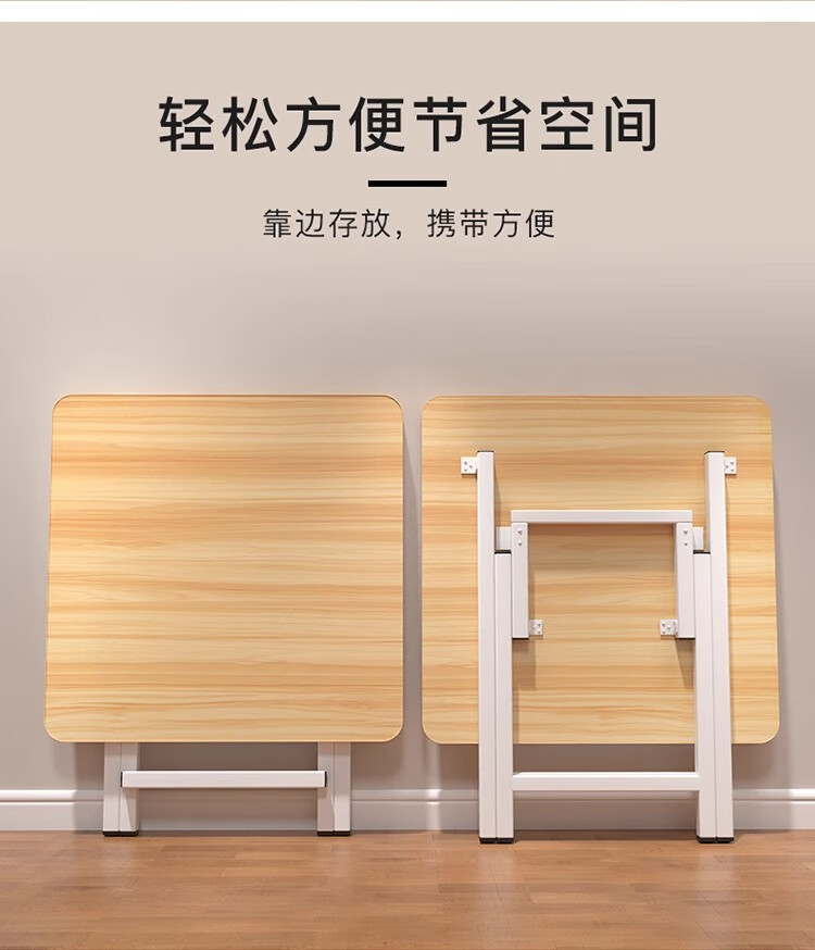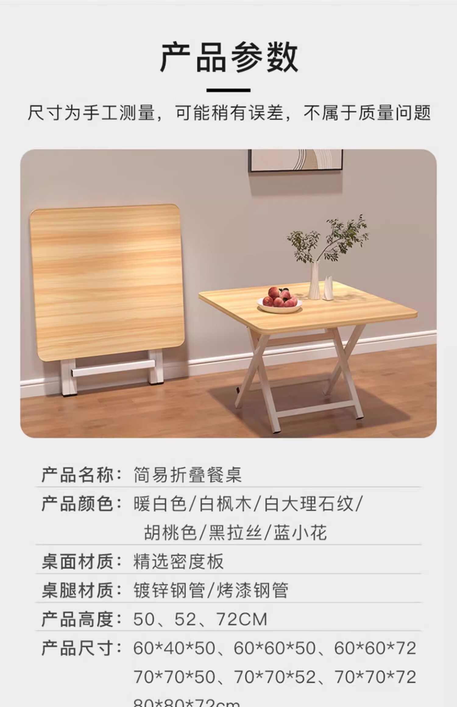 Kunfeng foldable dining table household small table rental house small apartment dining simple square table outdoor portable stall table walnut color 60*60*50 H galvanized legs