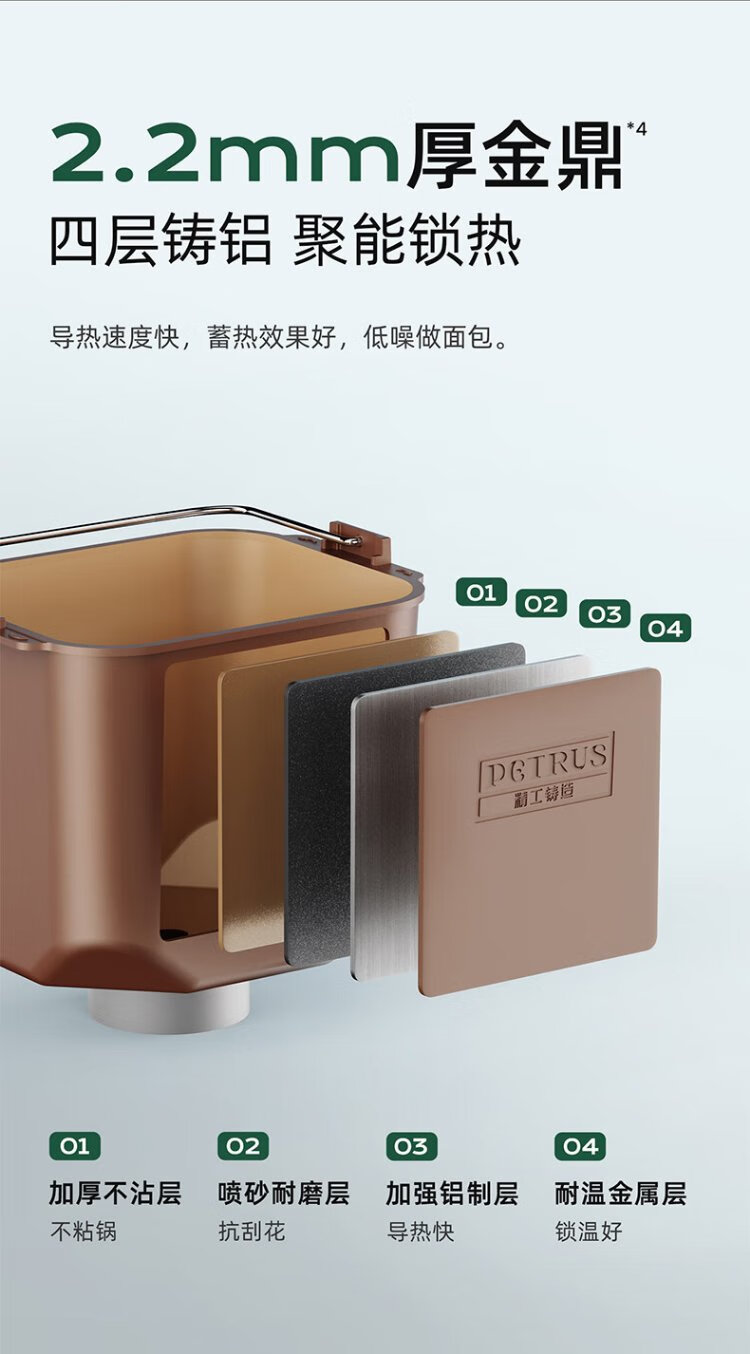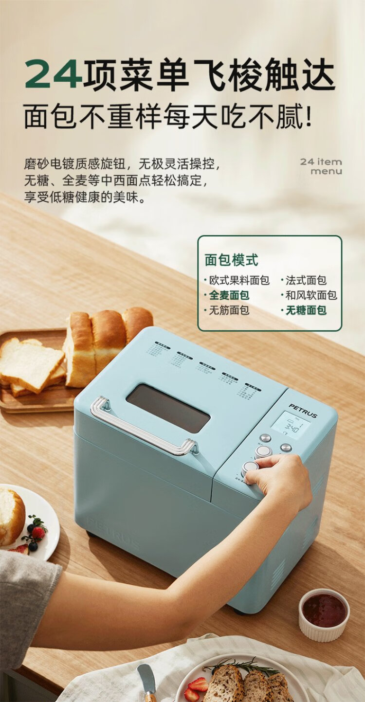 Petrus Toaster Home Fully Automatic Multi-Function Small All-in-One Breakfast Machine Sandwich Toast and Kneading Light Food Machine Double-tube Ice Cream PE9709 Holiday Gifts Light Toaster + Ice Bucket Set