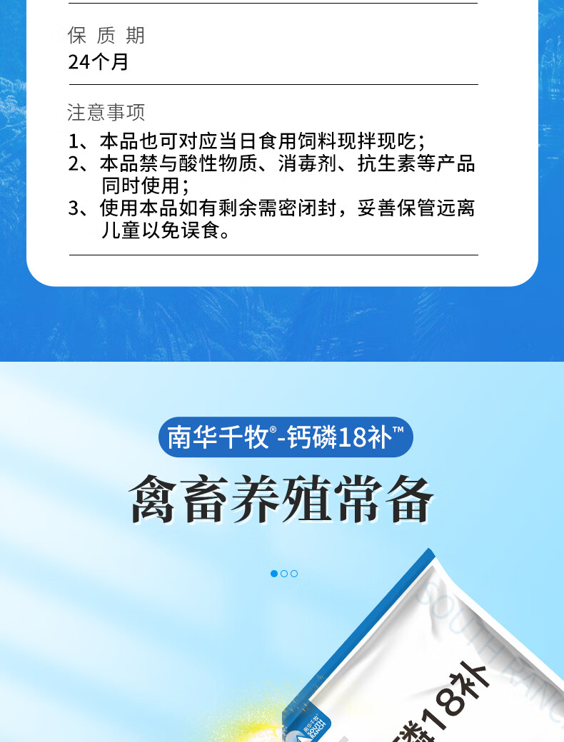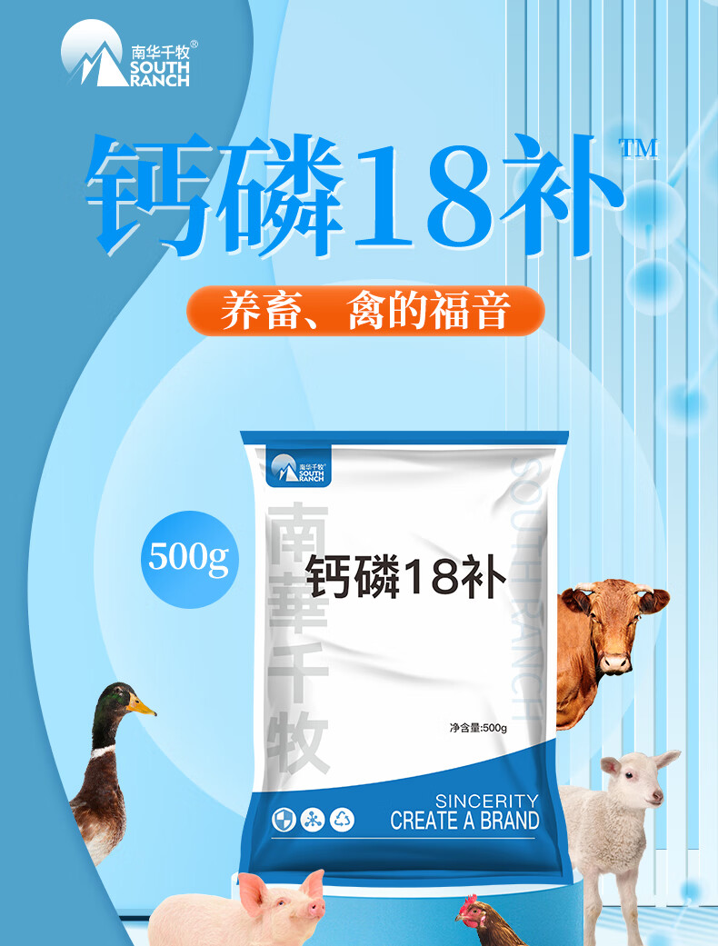 Nanhua Qianmu calcium and phosphorus 18 supplements for veterinary use multi-dimensional calcium and phosphorus quick supplement for pigs, cattle, sheep, chickens, ducks and geese livestock and poultry trace element feed additives calcium and phosphorus 18 supplements 500g*1 bag