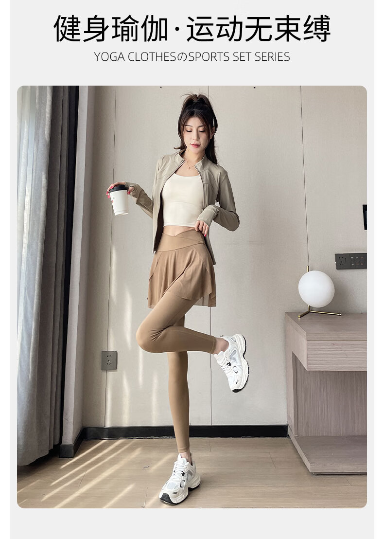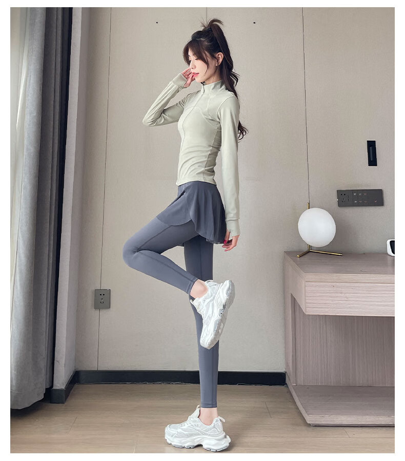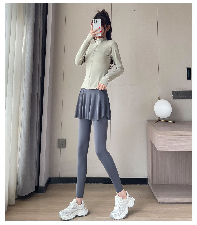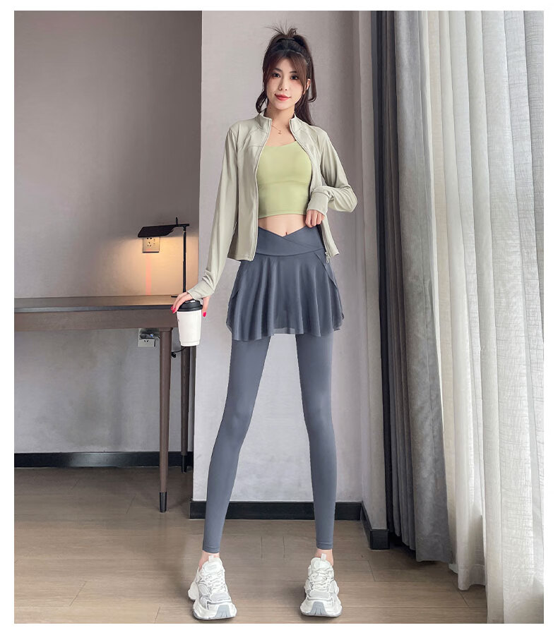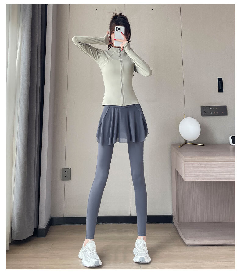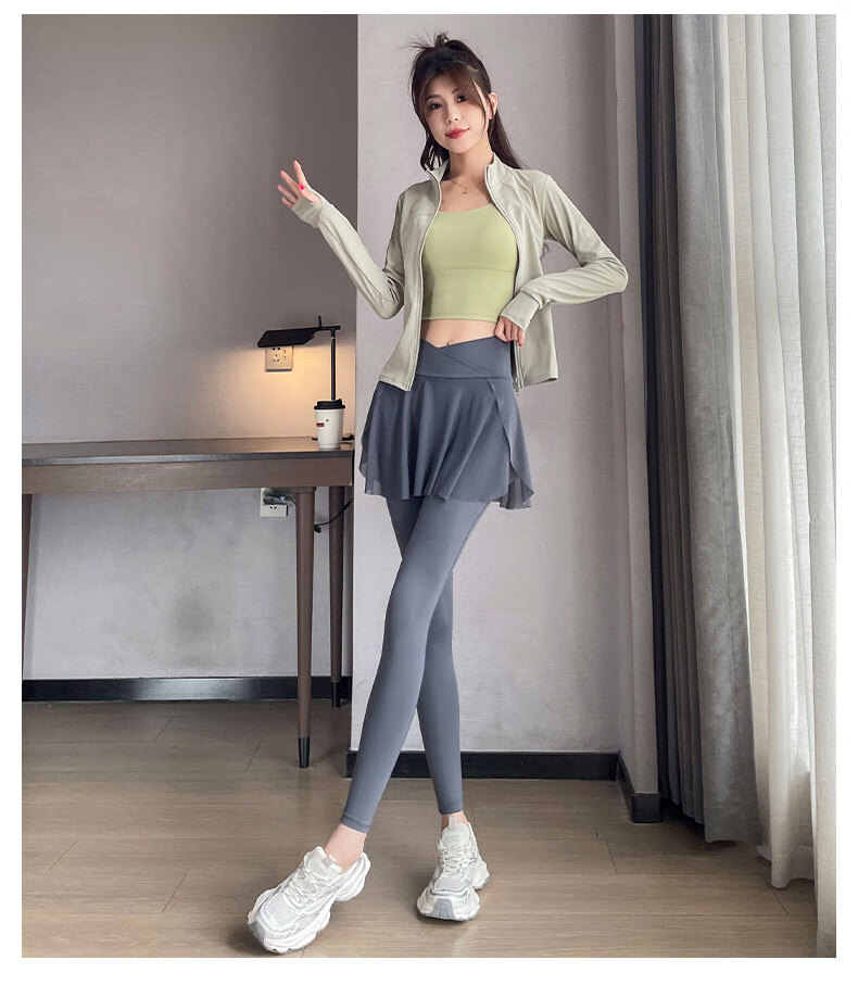 Aimengniao (Aimengniao) running sports suit women's mountaineering clothes and pants autumn morning running clothes gym Pilates yoga clothes skirts and pants three-piece set three-piece set linen + cardamom green + gray XL (refer to bust and hip measurement for size selection)