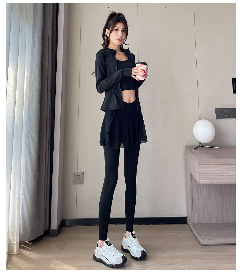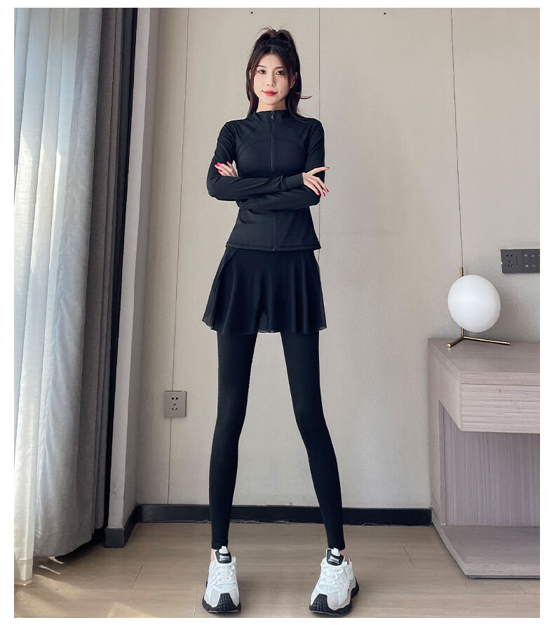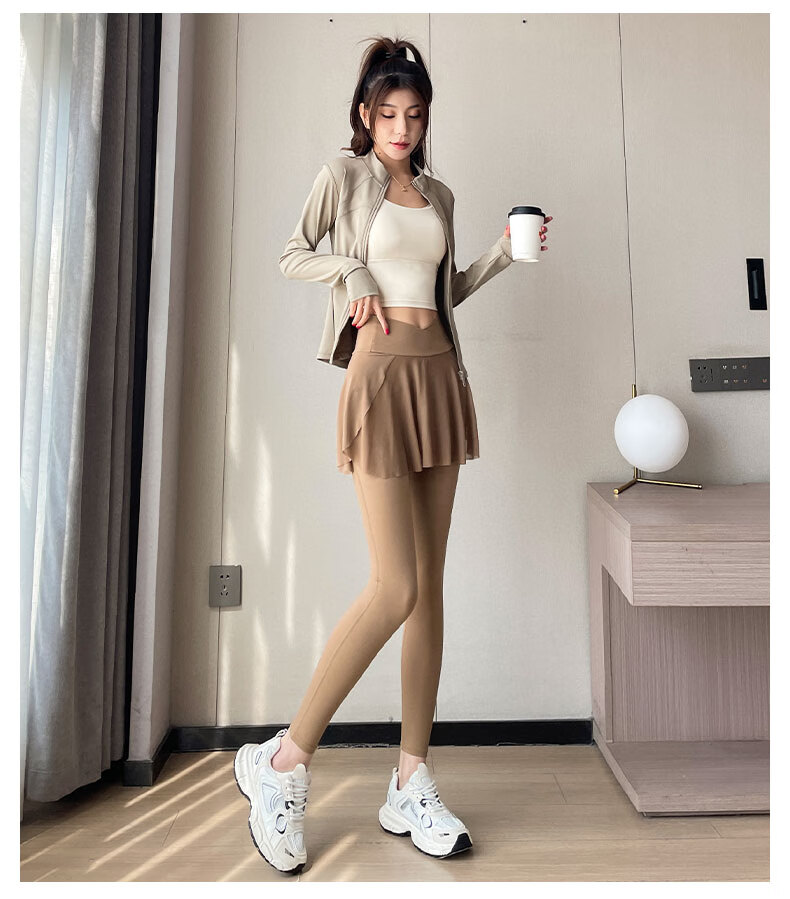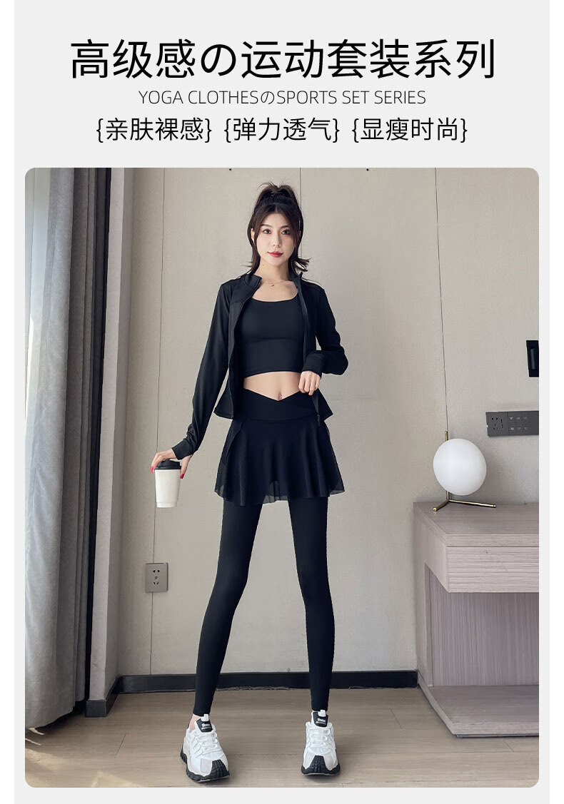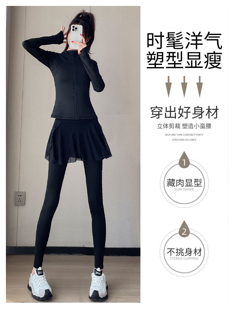 Aimengniao (Aimengniao) running sports suit women's mountaineering clothes and pants autumn morning running clothes gym Pilates yoga clothes skirts and pants three-piece set three-piece set linen + cardamom green + gray XL (refer to bust and hip measurement for size selection)