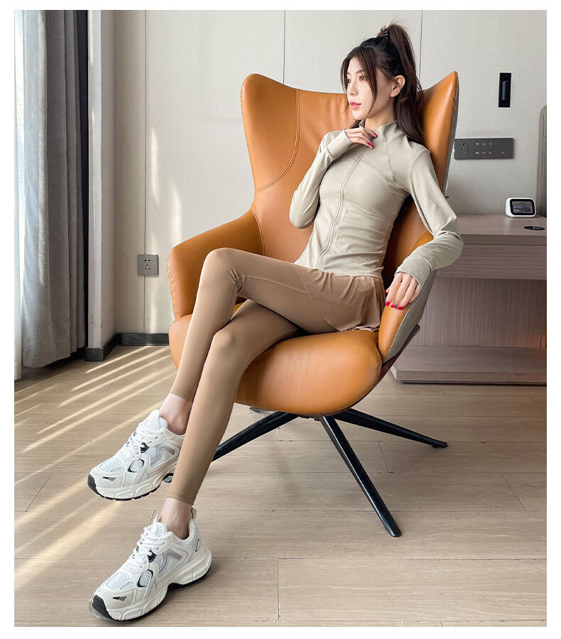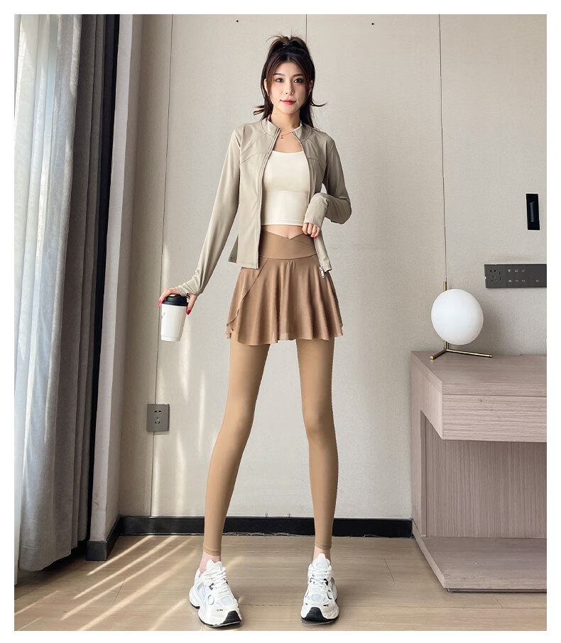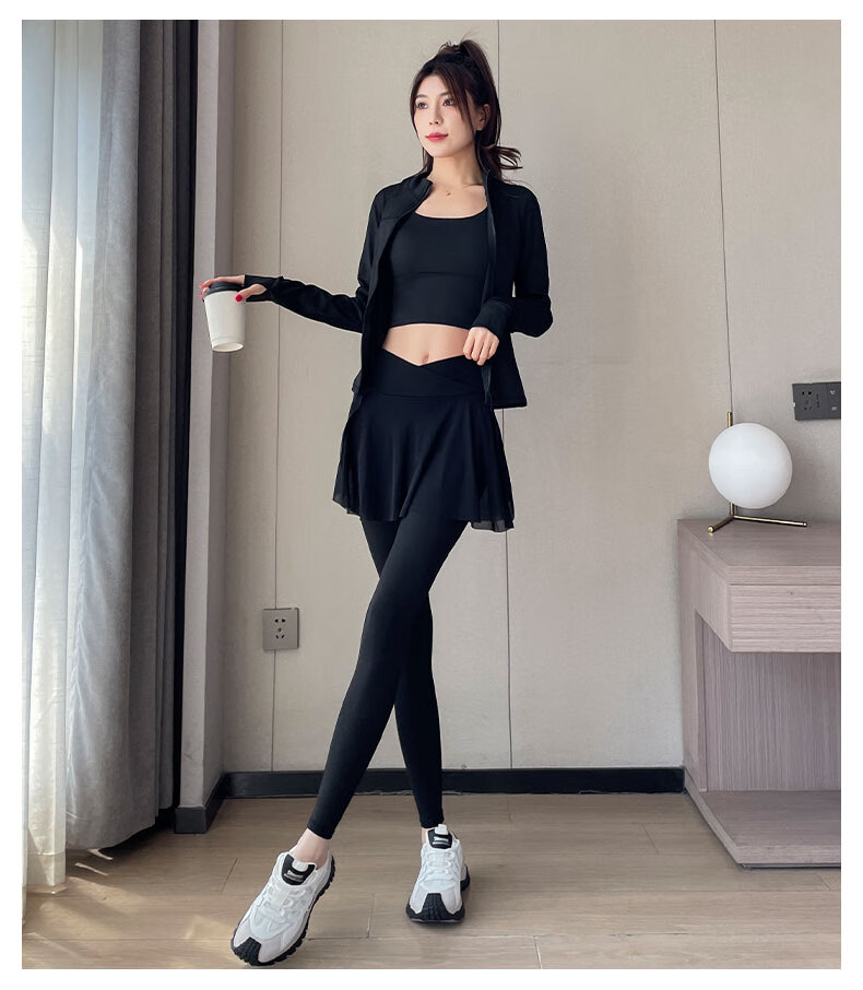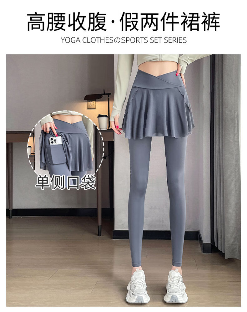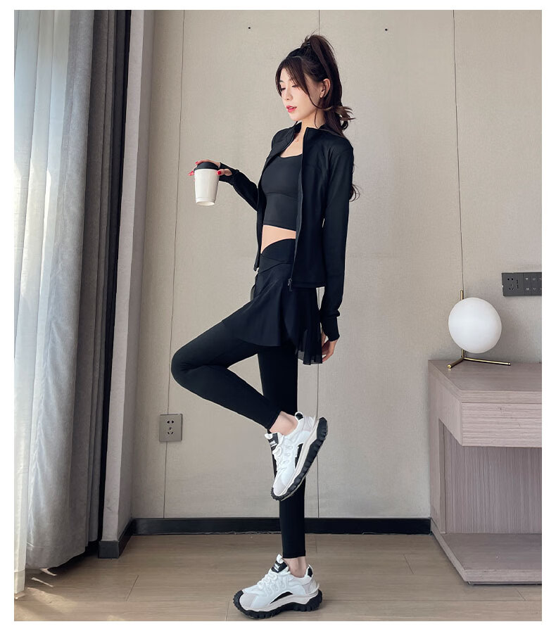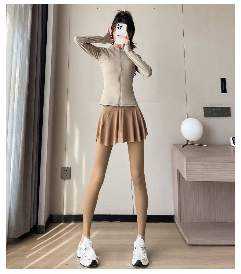 Aimengniao (Aimengniao) running sports suit women's mountaineering clothes and pants autumn morning running clothes gym Pilates yoga clothes skirts and pants three-piece set three-piece set linen + cardamom green + gray XL (refer to bust and hip measurement for size selection)