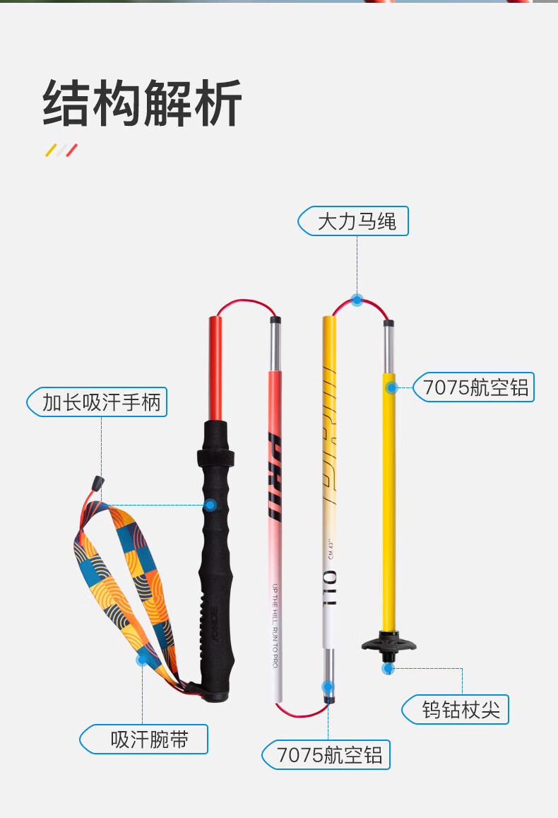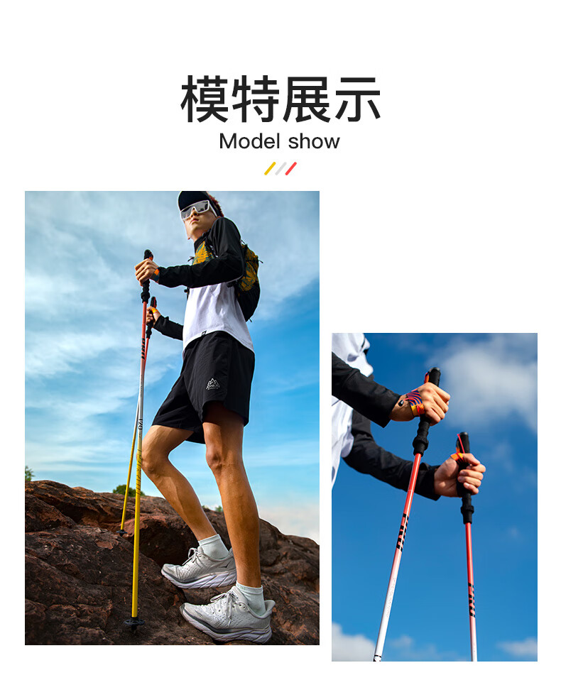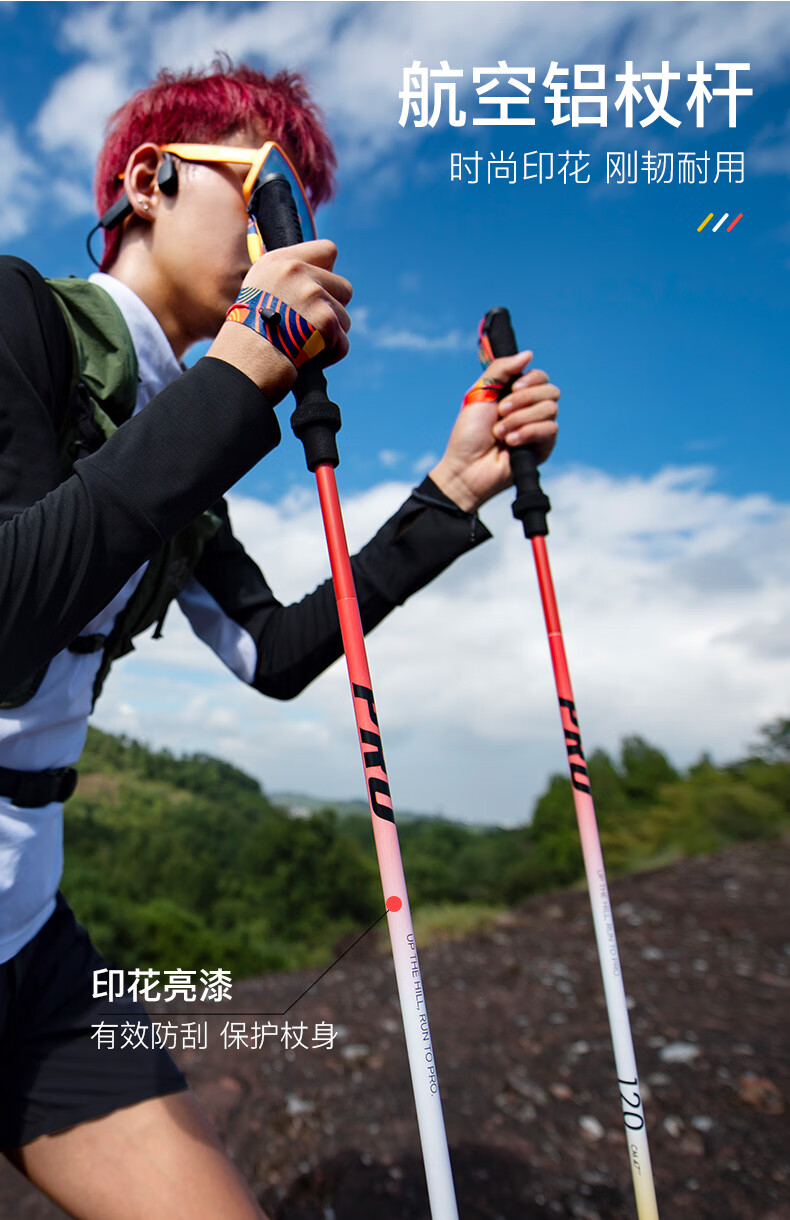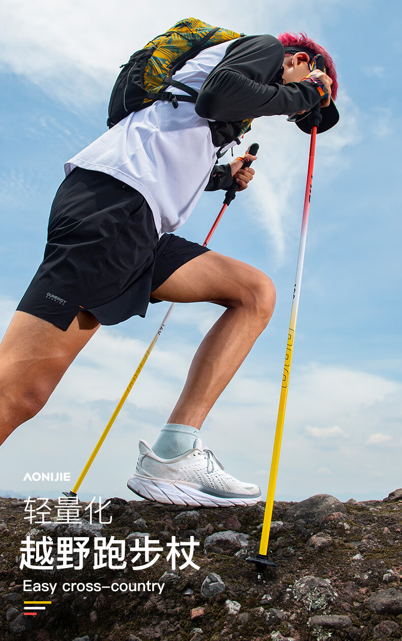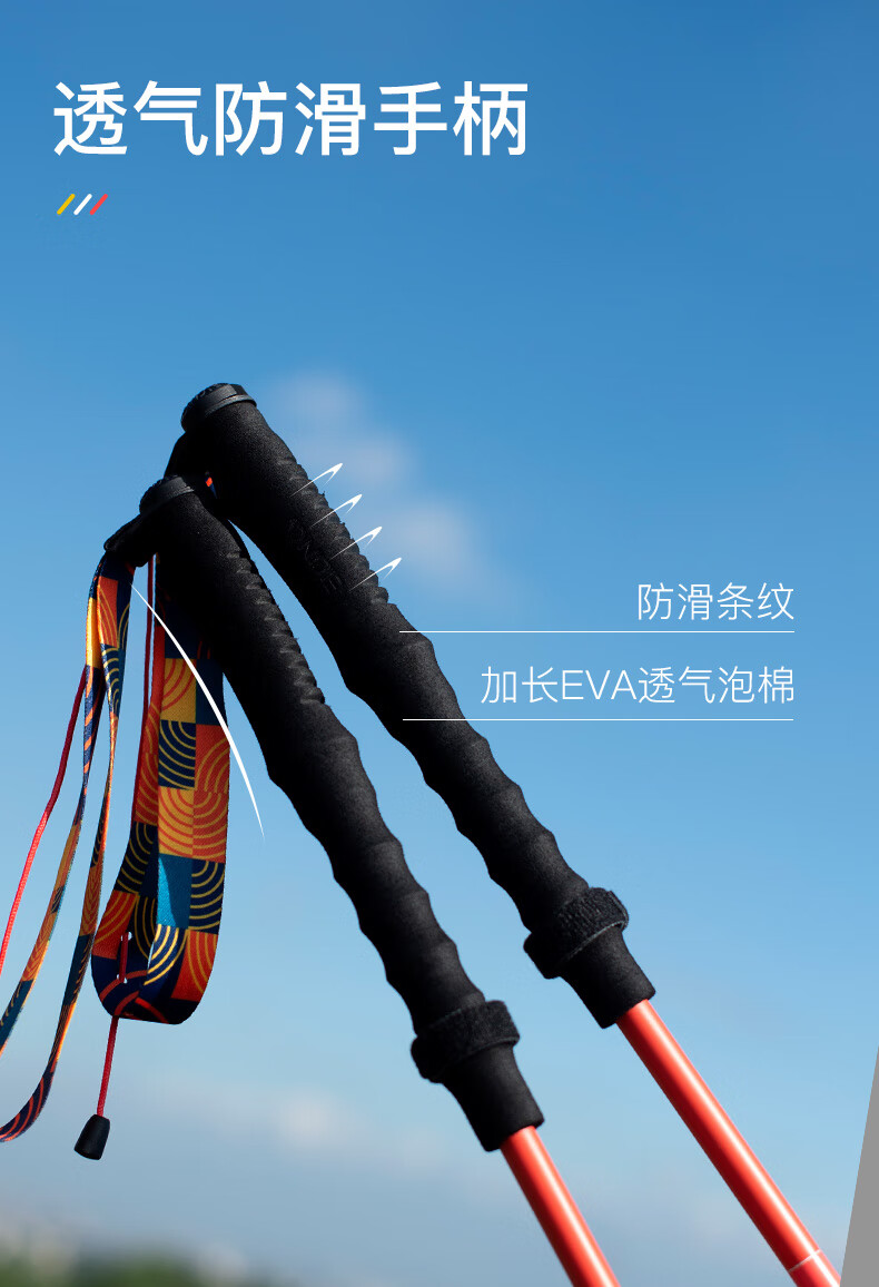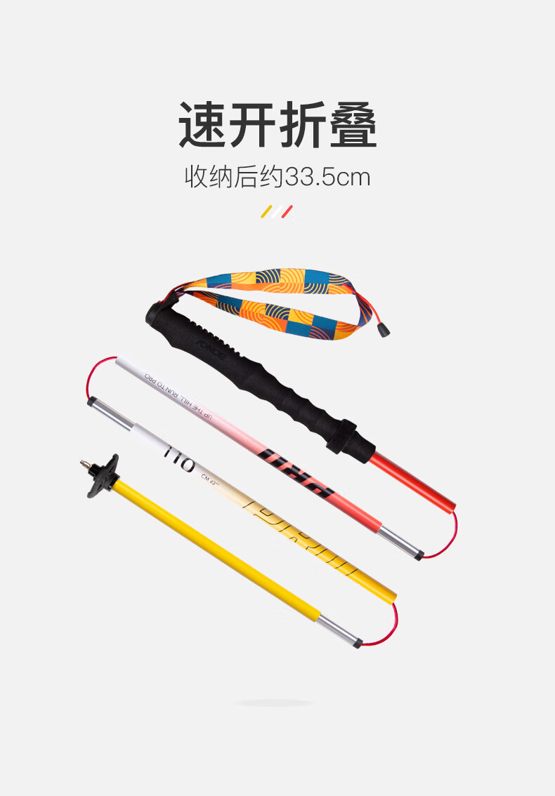 AONIJIE trekking poles, outdoor folding trekking poles, ultra-light multifunctional cross-country running and hiking equipment, red and yellow 110cm pair, with special storage