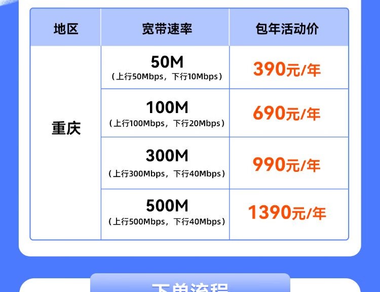 China Telecom Chongqing Telecom Мобильная высокоскоростная оптоволокно Telecom Широкополосный пакет быстрой установки Unicom Годовой низкий тариф Chongqing Telecom Одиночный широкополосный доступ 300M Годовой пакет = 990 юаней