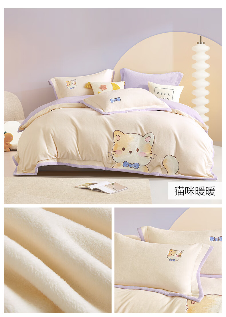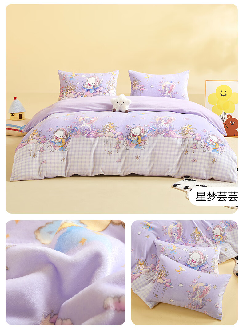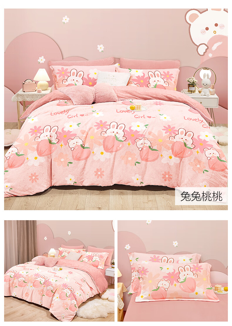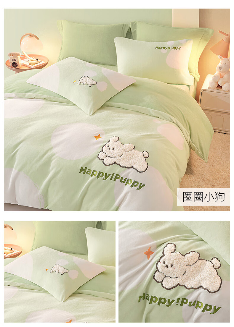 Boyang Baby (Beyond Kids) Children's Warm Velvet Four-piece Set Winter Cartoon Sheets and Quilt Covers Girls' Milk Velvet Set Bedding Warm Velvet Set Loop Puppy 1.5 Meter Sheet Type (Duvet Cover 200*230) Four-piece Set
