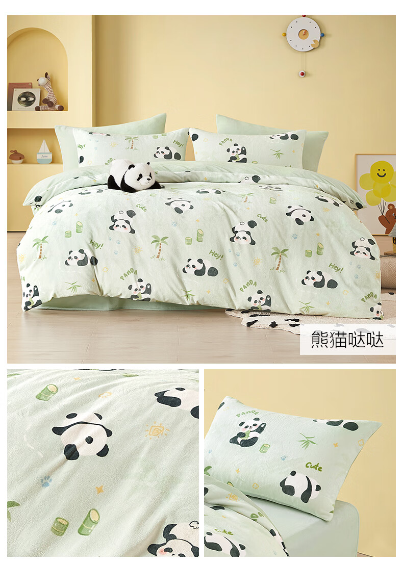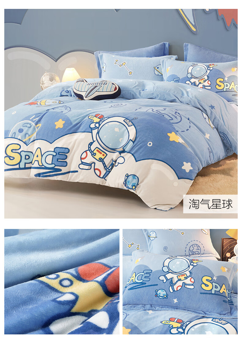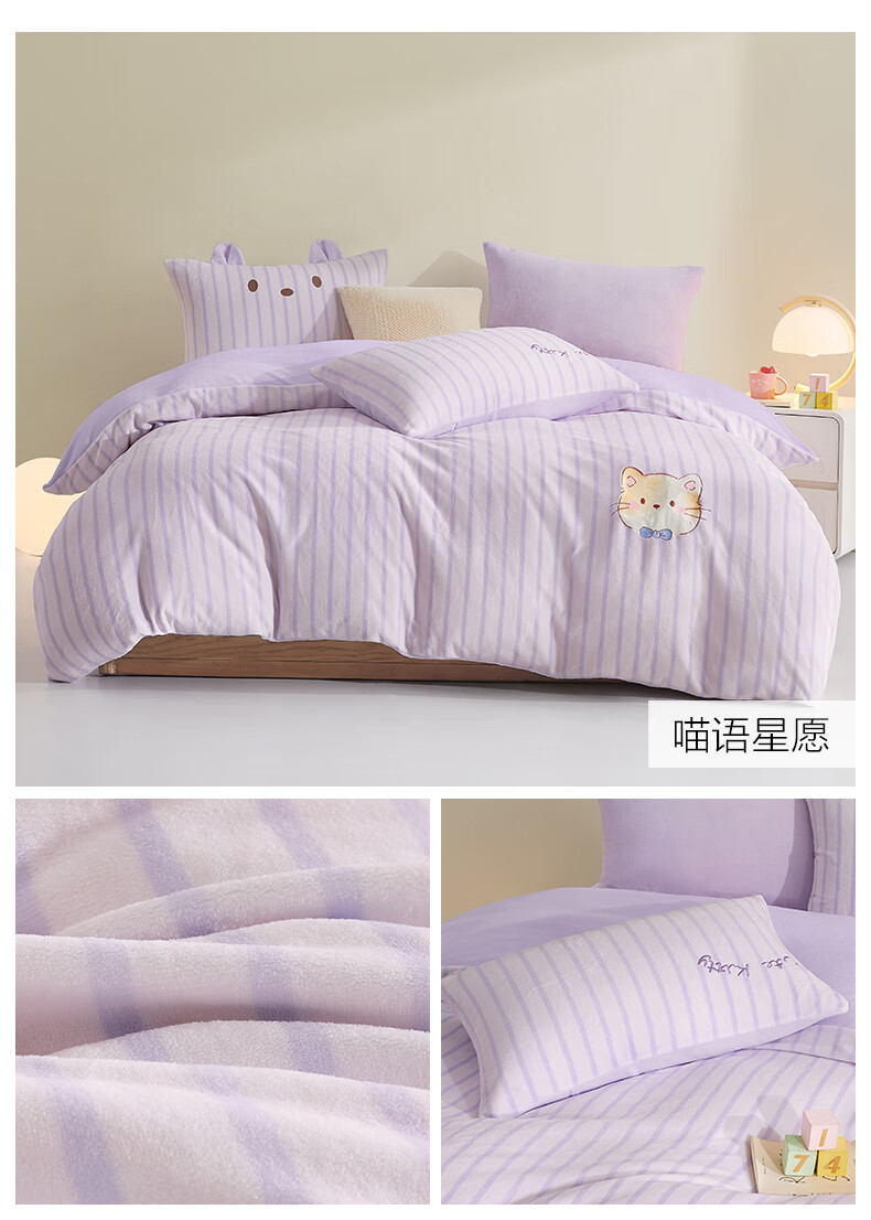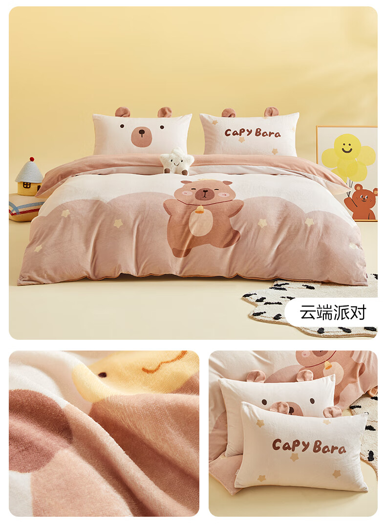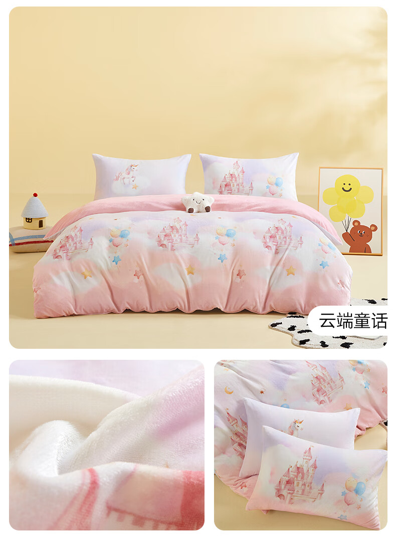 Boyang Baby (Beyond Kids) Children's Warm Velvet Four-piece Set Winter Cartoon Sheets and Quilt Covers Girls' Milk Velvet Set Bedding Warm Velvet Set Loop Puppy 1.5 Meter Sheet Type (Duvet Cover 200*230) Four-piece Set