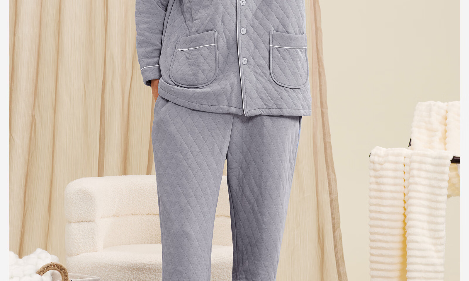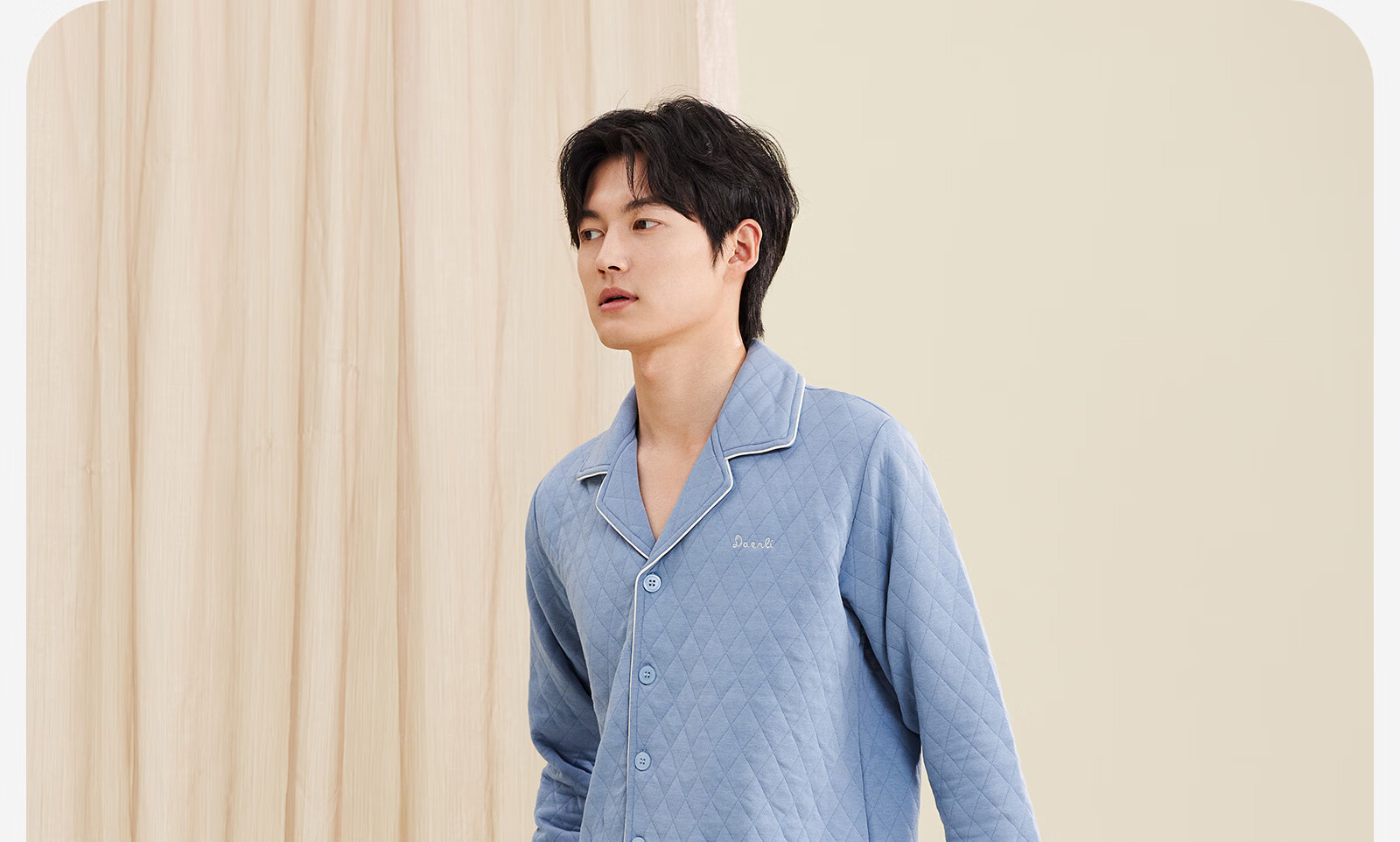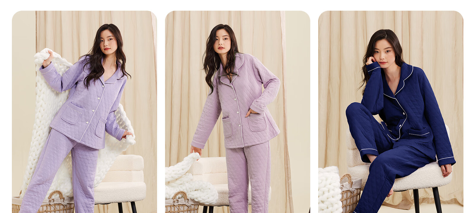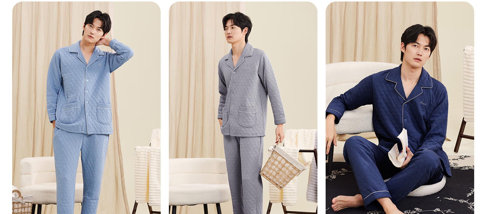 Darli Couple Pajamas Women's Autumn and Winter New Air Cotton Sandwich Warm Three-Layer Pure Cotton Home Clothes Men's Winter Suit Misty Sky Blue T9215113-063 Men's XL