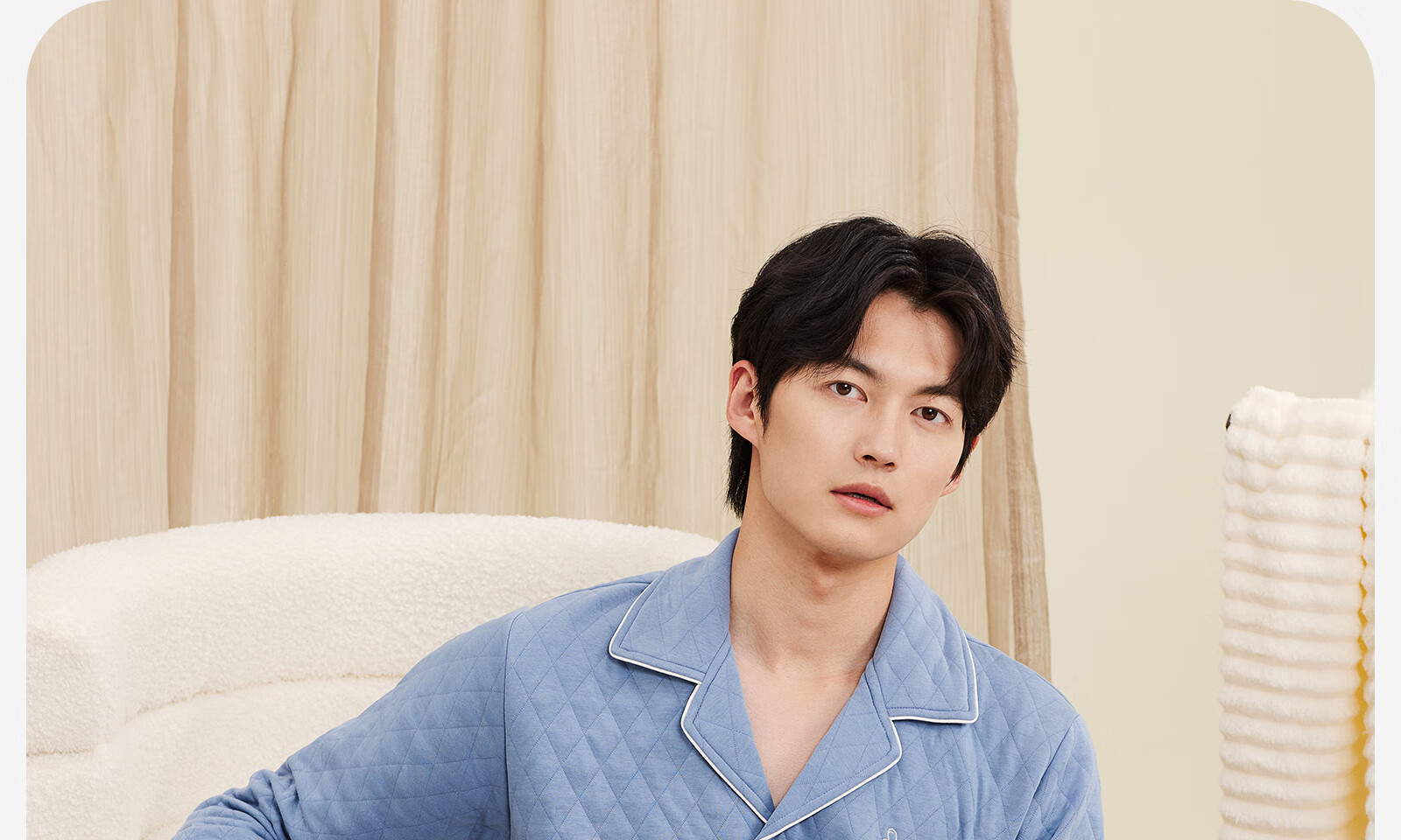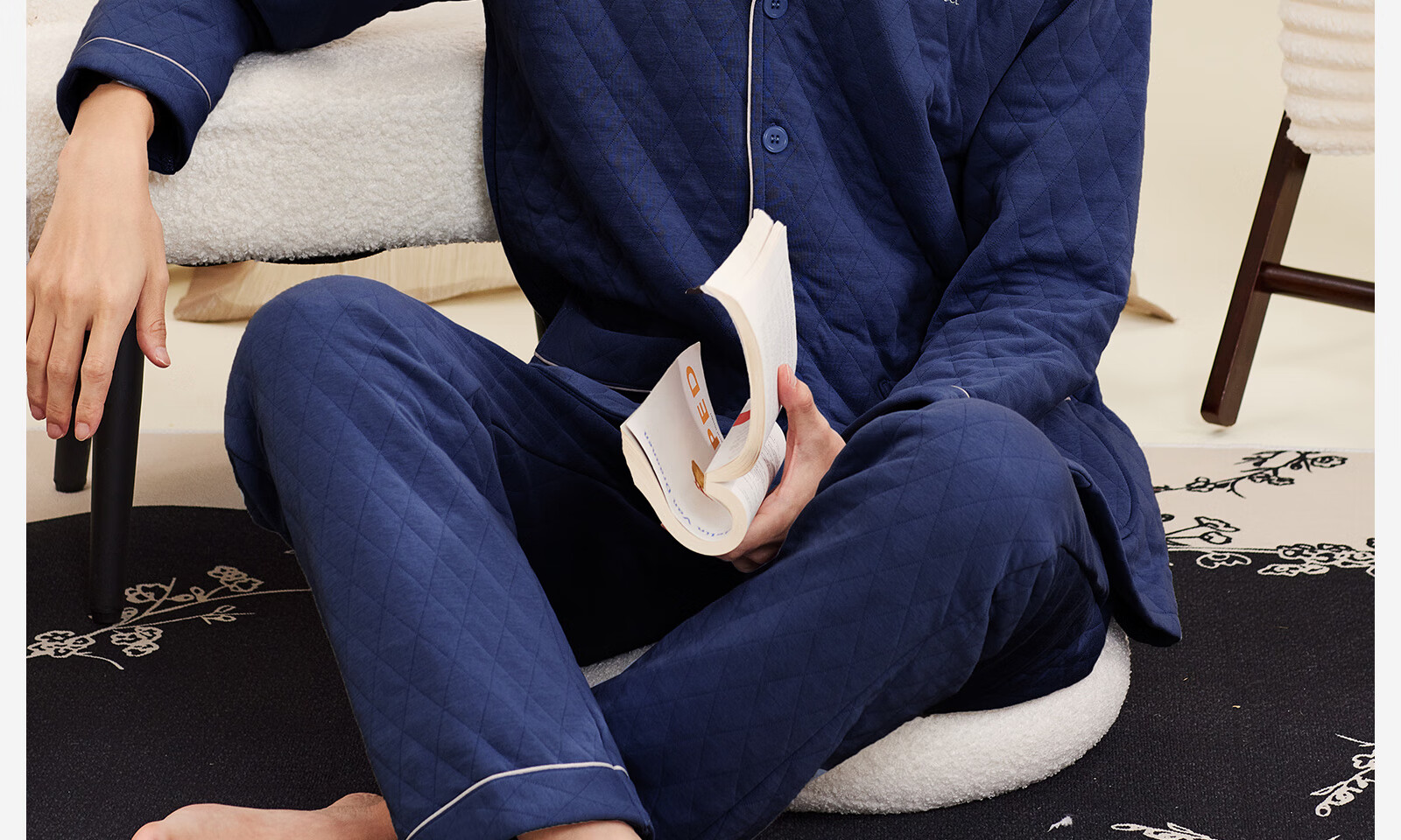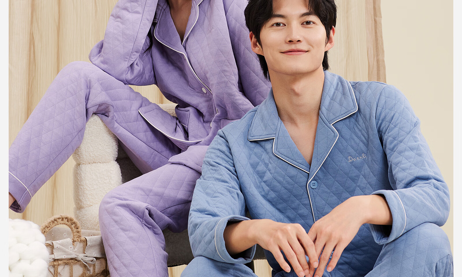 Darli Couple Pajamas Women's Autumn and Winter New Air Cotton Sandwich Warm Three-Layer Pure Cotton Home Clothes Men's Winter Suit Misty Sky Blue T9215113-063 Men's XL