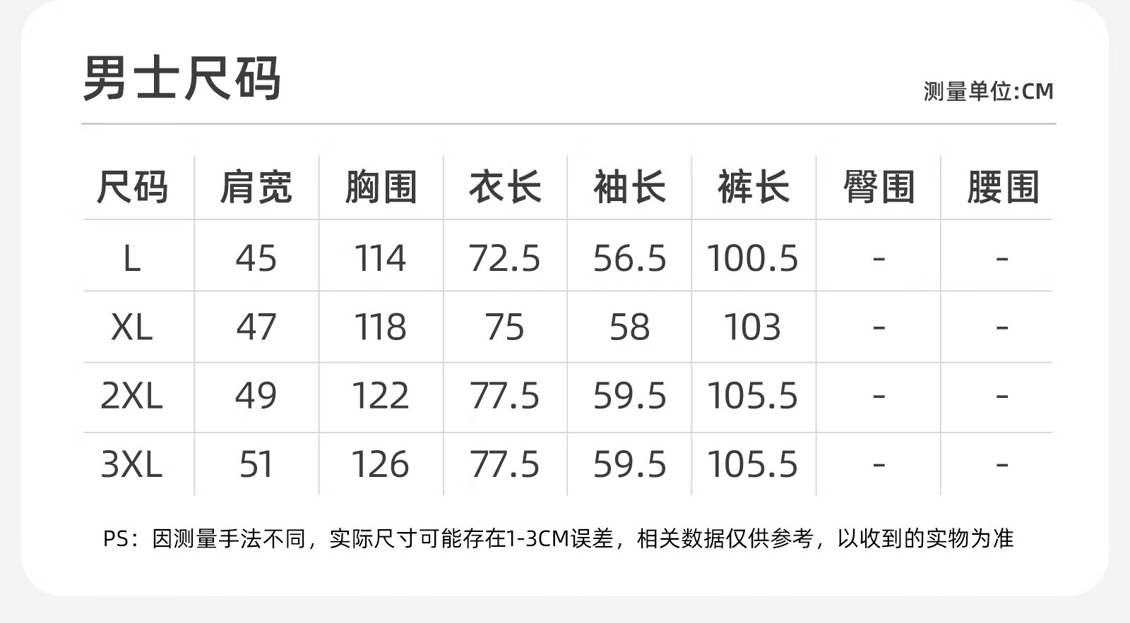 Outseam (cm) 99 cm 101.5 cm 104 cm 106.5 cm 109 cm