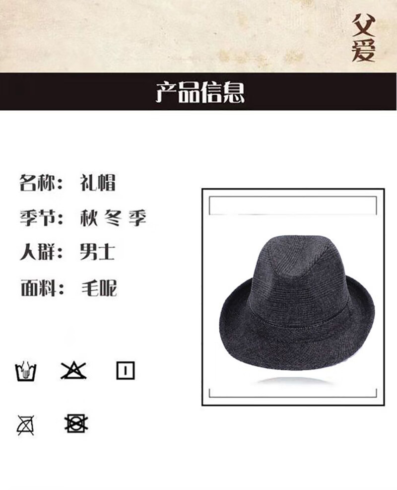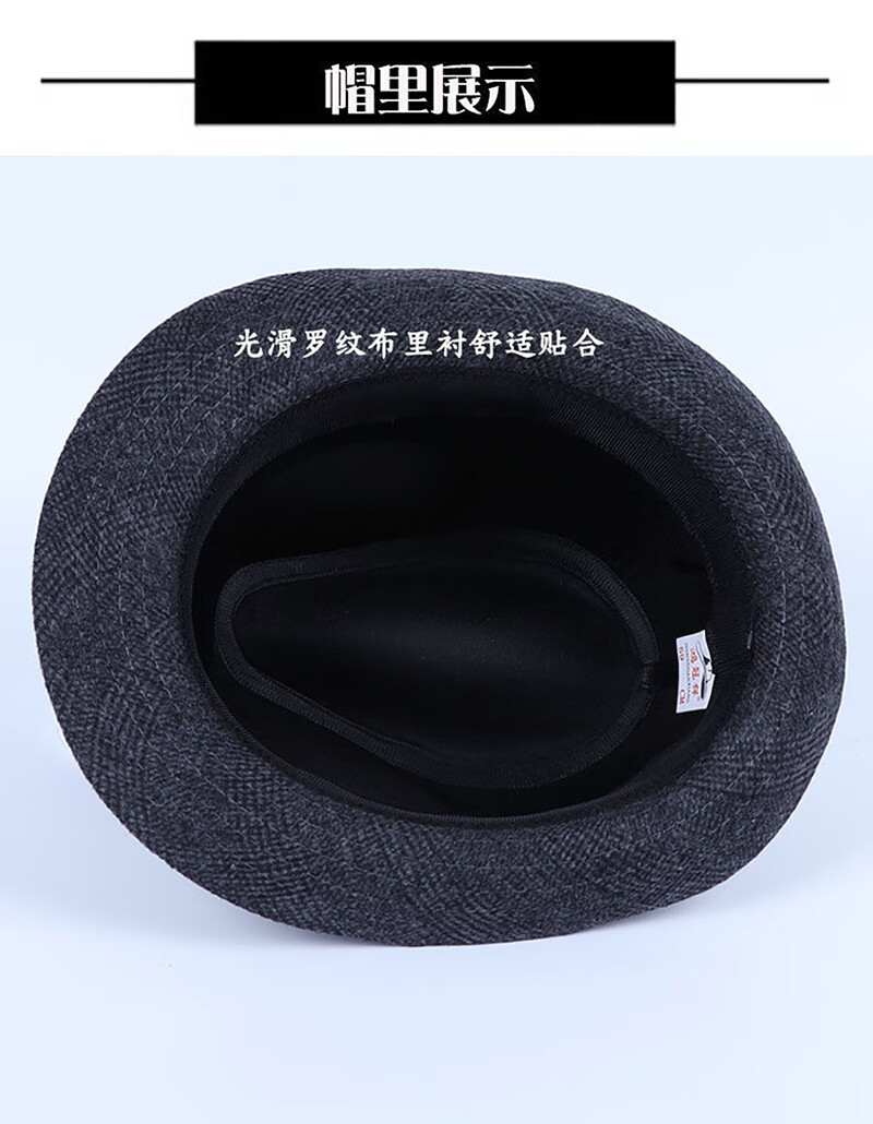 Changyin Autumn and Winter Men's Top Hat British Retro Jazz Hat Outdoor Dad Warmth Middle-aged and Elderly Spring and Autumn Old Man Hat Men's Fine Wool Black 59cm