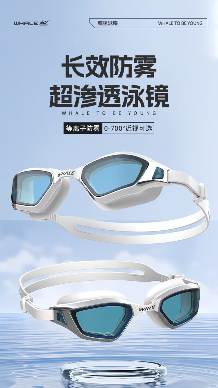 Whale N1 anti-fog swimming goggles, detachable lenses, 999 days of fogging, replacement for myopia, optional prescription swimming goggles for men and women, shiny silver, high-definition lenses + free swimming cap