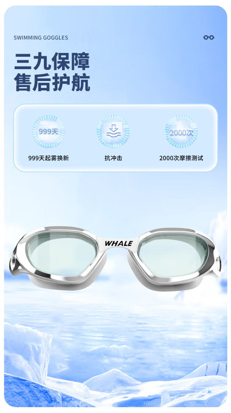 Whale S1 Professional Nano Anti-fog Swimming Goggles Mid-Frame Adult 1888 Days Fogging Replacement Myopia Optional Degree Swimming Goggles Nano Myopia Model Dark Night Black -200 Degrees