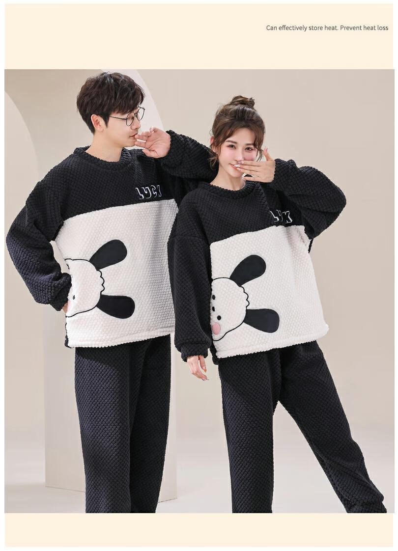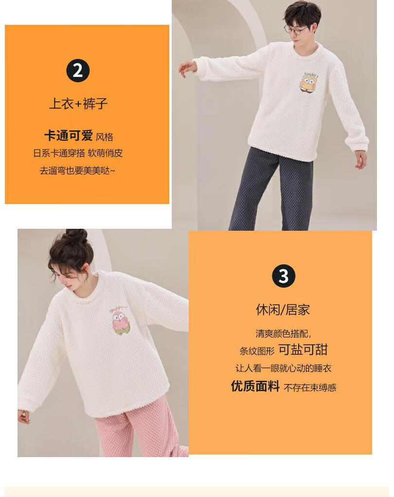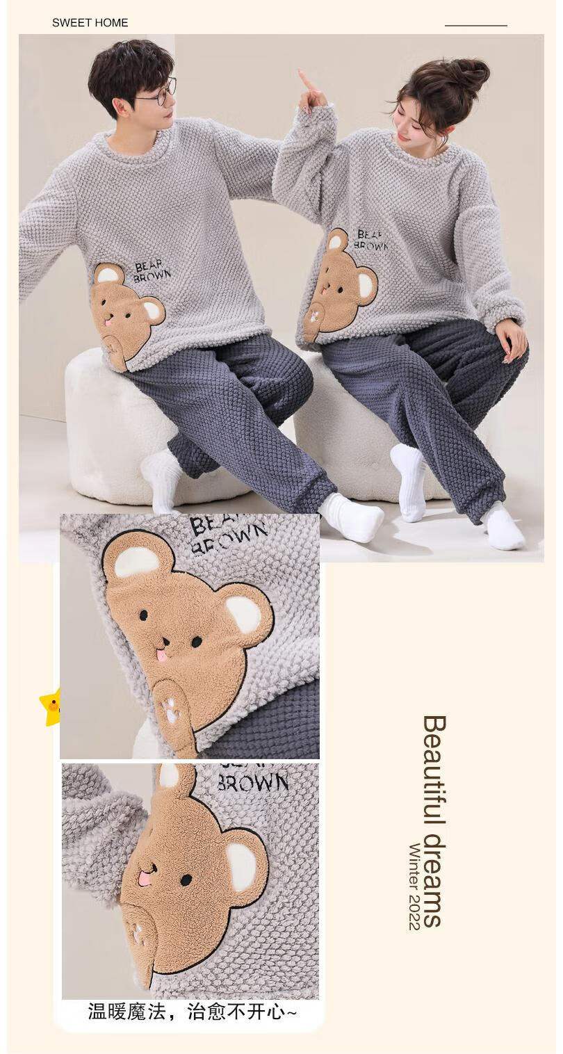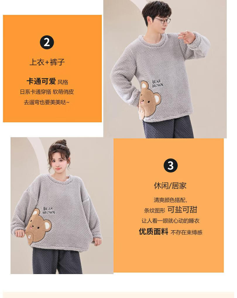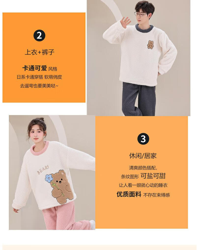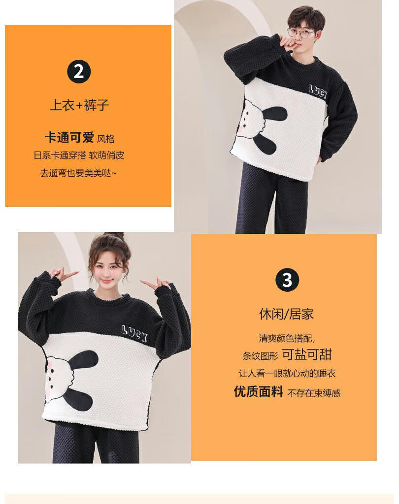 LangSha buy one get one free couple pajamas for women autumn and winter coral velvet thickened cute cartoon large size men's home wear set velvet Kurome M female + male L