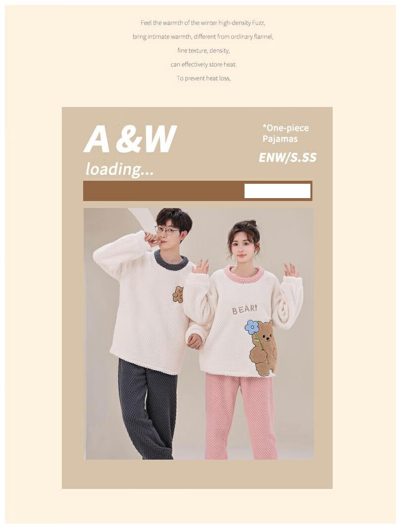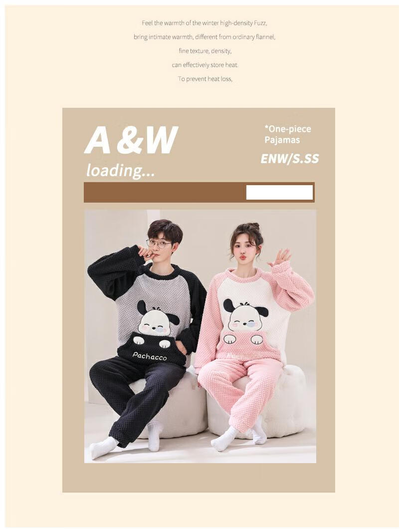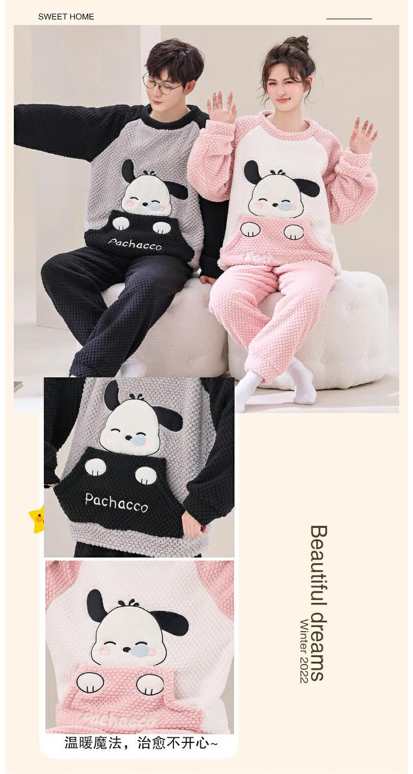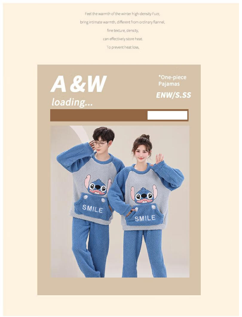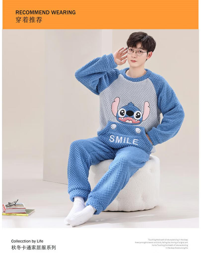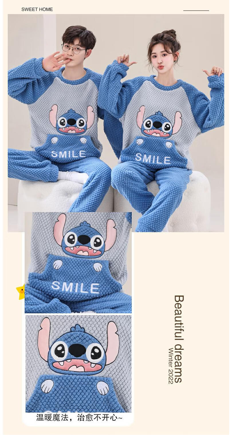 LangSha buy one get one free couple pajamas for women autumn and winter coral velvet thickened cute cartoon large size men's home wear set velvet Kurome M female + male L