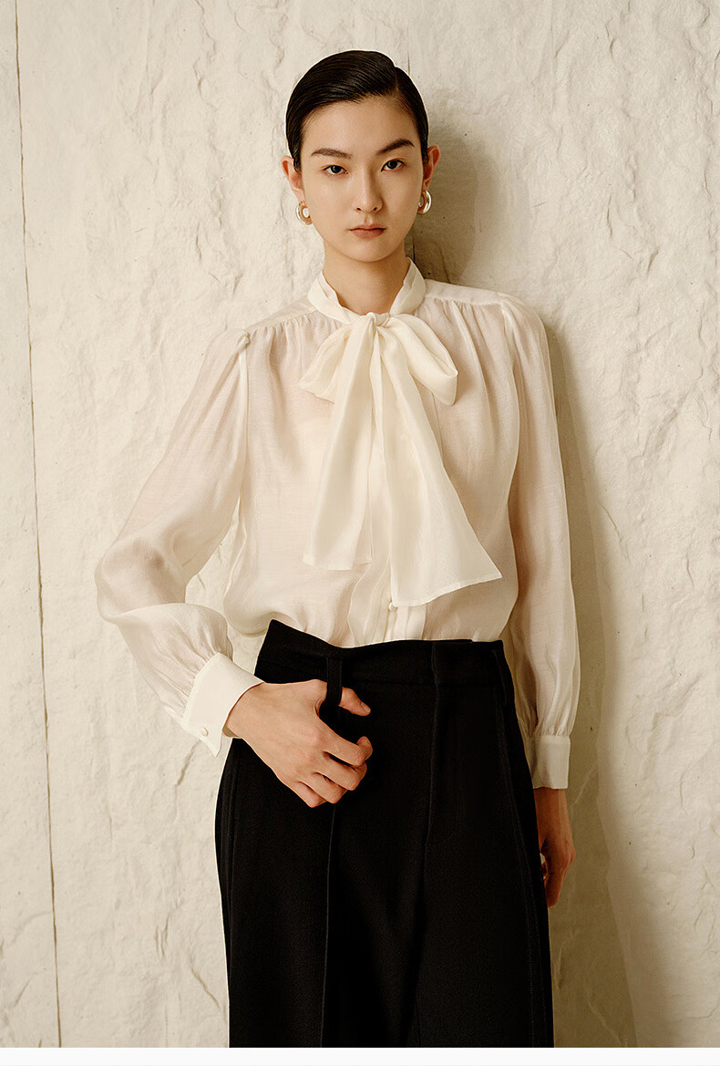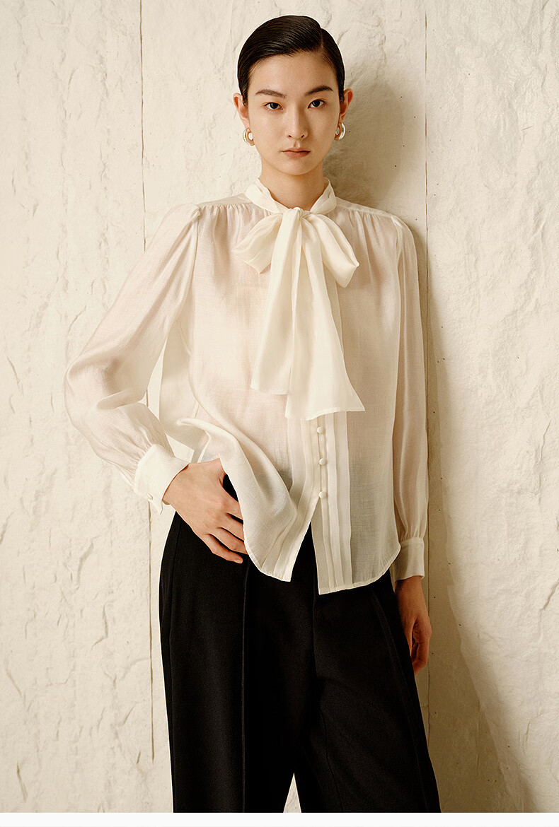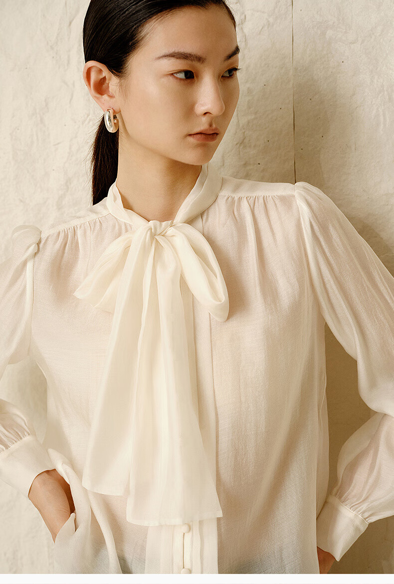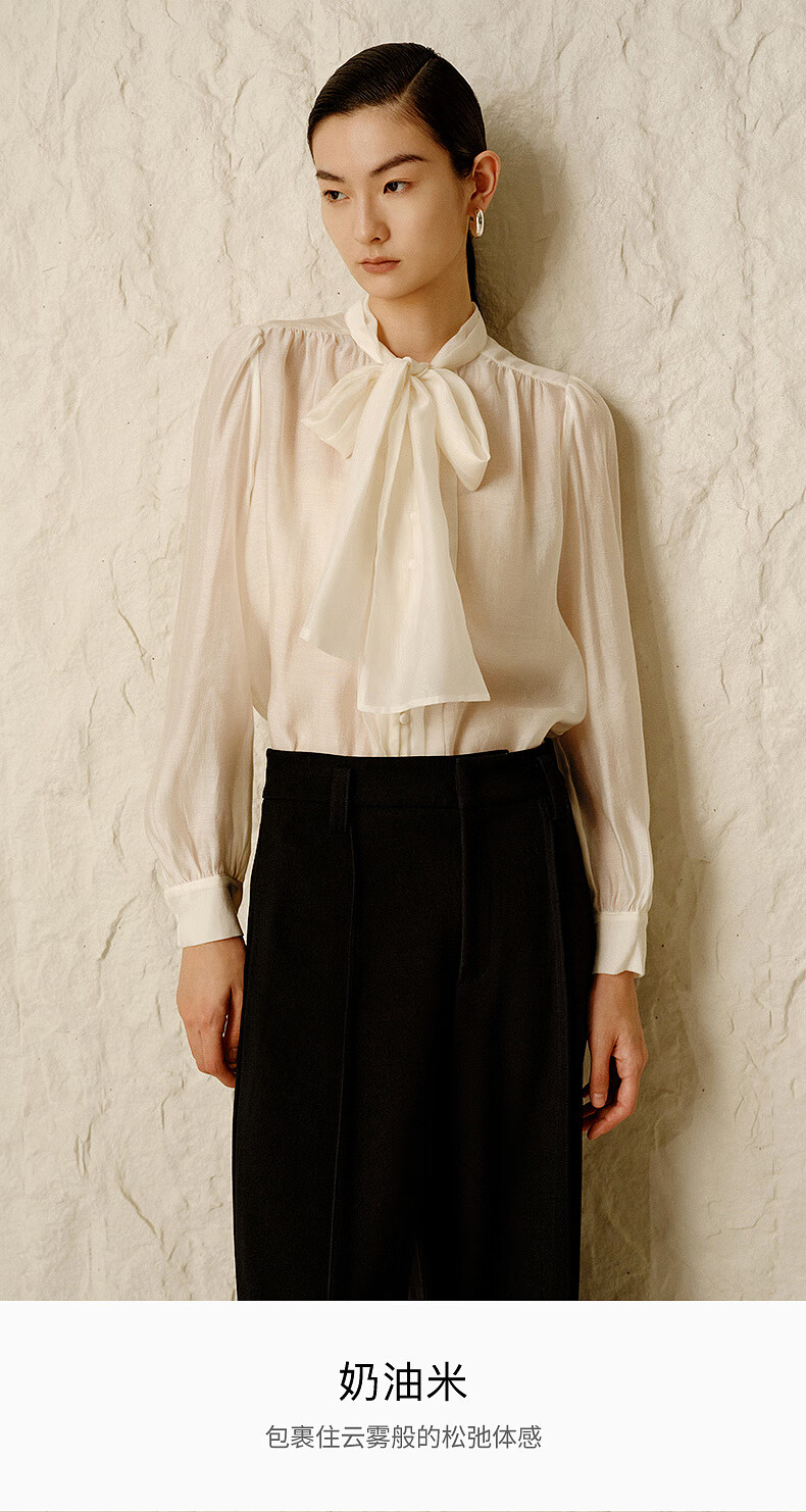 Enos Yashi Shopping Mall Same Style Winter New Simple Lyocell Chiffon Shirt Shirt White Shirt 30935040 Cream Rice L