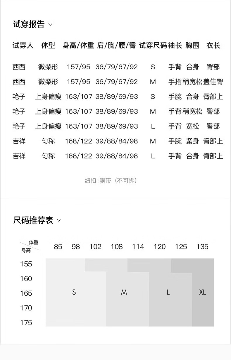 China (cm) 160-165/84-86 165-170 / 88-90 167-172 / 92-96 168-173 / 98-102 170-176 / 106-110