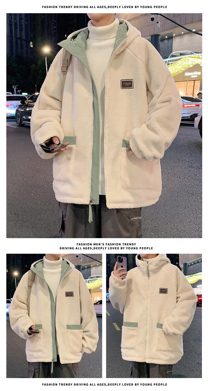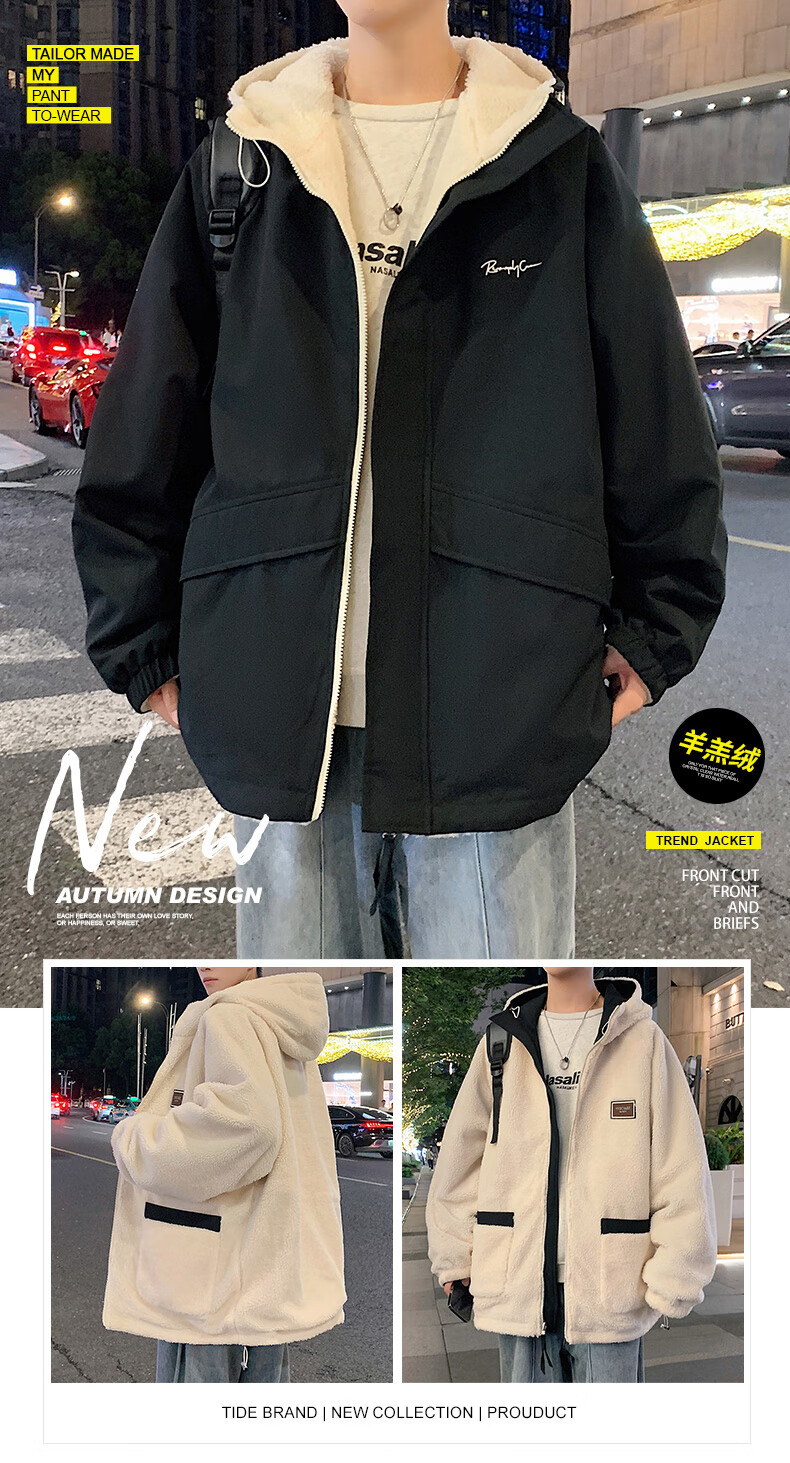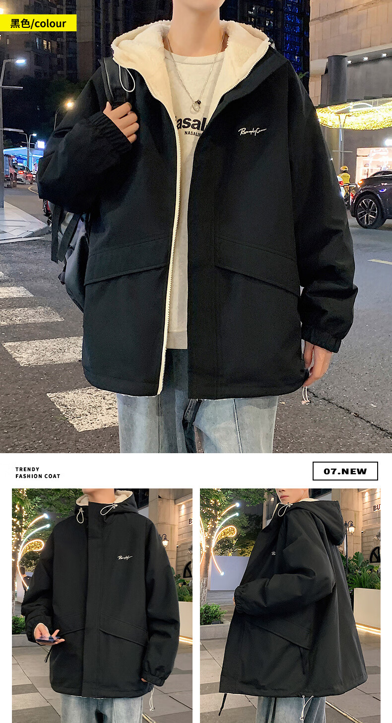 Woodpecker Reversible Jacket Men's Autumn and Winter Plus Velvet Thickened Cotton Clothes Men's Loose Cotton Clothes Men's Down Jackets Imitation Lambswool Black XL (Recommended 130-150 Jin Jin equals 0.5 kg)