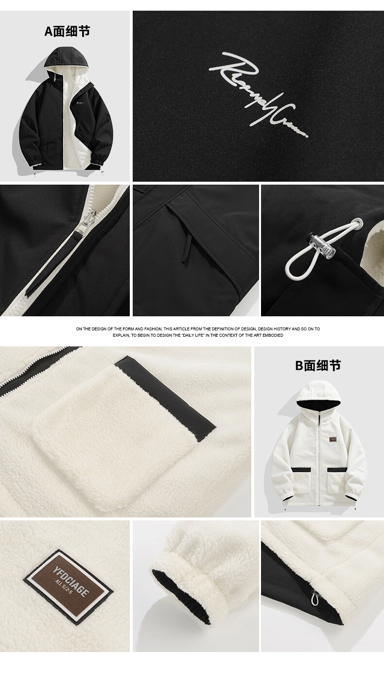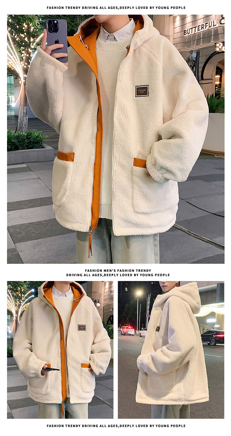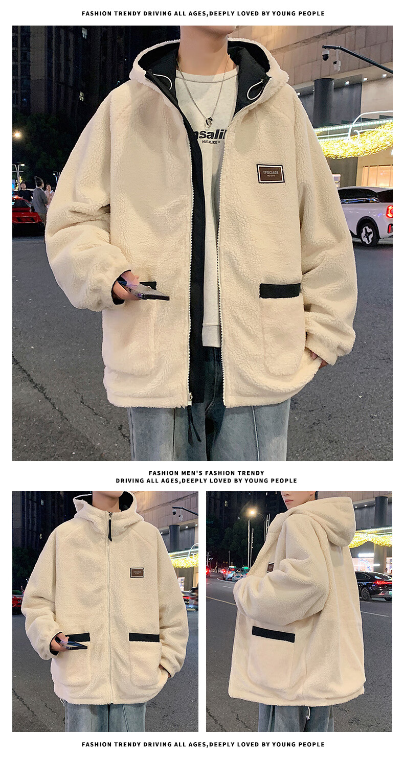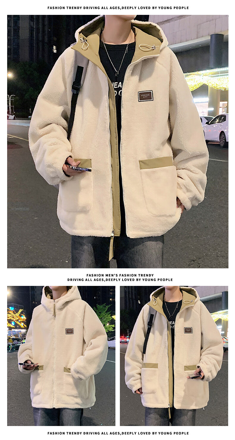 Woodpecker Reversible Jacket Men's Autumn and Winter Plus Velvet Thickened Cotton Clothes Men's Loose Cotton Clothes Men's Down Jackets Imitation Lambswool Black XL (Recommended 130-150 Jin Jin equals 0.5 kg)