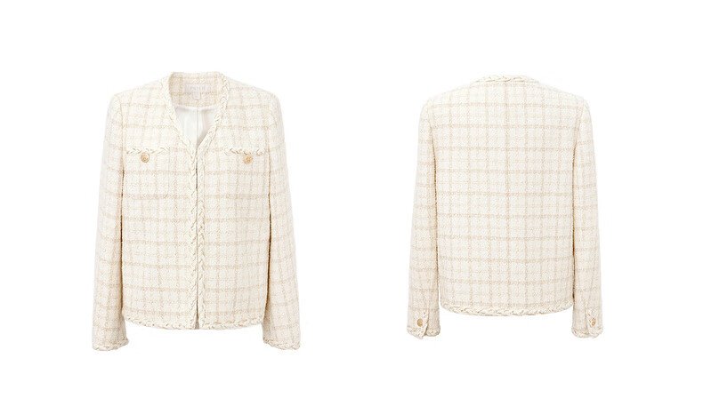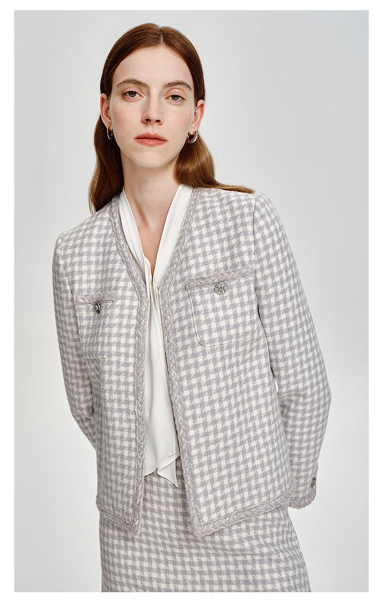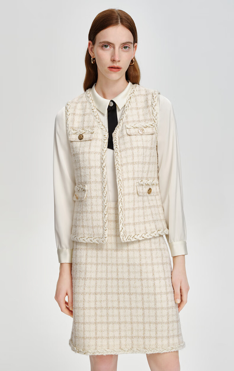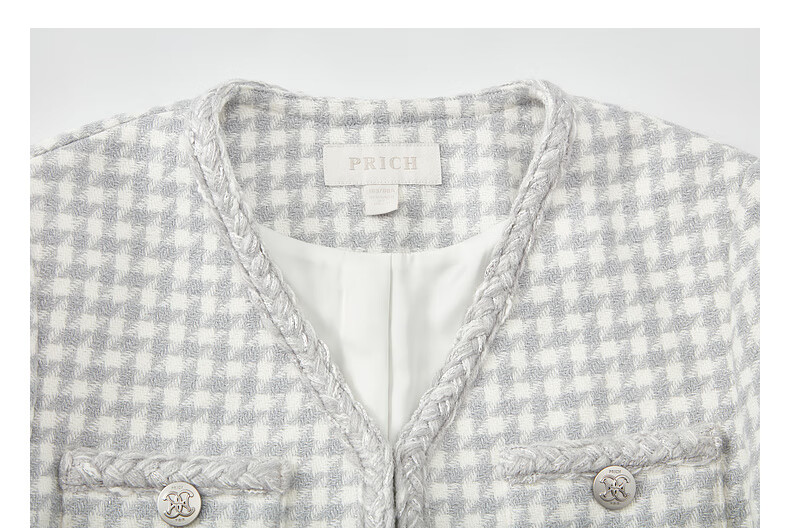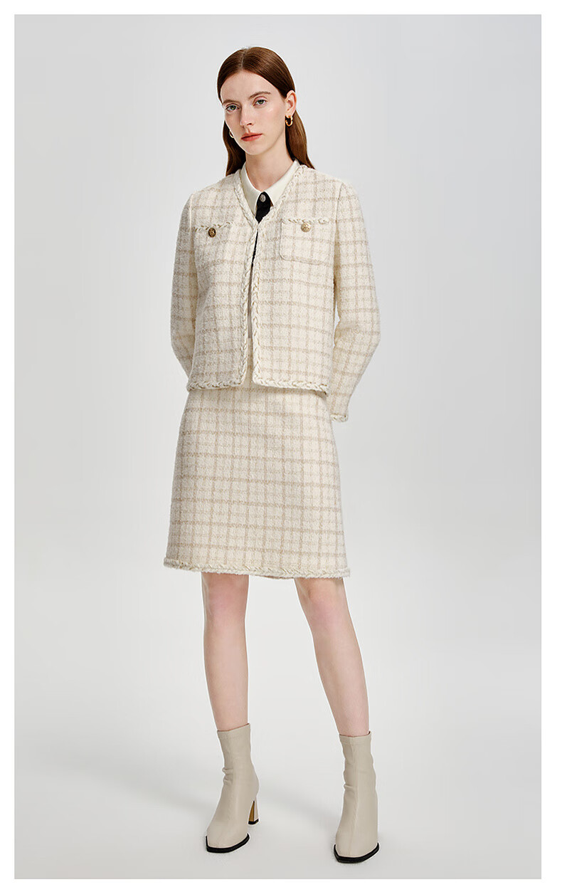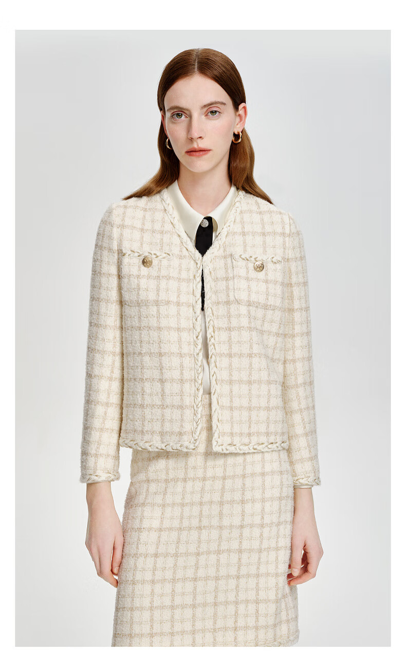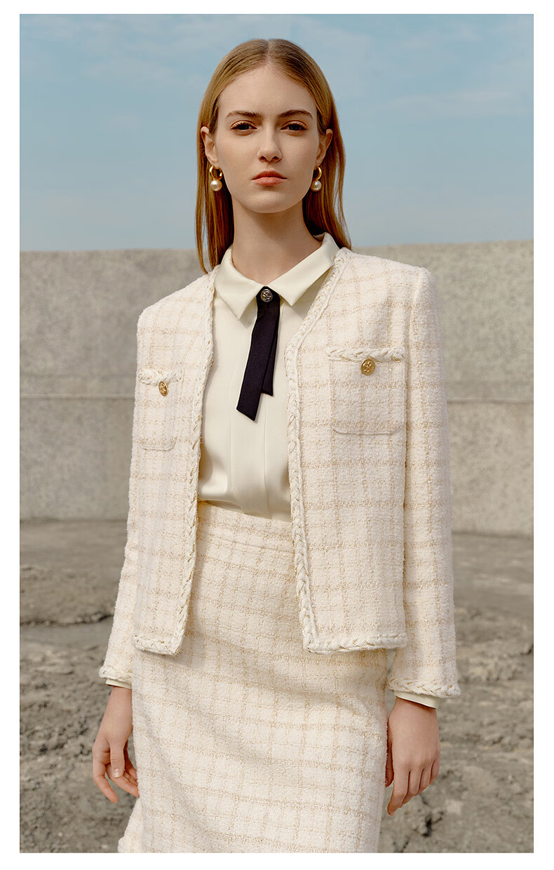 PRICH Sheep wool fragrant tweed workplace suit spring and summer V-neck commuter jacket suit for women 39 ivory suit S 155