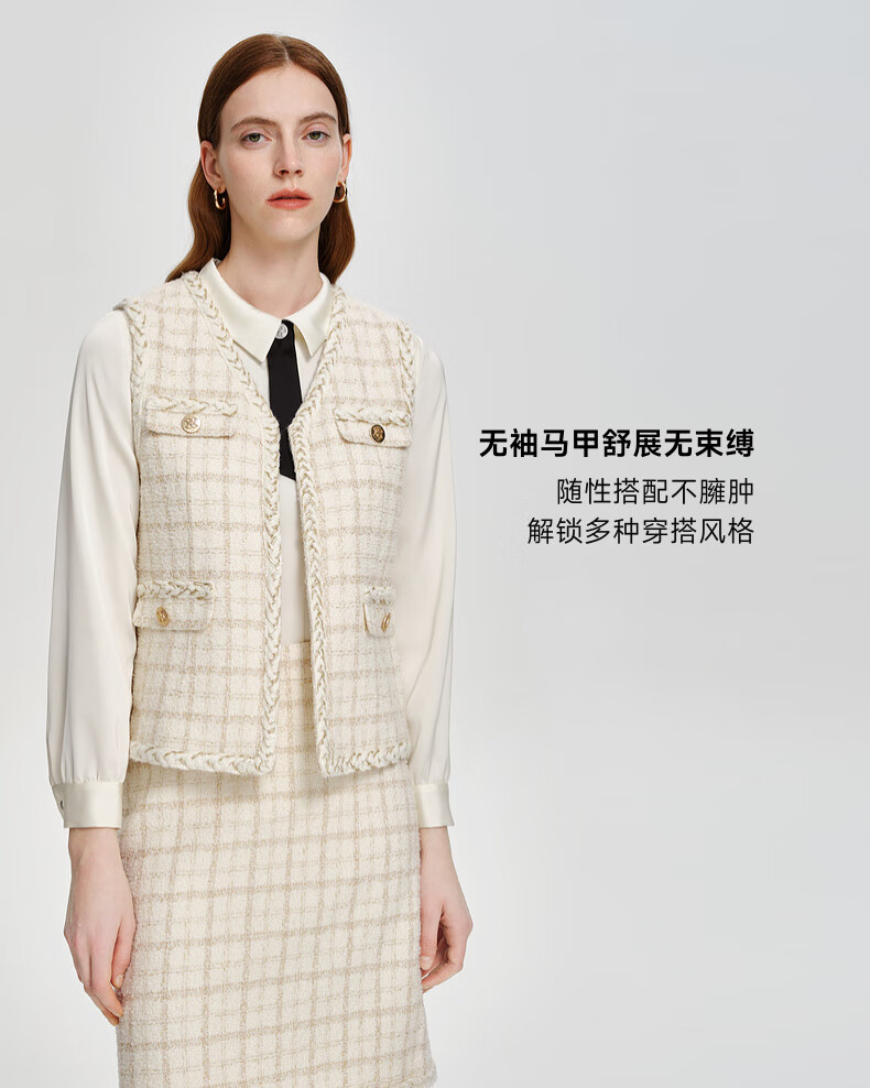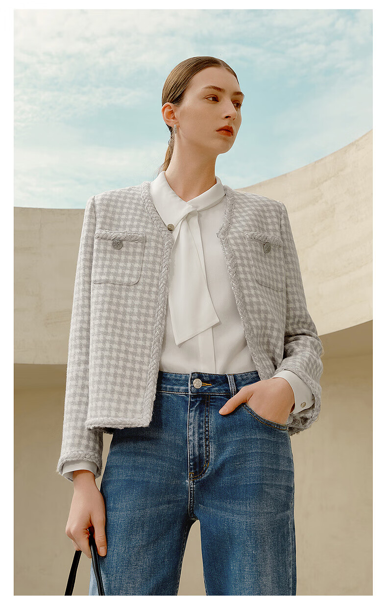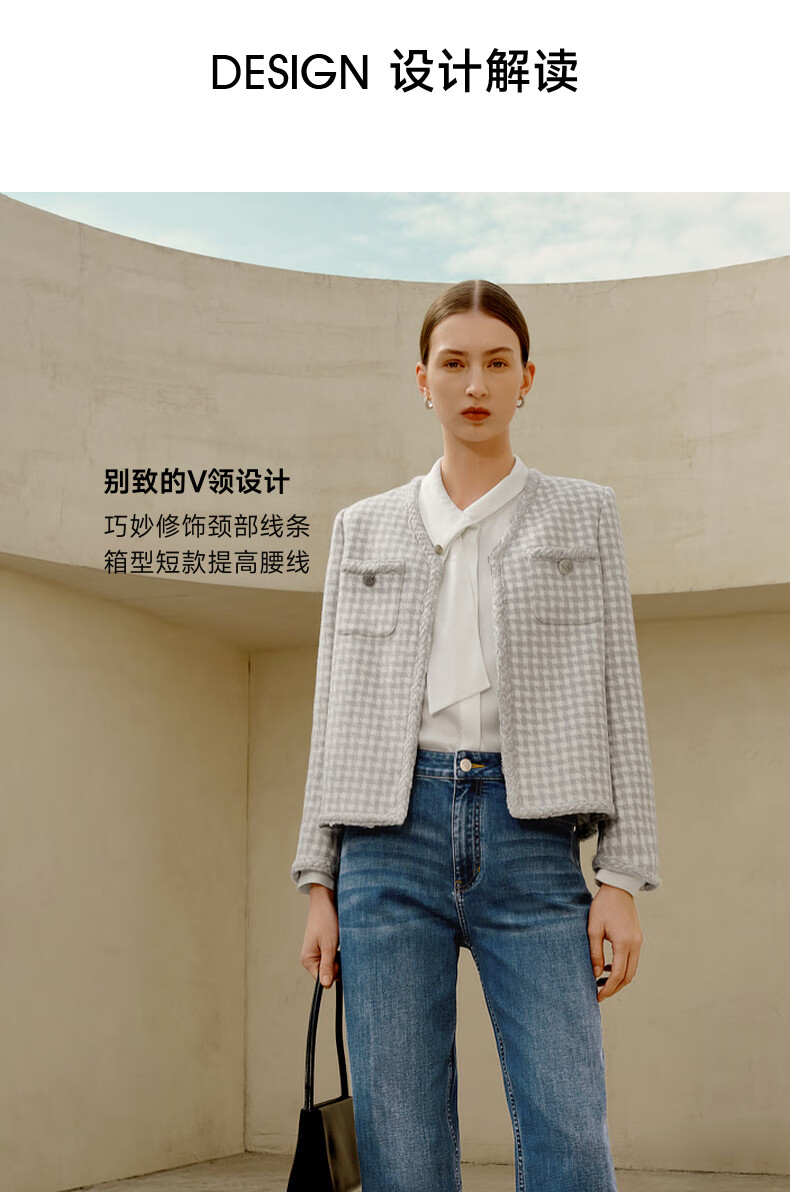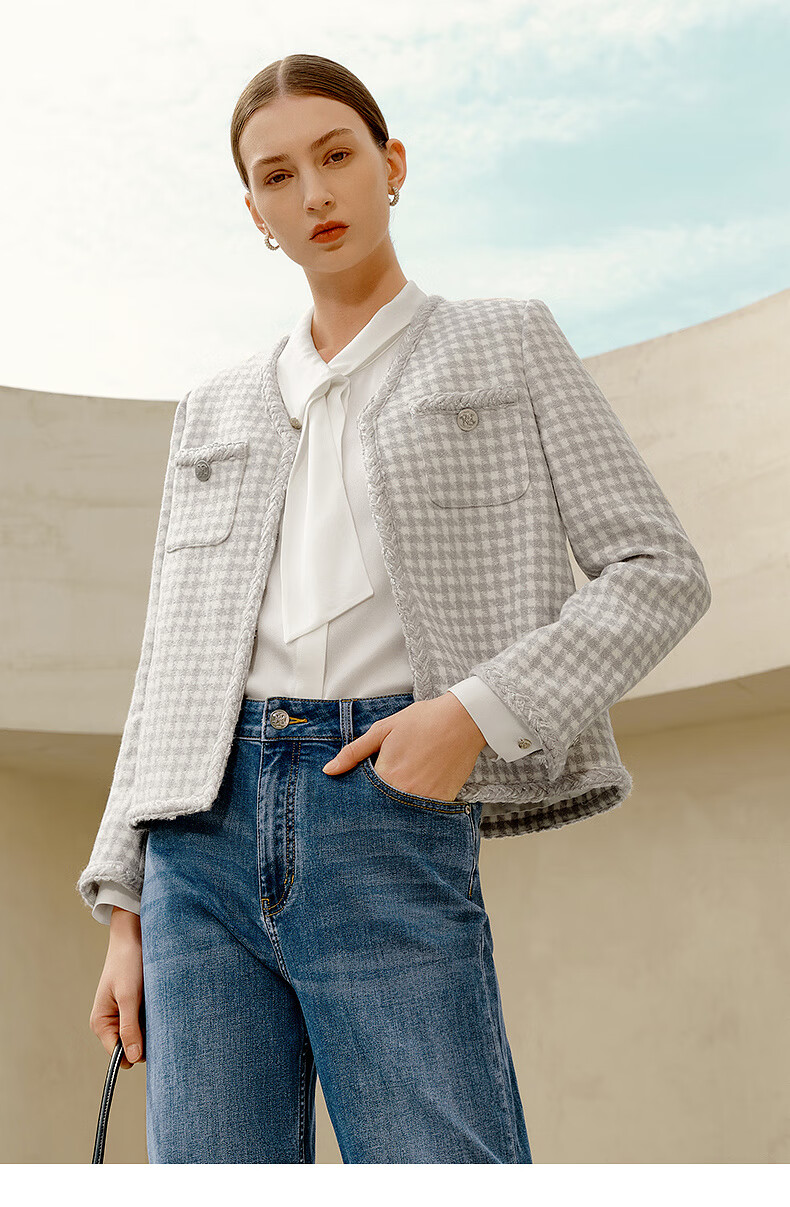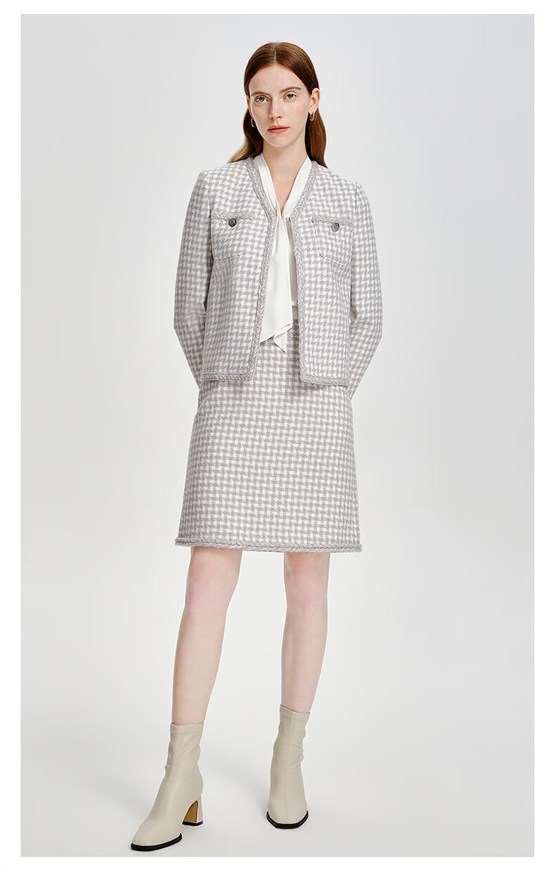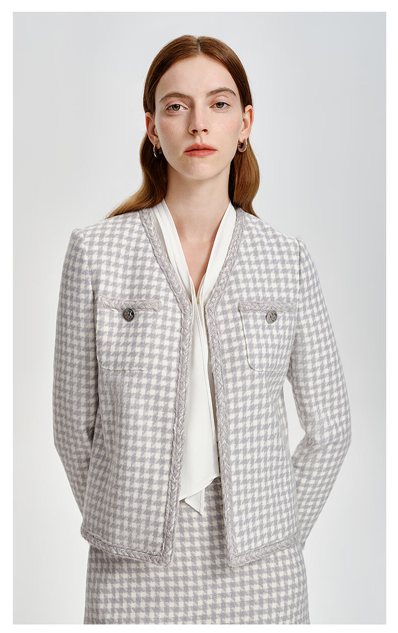 PRICH Sheep wool fragrant tweed workplace suit spring and summer V-neck commuter jacket suit for women 39 ivory suit S 155