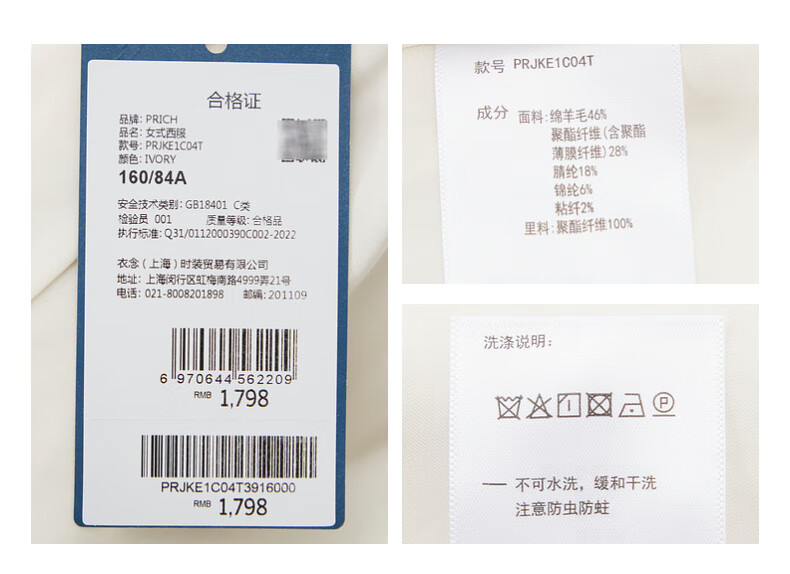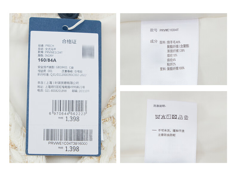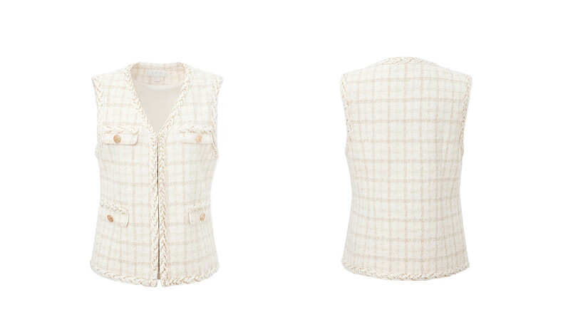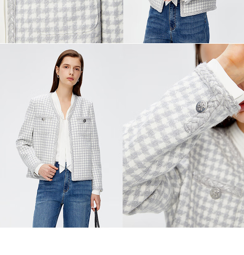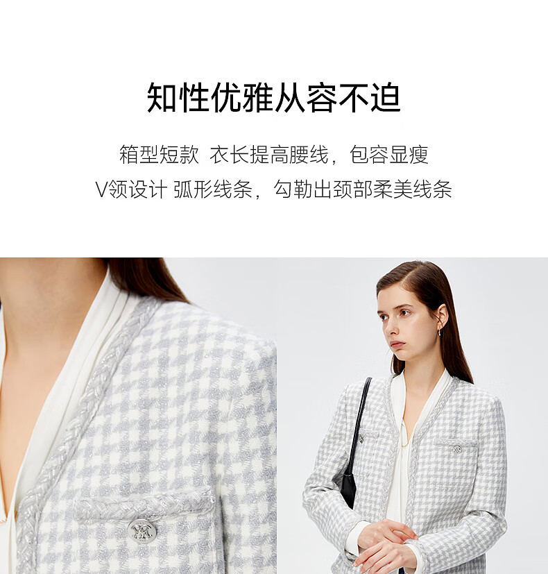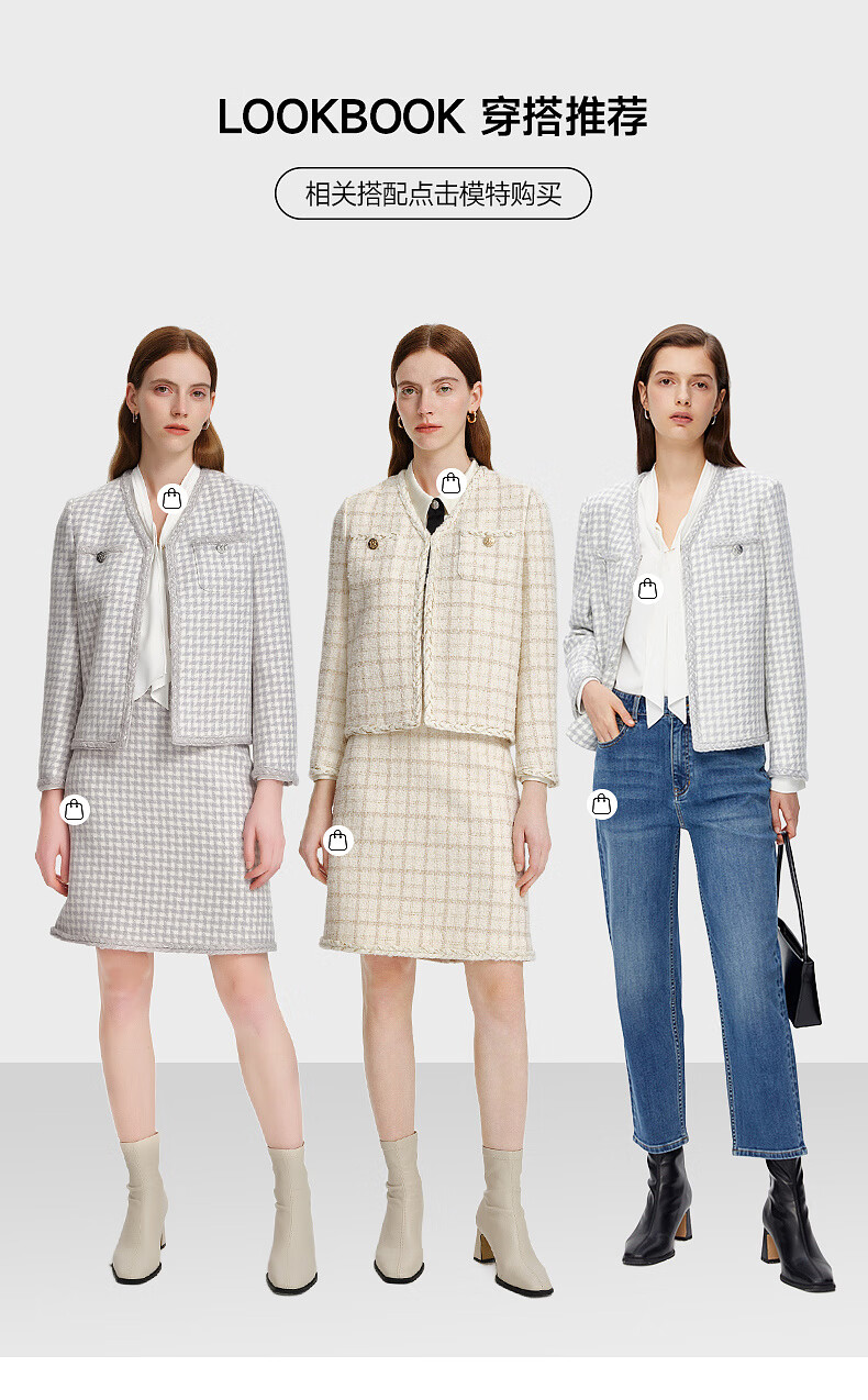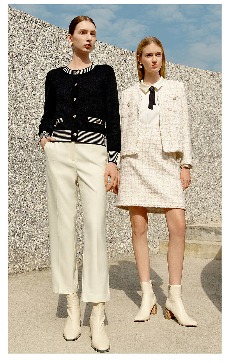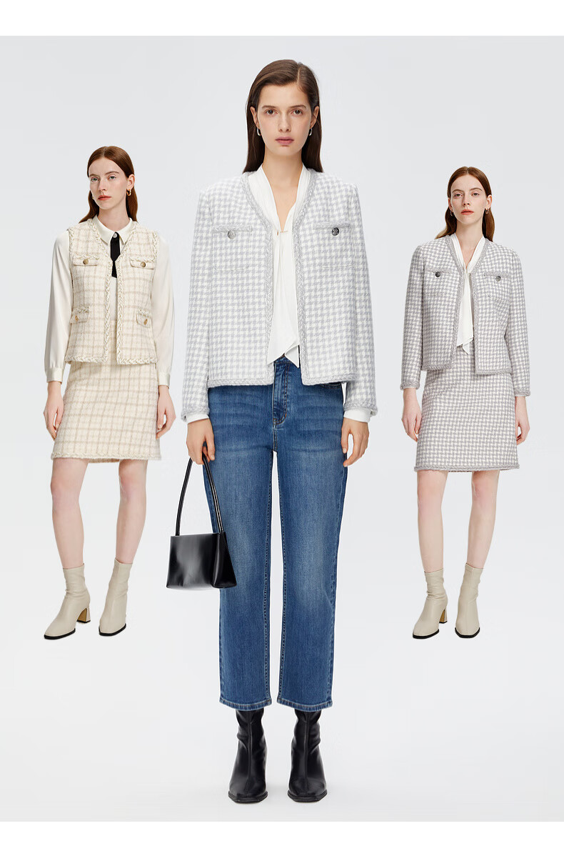 PRICH Sheep wool fragrant tweed workplace suit spring and summer V-neck commuter jacket suit for women 39 ivory suit S 155
