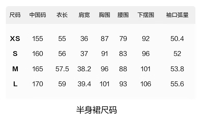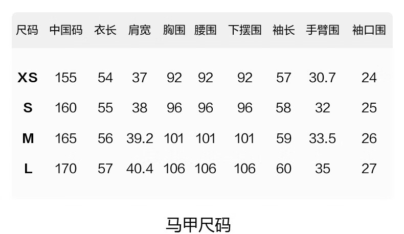 China (cm) 160-165/84-86 165-170 / 88-90 167-172 / 92-96 168-173 / 98-102 170-176 / 106-110