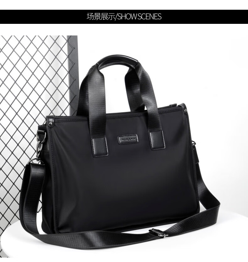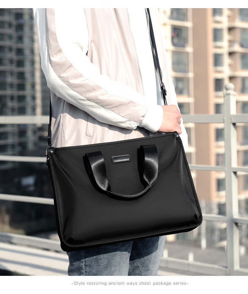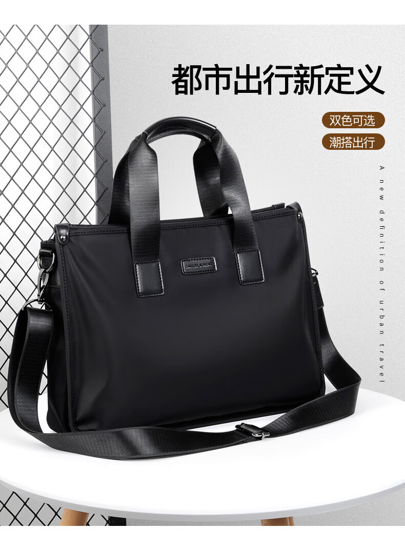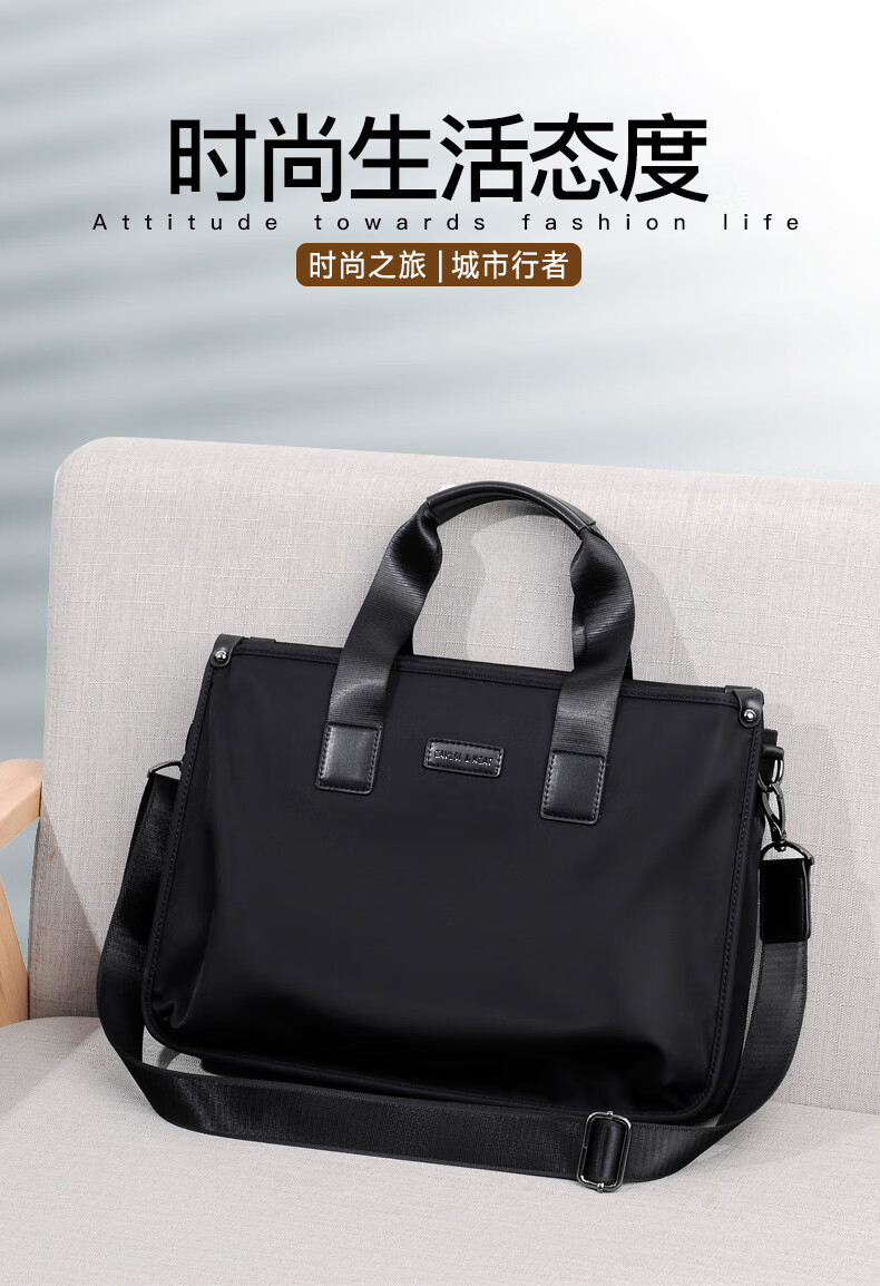 CavlslKcat canvas briefcase men's handbag casual business office computer bag large capacity business trip shoulder crossbody backpack black large bag 15.6 inches 39*11*29cm