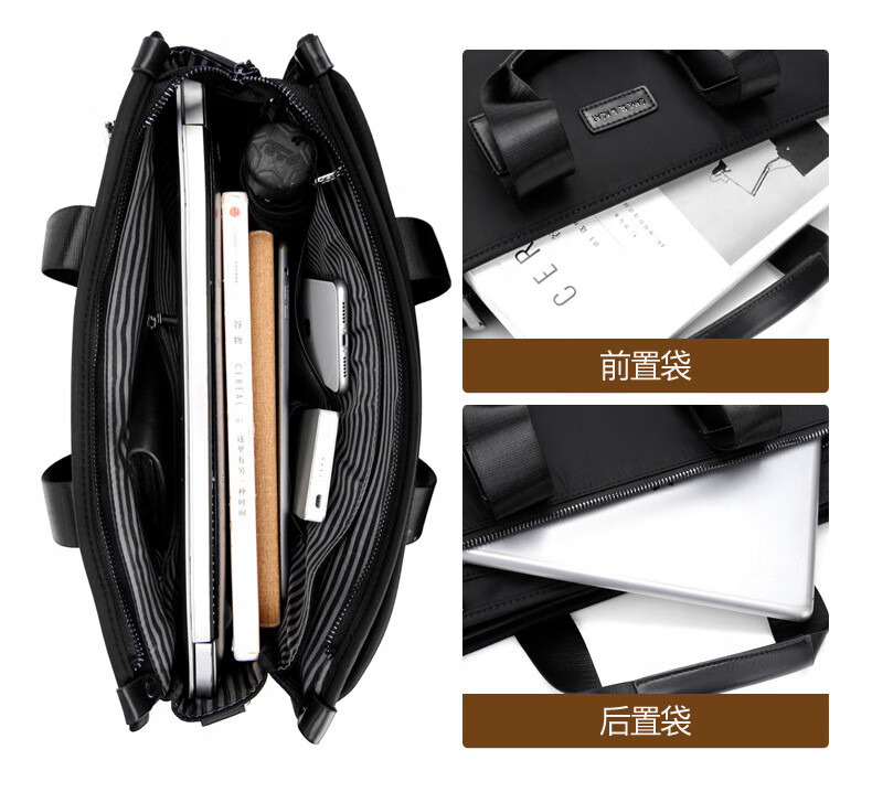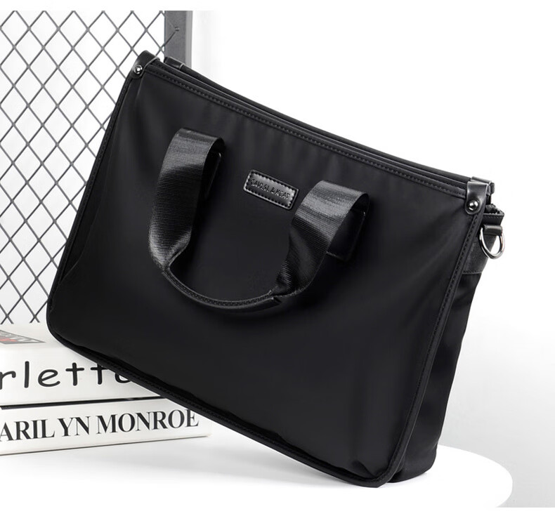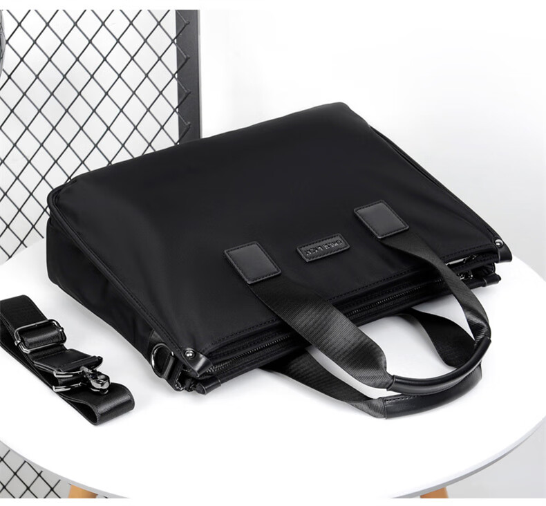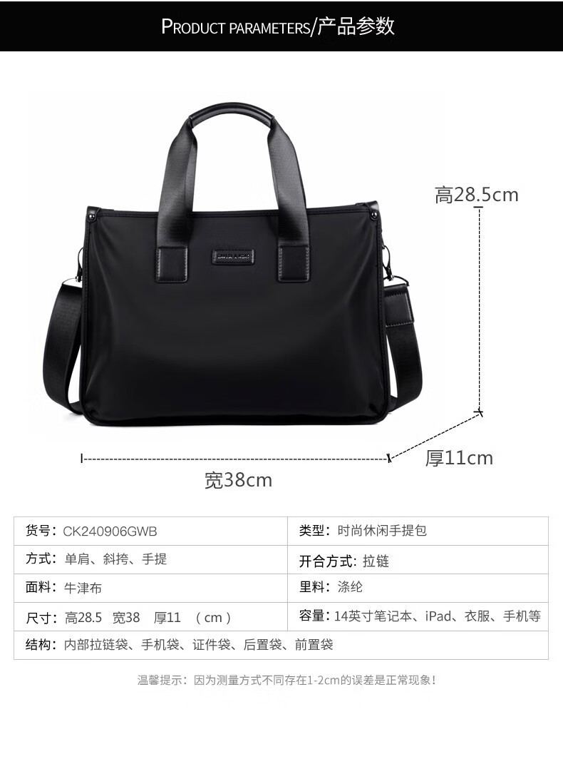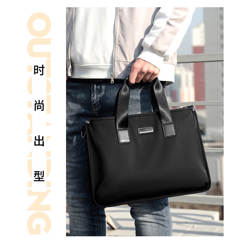 CavlslKcat canvas briefcase men's handbag casual business office computer bag large capacity business trip shoulder crossbody backpack black large bag 15.6 inches 39*11*29cm