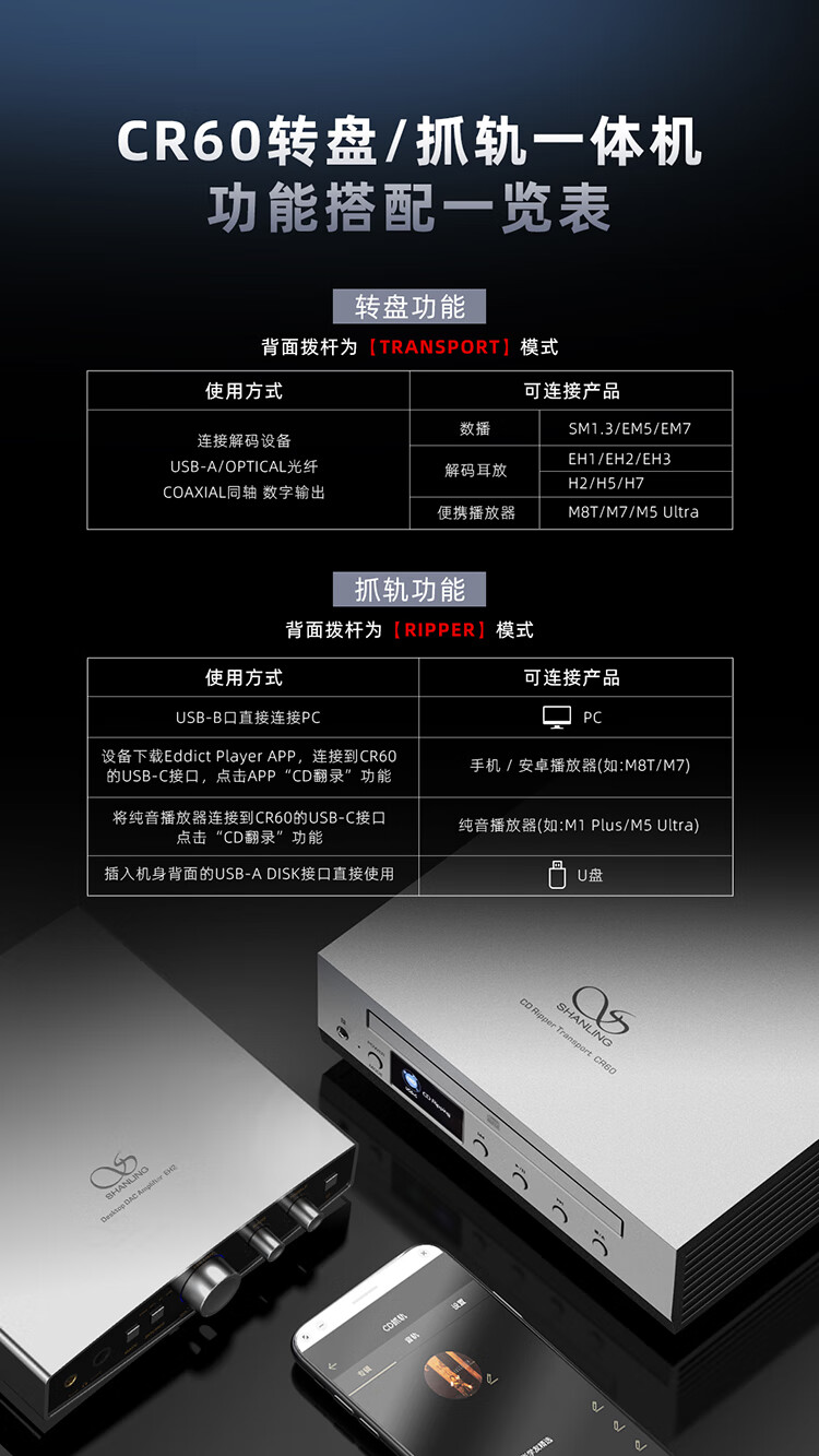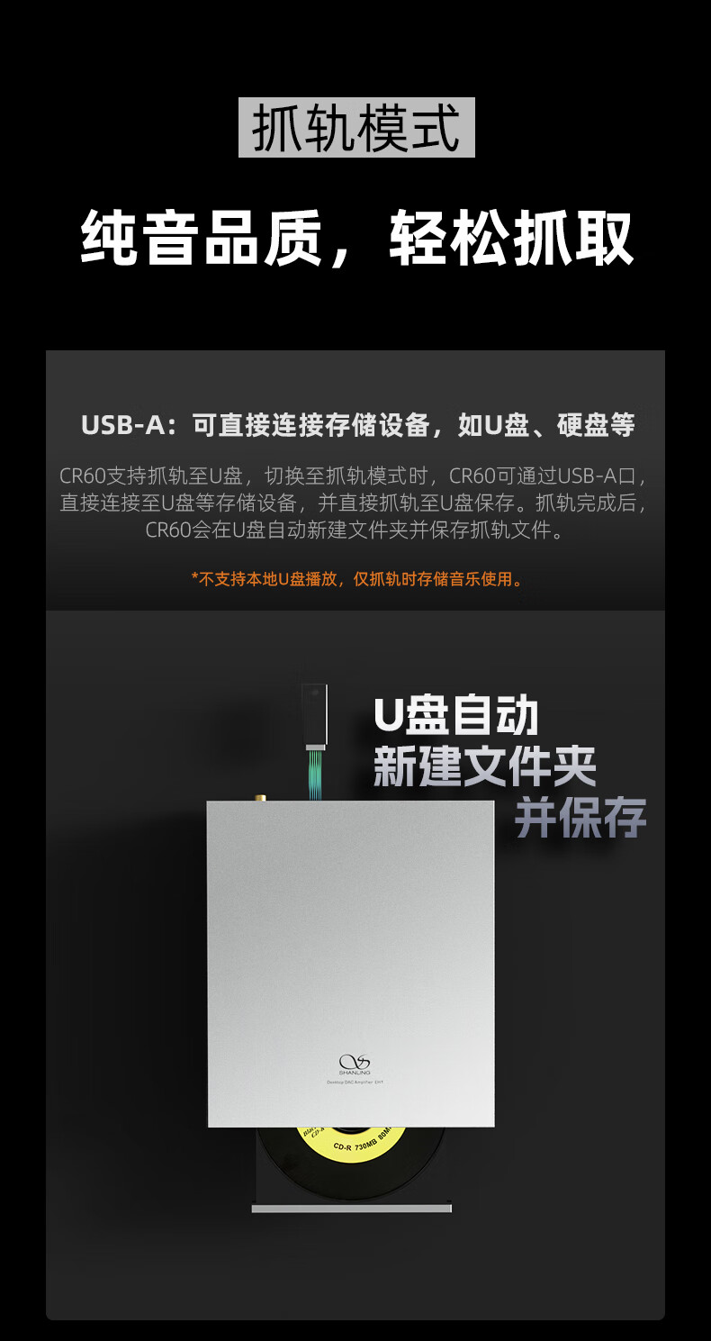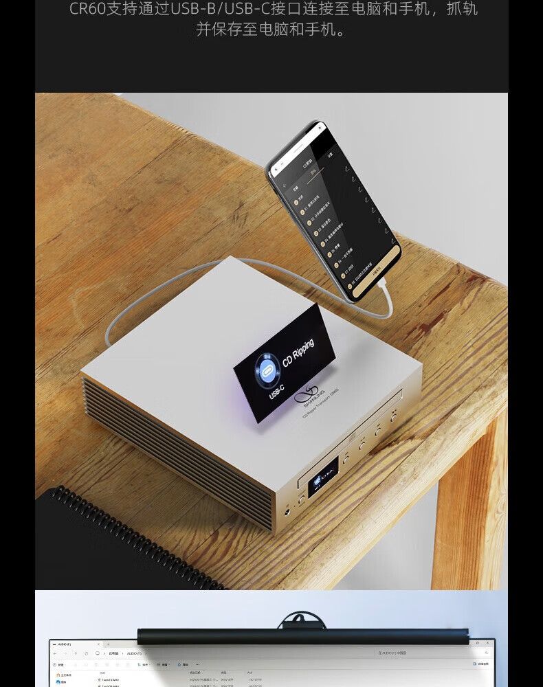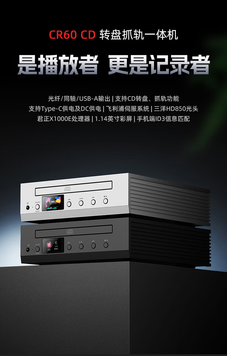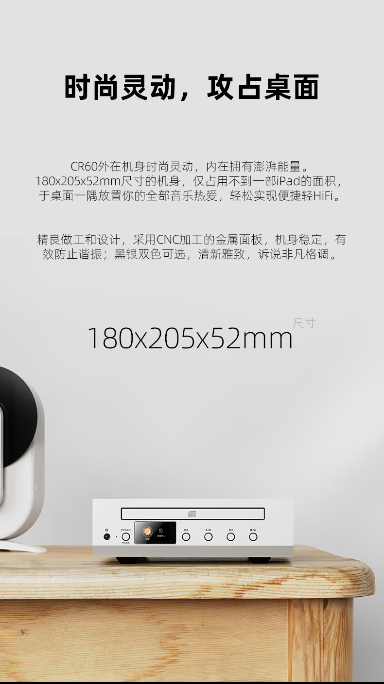SHANLING CR60 CD turntable and track all-in-one HiFi fever home desktop lossless player digital turntable U disk hard disk desktop CD player CR60 silver