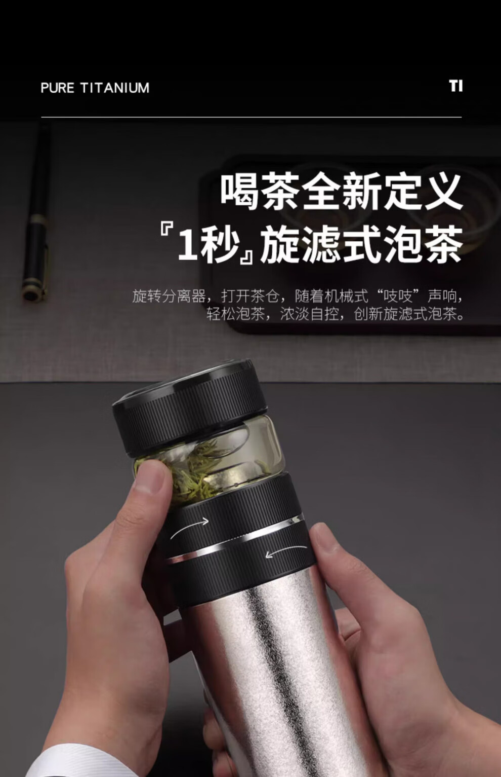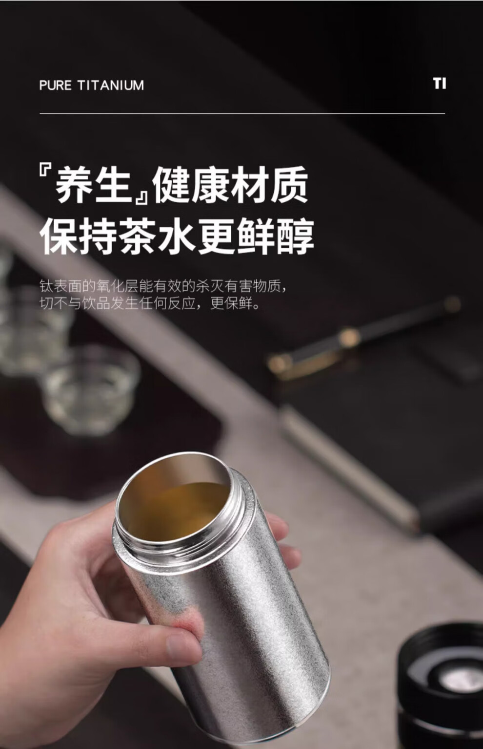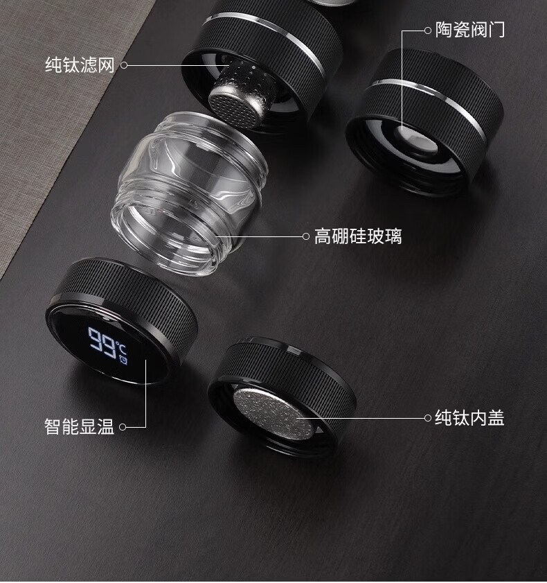 Corelate Swiss Pure Titanium Insulated Cup Men's Business Tea and Water Separation Office Tea Cup Engraving Birthday Gift for Boyfriend Business Black Tea and Water Separation 450ml