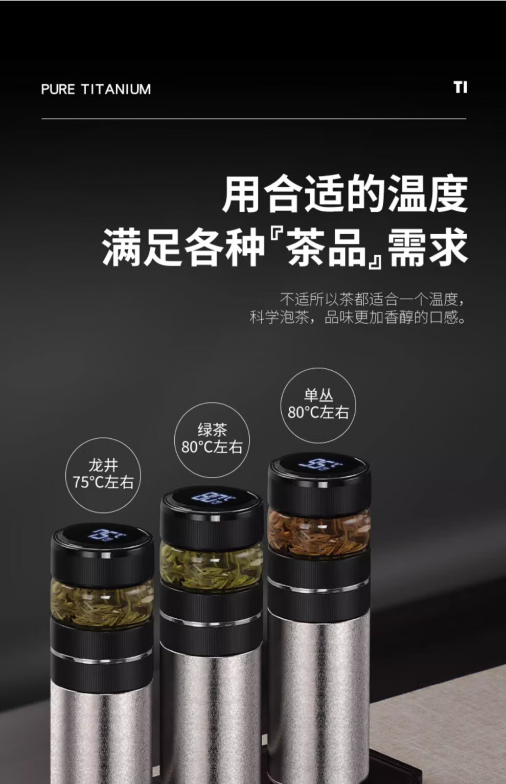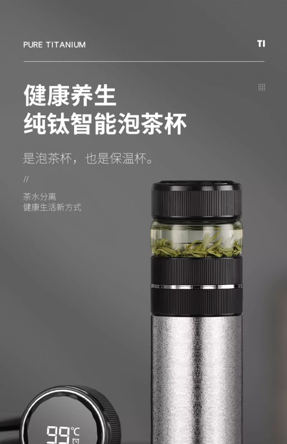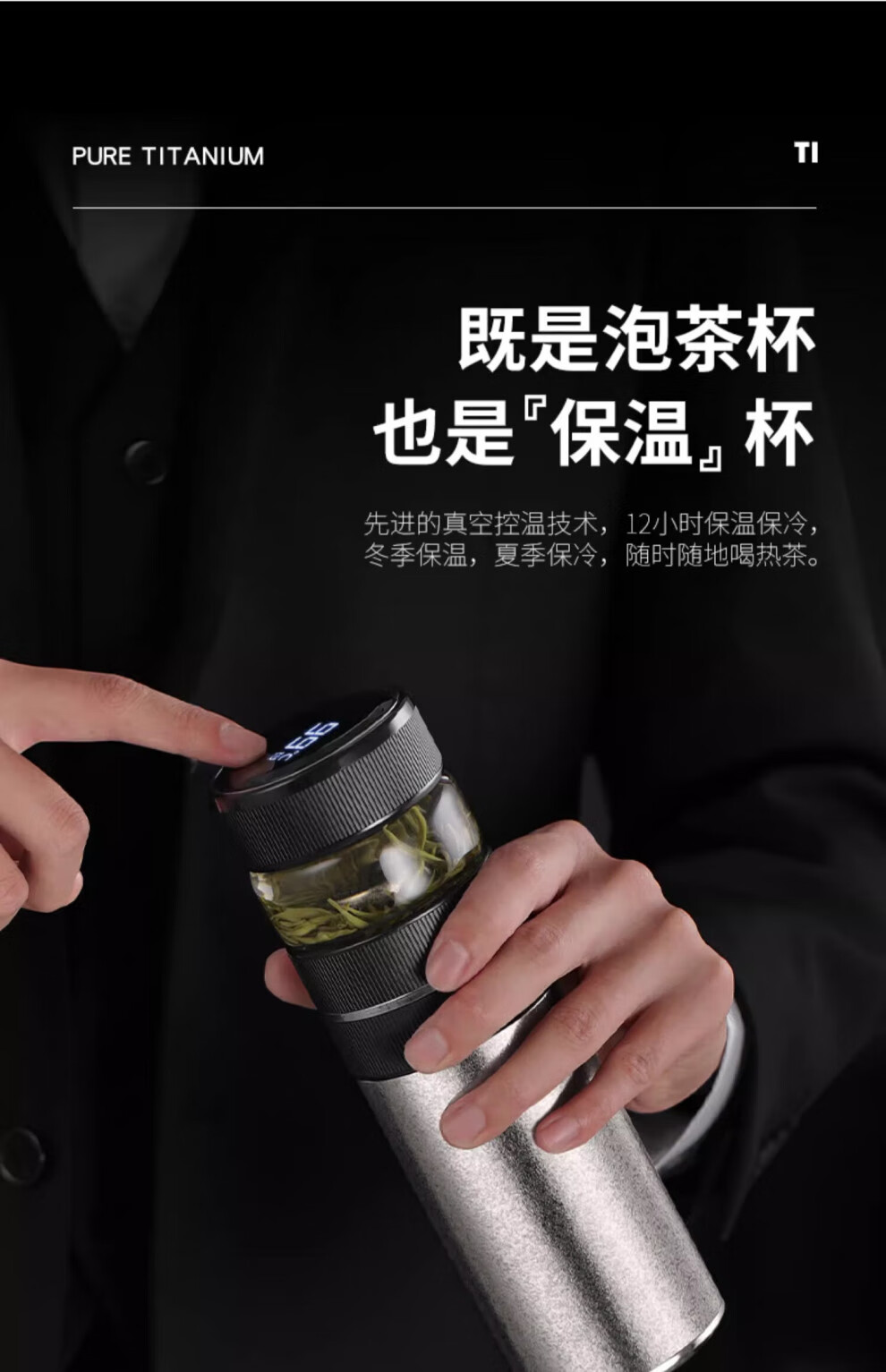 Corelate Swiss Pure Titanium Insulated Cup Men's Business Tea and Water Separation Office Tea Cup Engraving Birthday Gift for Boyfriend Business Black Tea and Water Separation 450ml