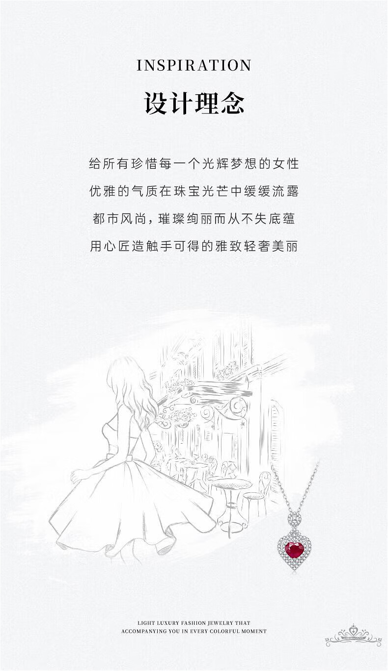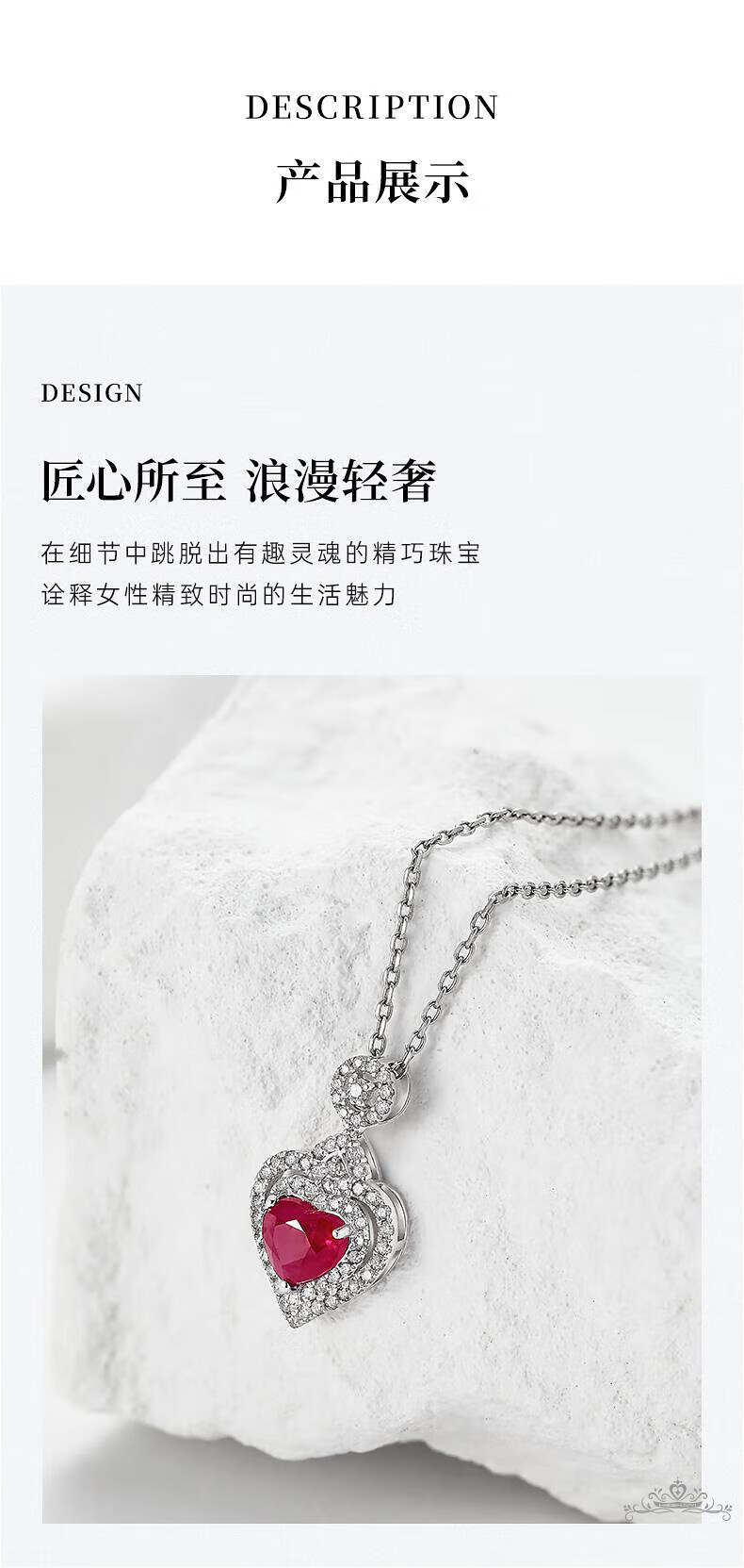 Haikai Necklace Women's Ruby Necklace Luxury Jewelry Chinese Valentine's Day Birthday Gift for Wife or Girlfriend Pigeon Blood Red Heart-Shaped Ruby Necklace (1CT)
