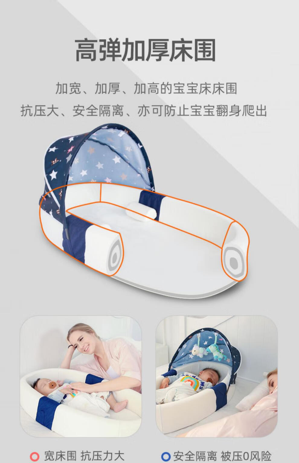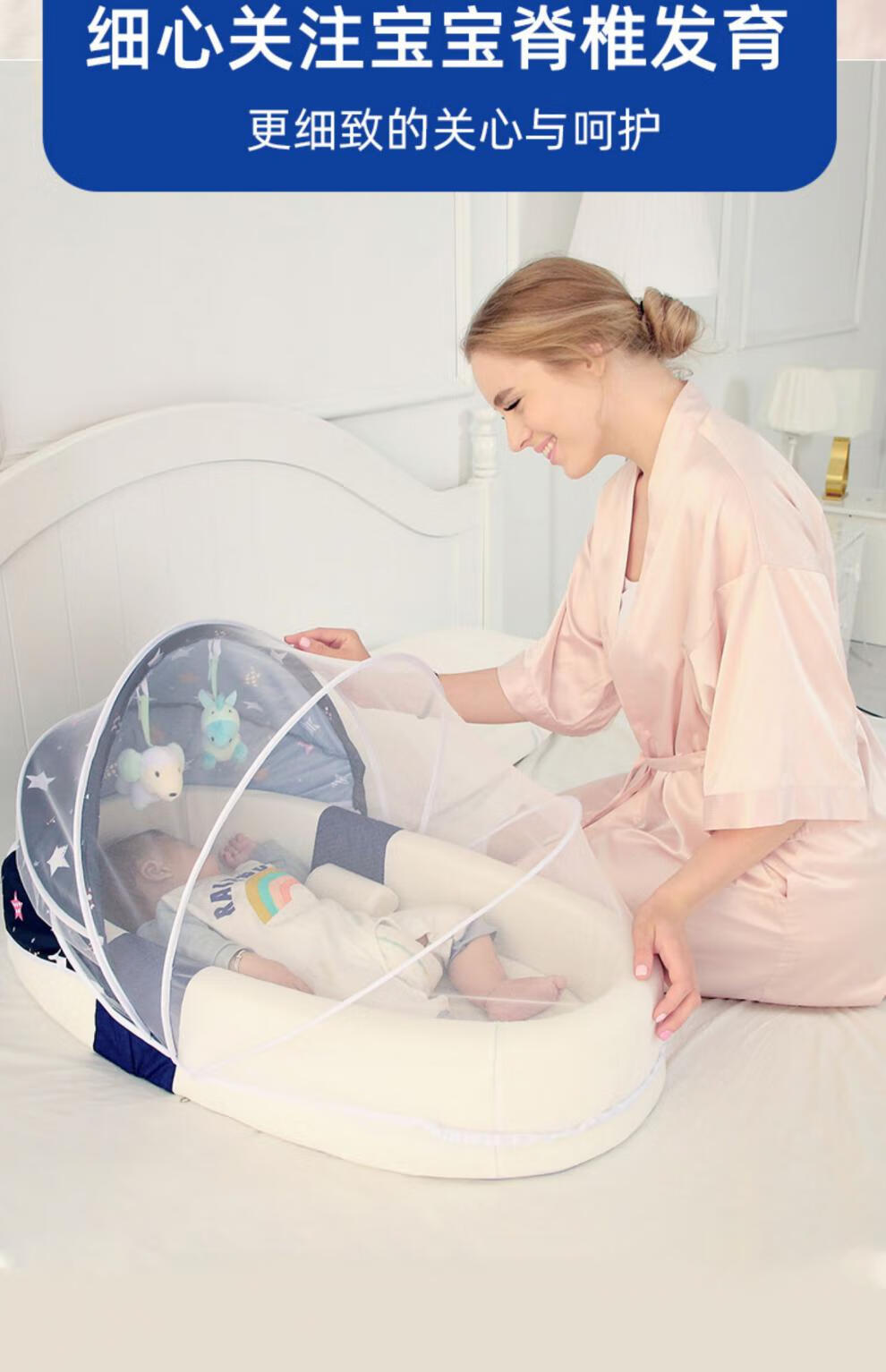Yellow skin portable bed-in-bed baby crib newborn bb nap bed bionic anti-vomiting jump bed anti-pressure gold high-end model Tiffany blue