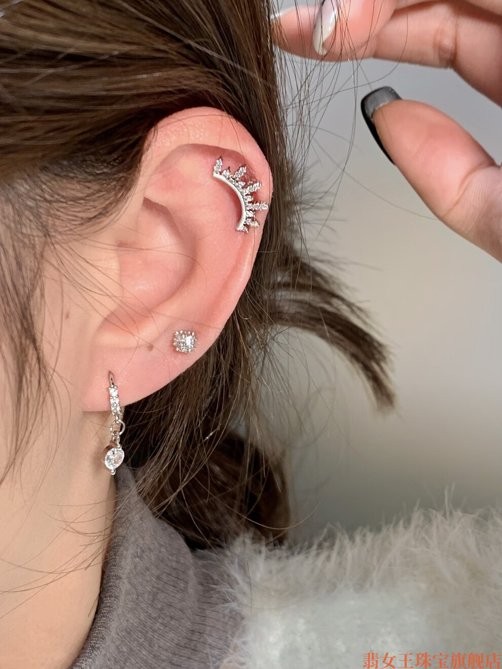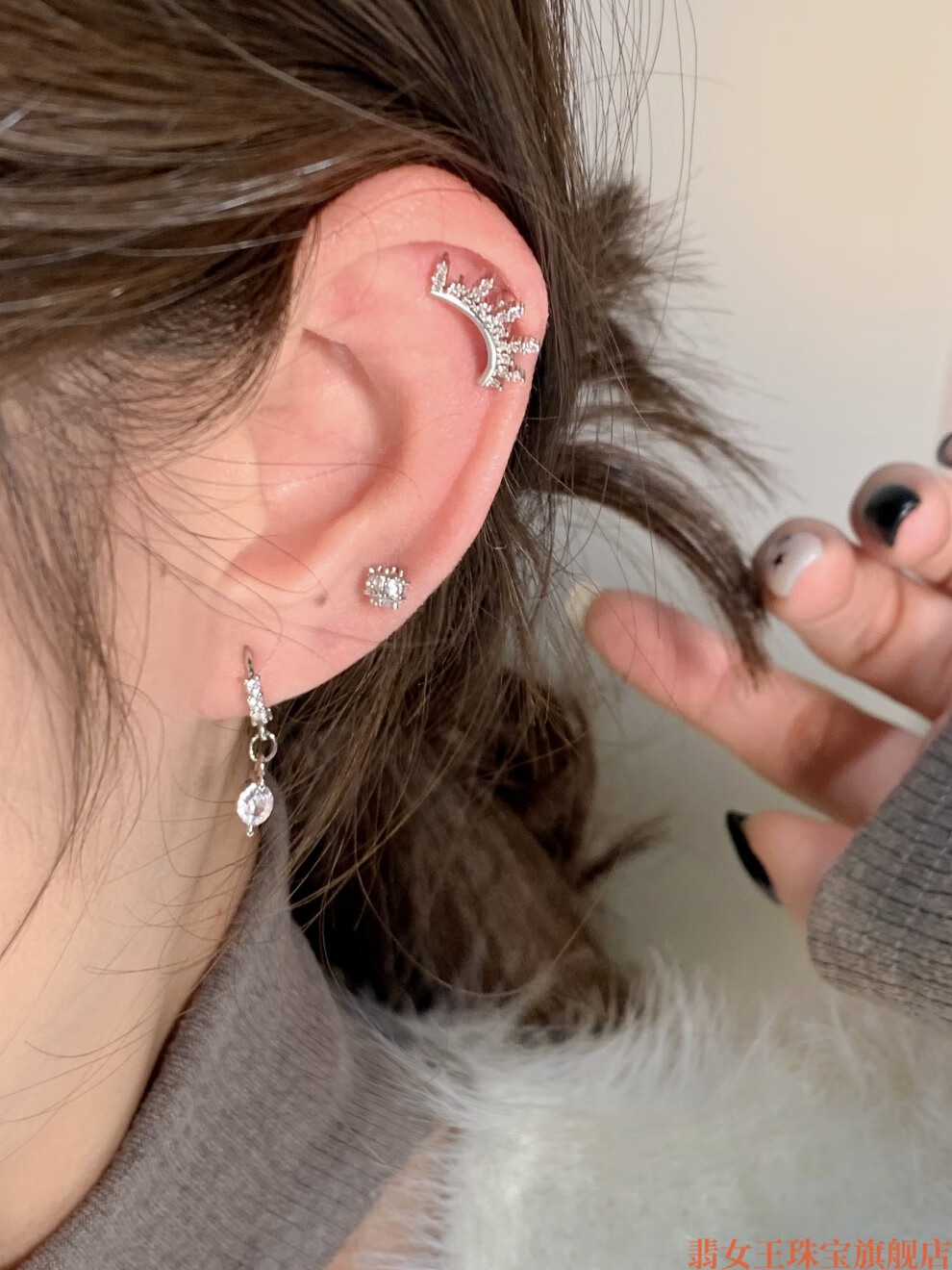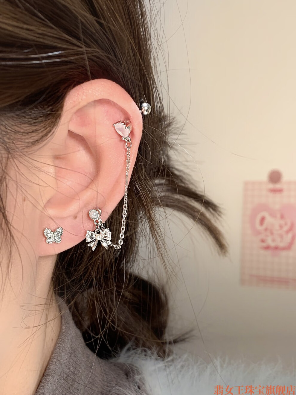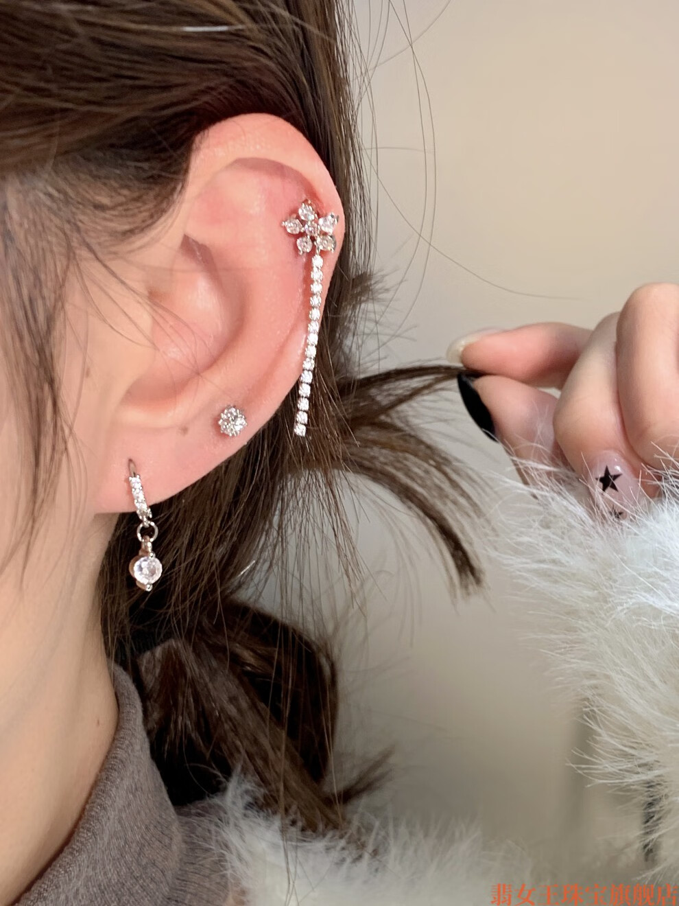 Shixiang Ear Bone Earrings 2024 New Sweet and Cool Double Ear Hole Niche Chain Earrings Screw Buckle Cochlear Nails Titanium Steel Nails Women's Ear Stars Medical Titanium Steel Single Pack