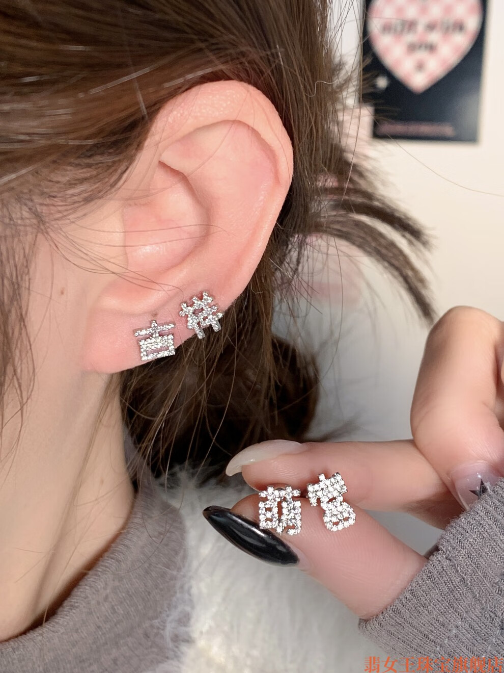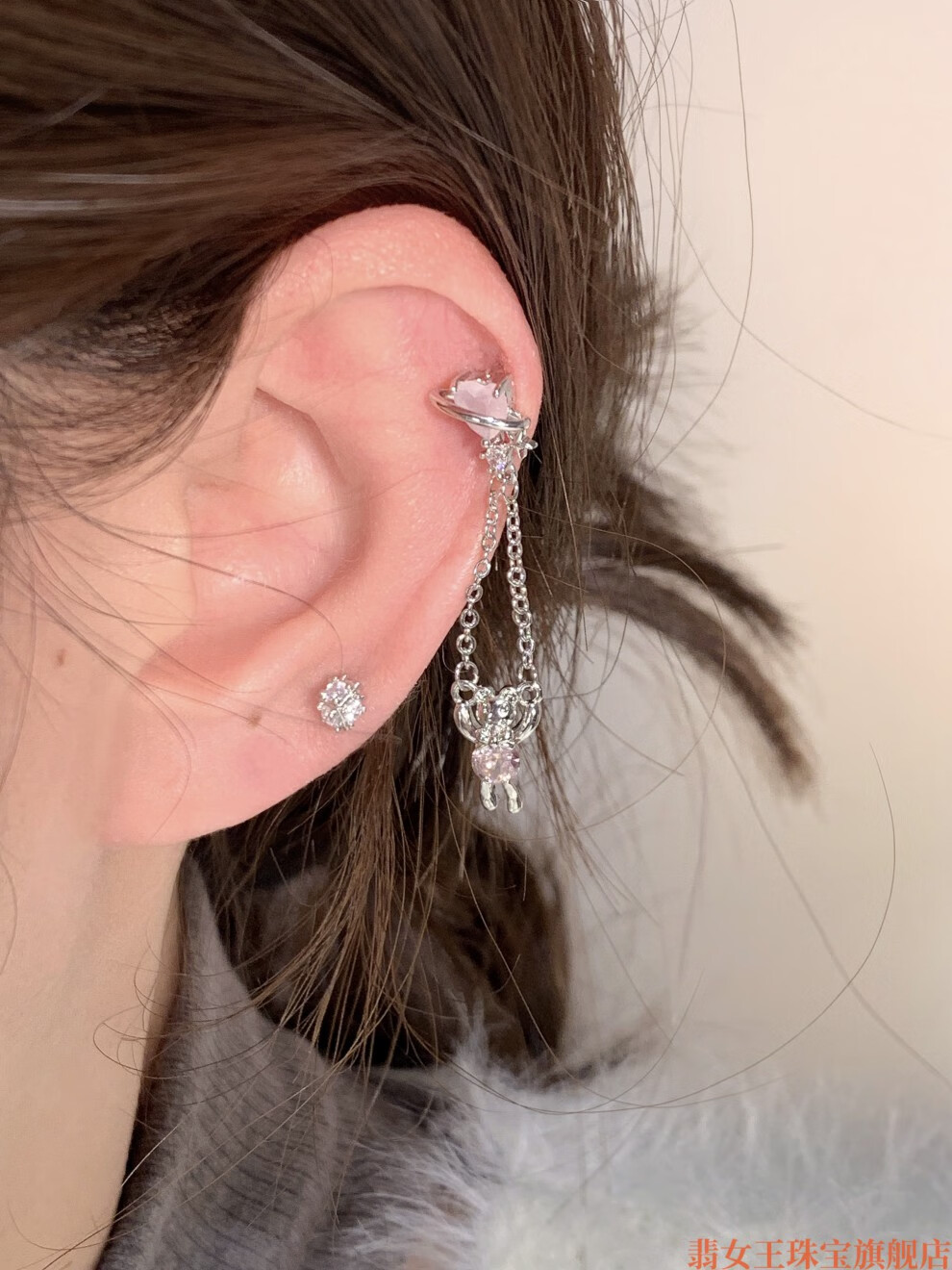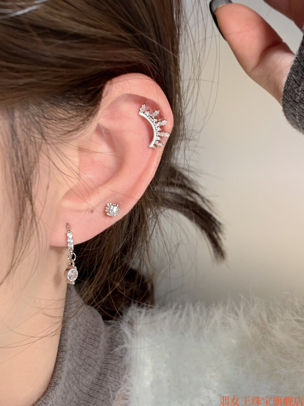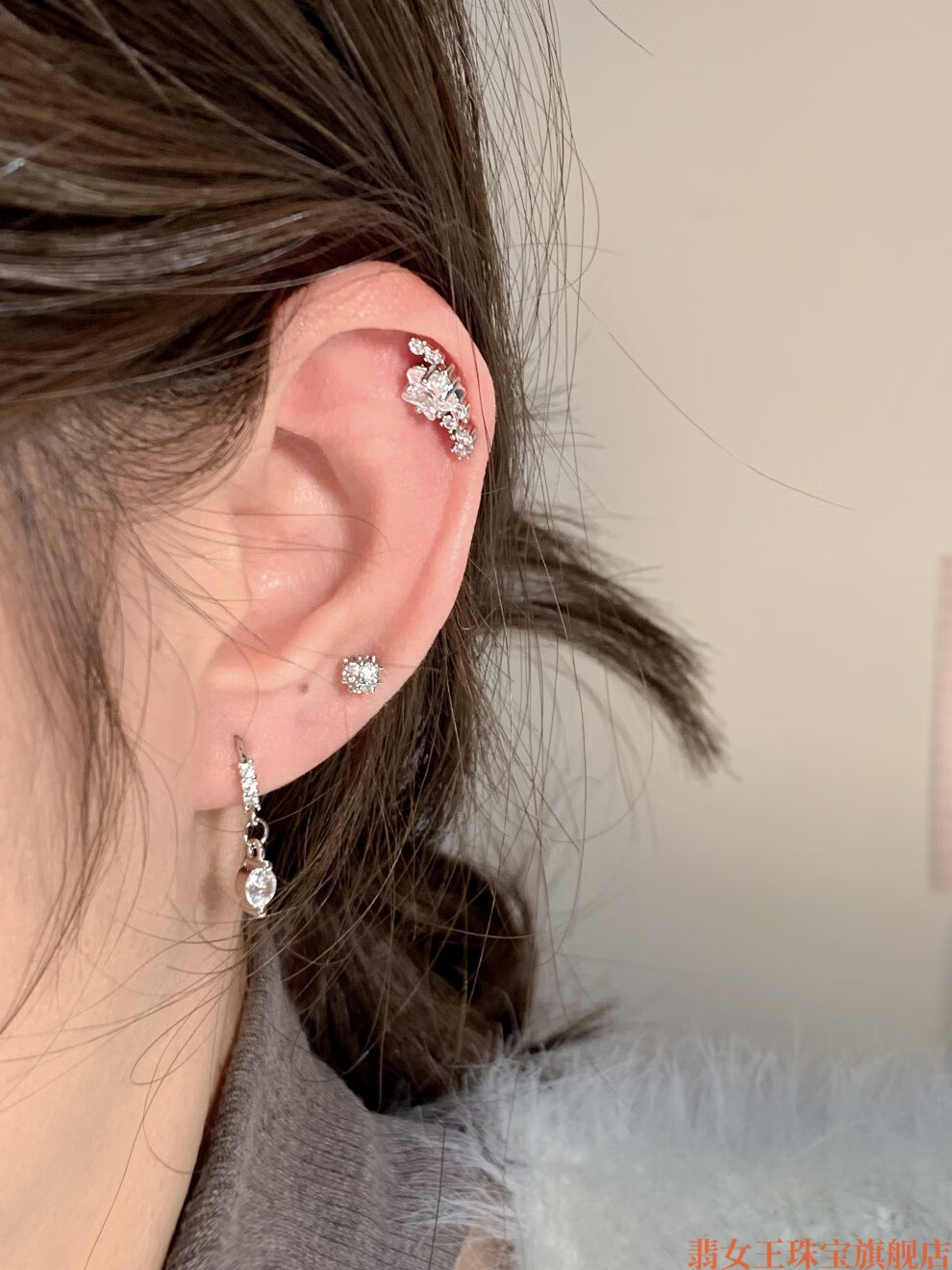 Shixiang Ear Bone Earrings 2024 New Sweet and Cool Double Ear Hole Niche Chain Earrings Screw Buckle Cochlear Nails Titanium Steel Nails Women's Ear Stars Medical Titanium Steel Single Pack