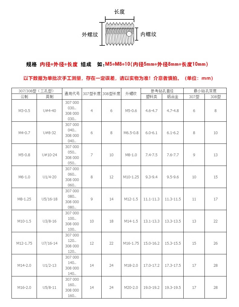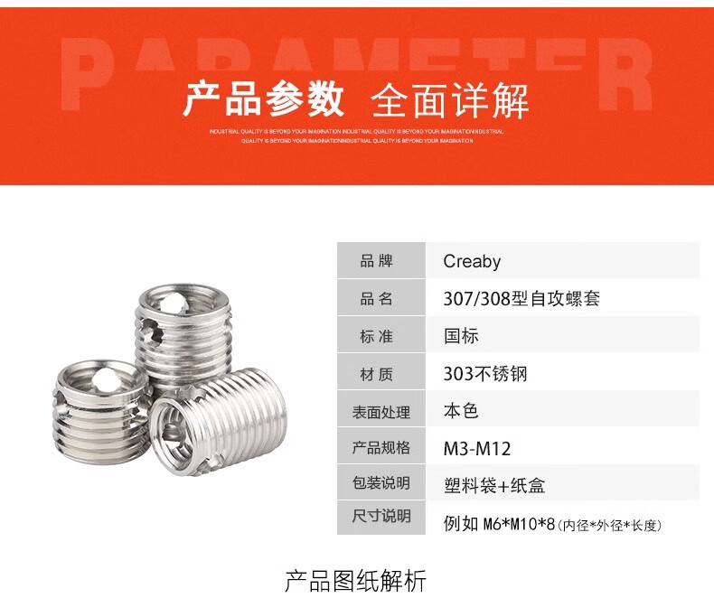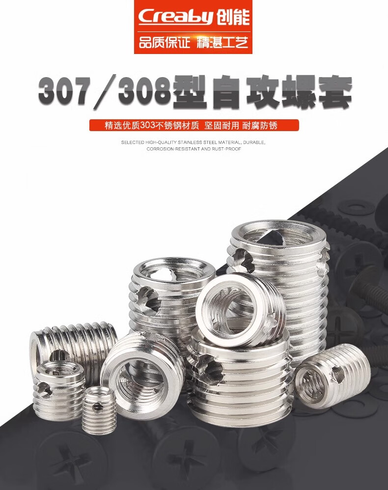 Creaby307/308 stainless steel self-tapping screw sleeve/thread protective sleeve three-hole braces M3*5*4 2 pieces-307 type