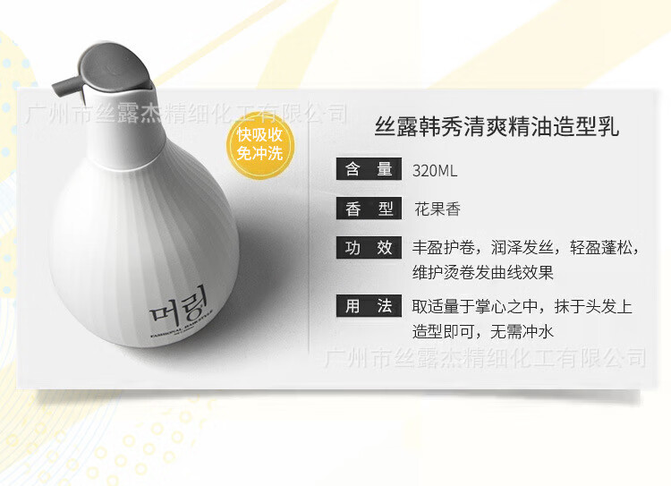 SLUJ Hanxiu Refreshing Essential Oil Hair Care Styling Cream Elastin Encounter Fragrance 1 Bottle 320ml One Bottle