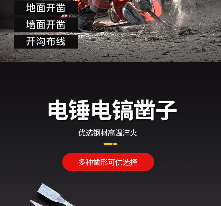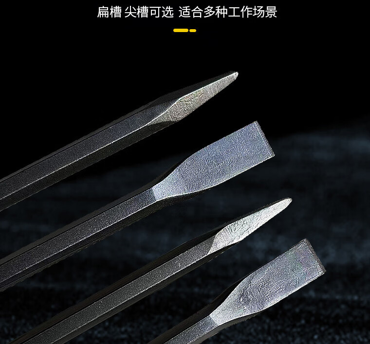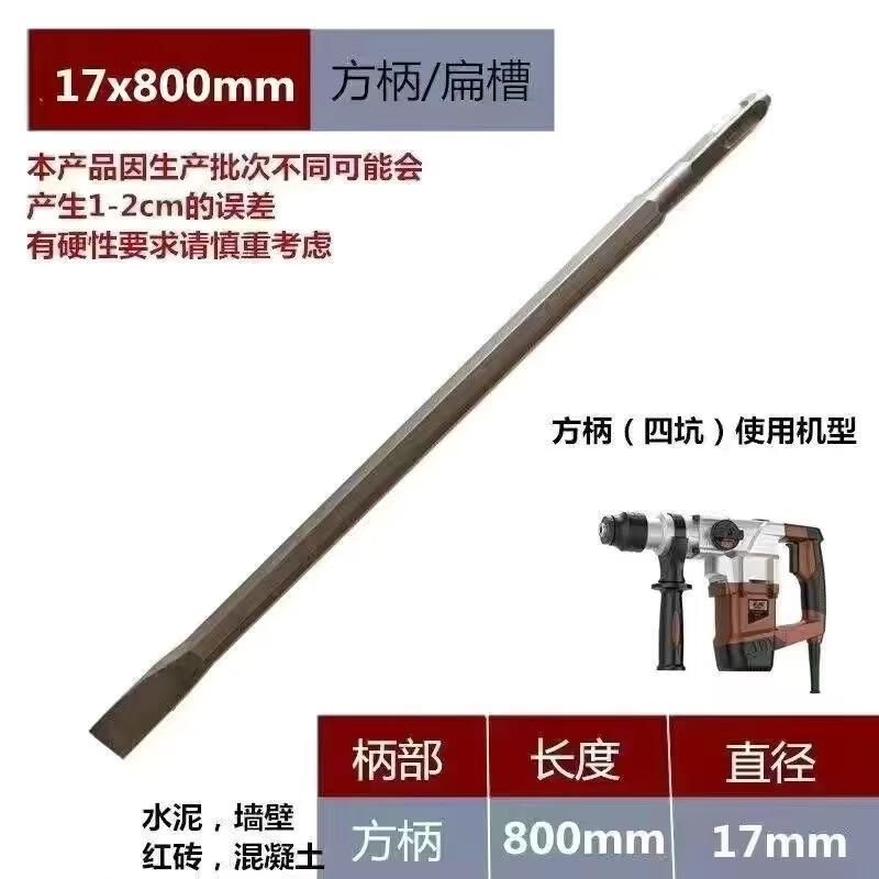 Qinkai electric hammer impact drill square head round handle hexagonal handle pointed flat chisel pickaxe electric pick shovel slotting drill concrete heavy-duty electric hammer square handle 22 cm long pointed chisel