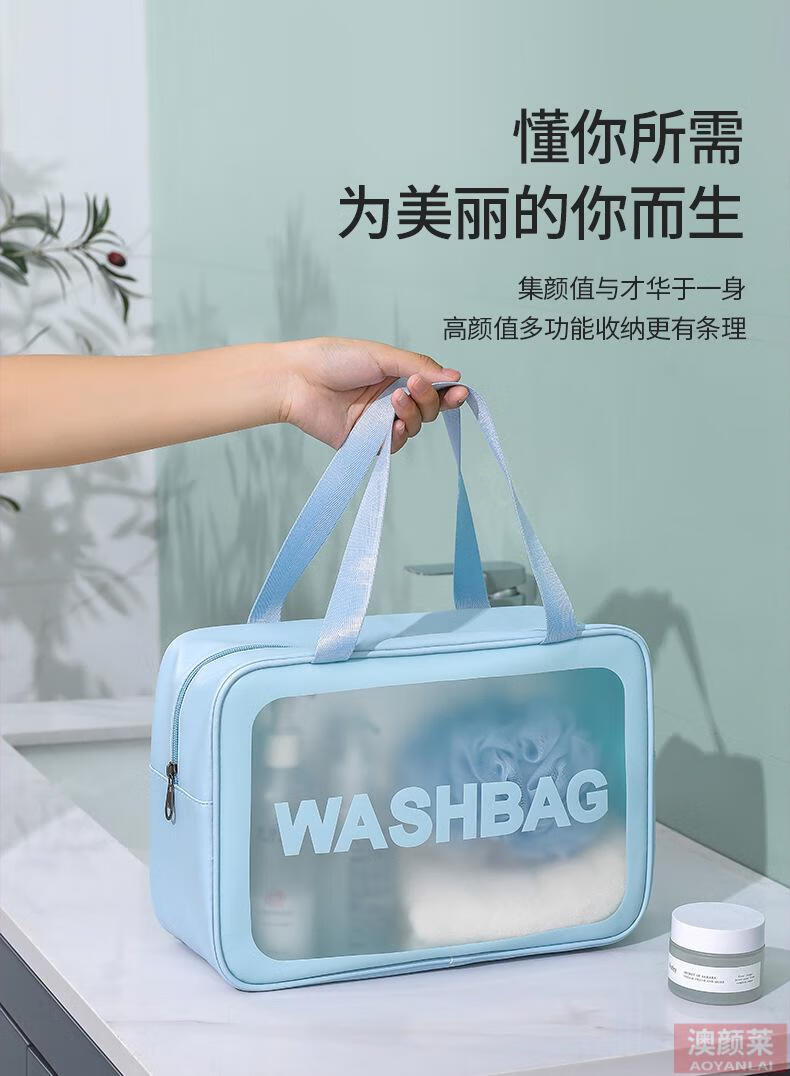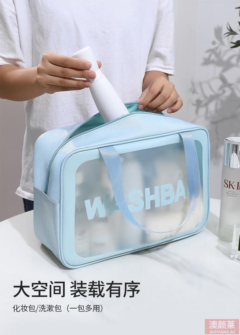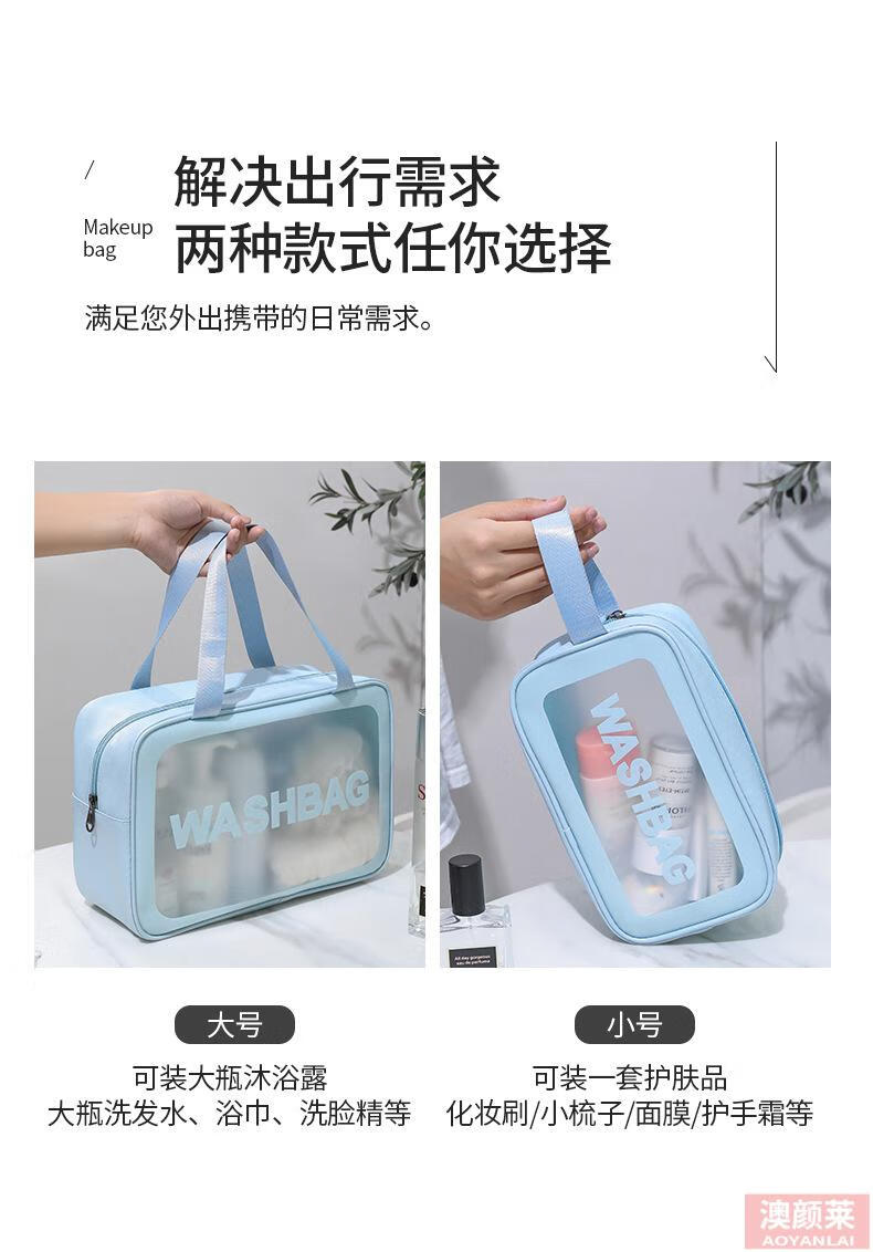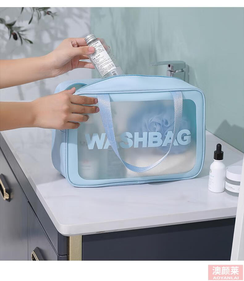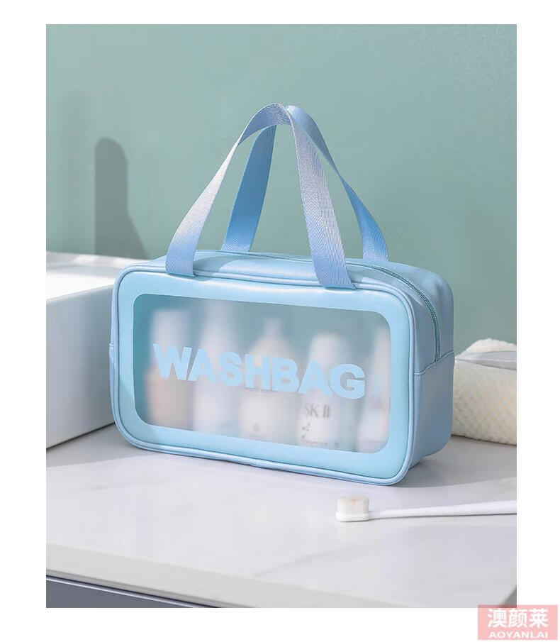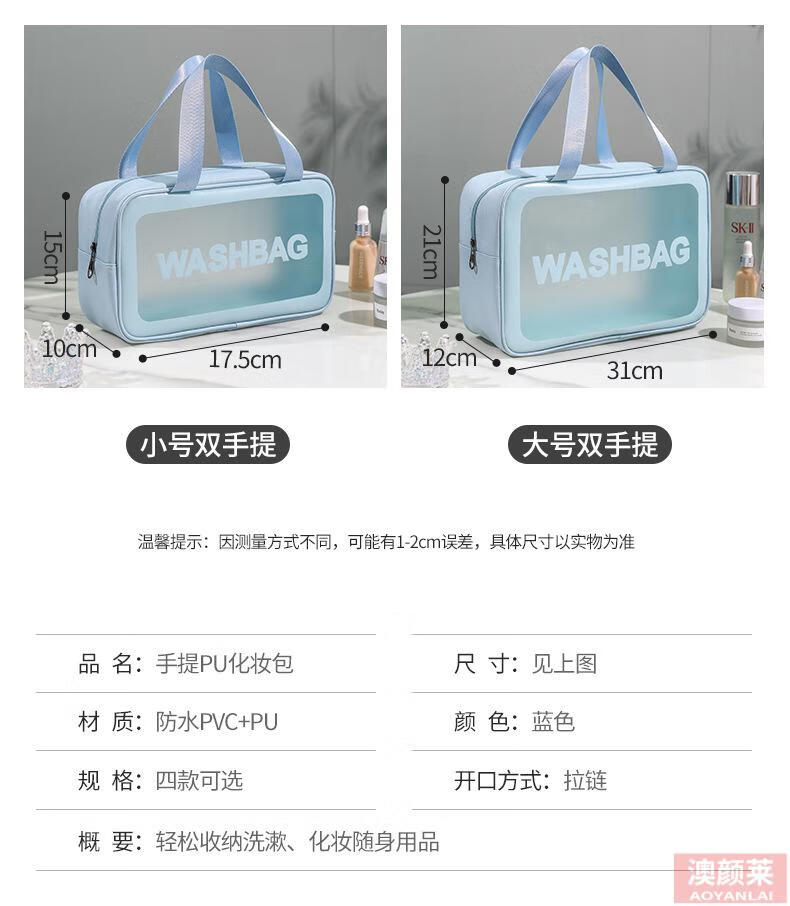 Pu transparent cosmetic bag ins style pvc portable frosted bath waterproof portable toiletry bag cosmetics blue small size