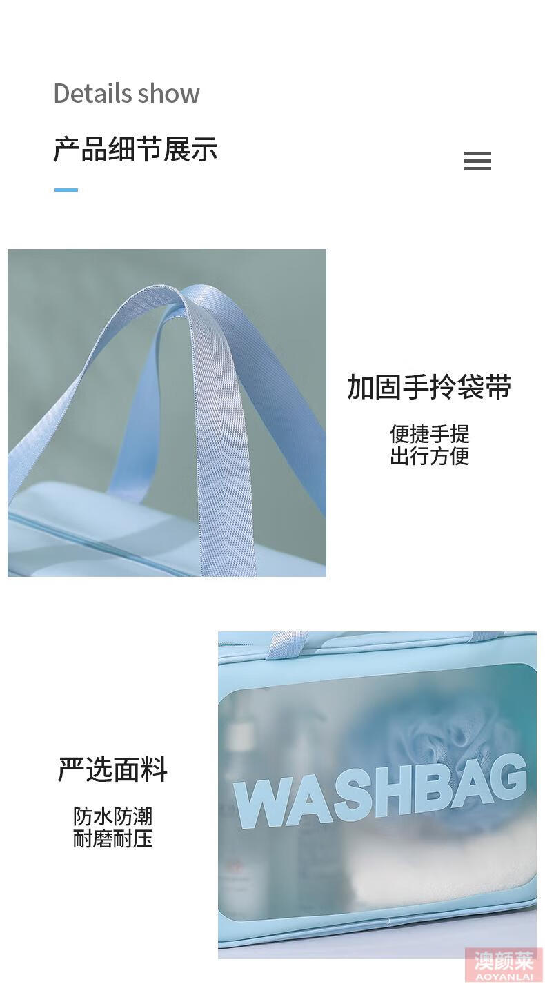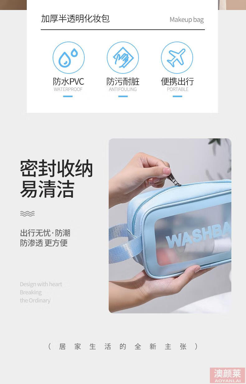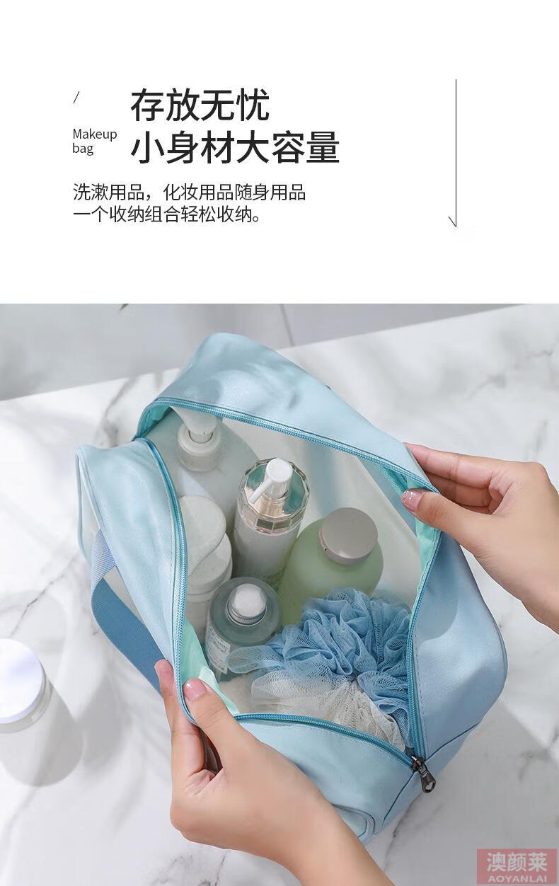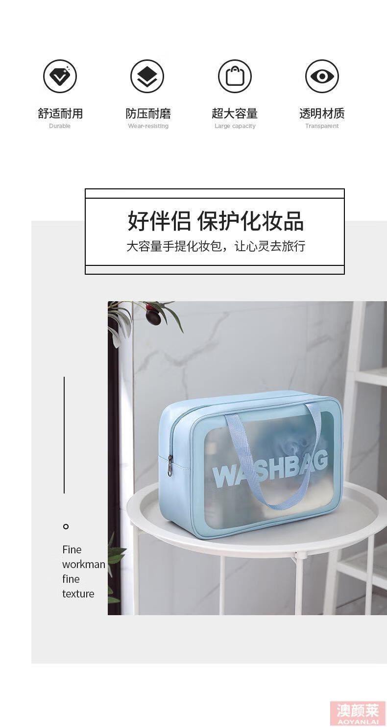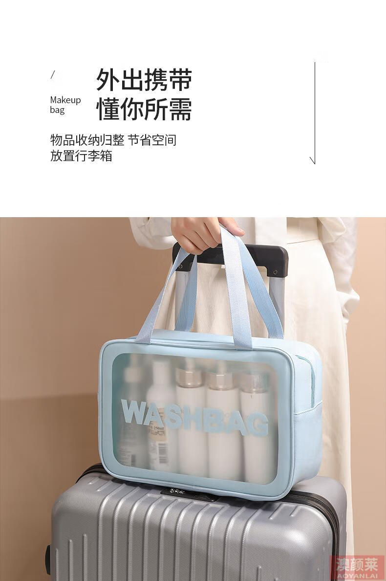 Pu transparent cosmetic bag ins style pvc portable frosted bath waterproof portable toiletry bag cosmetics blue small size