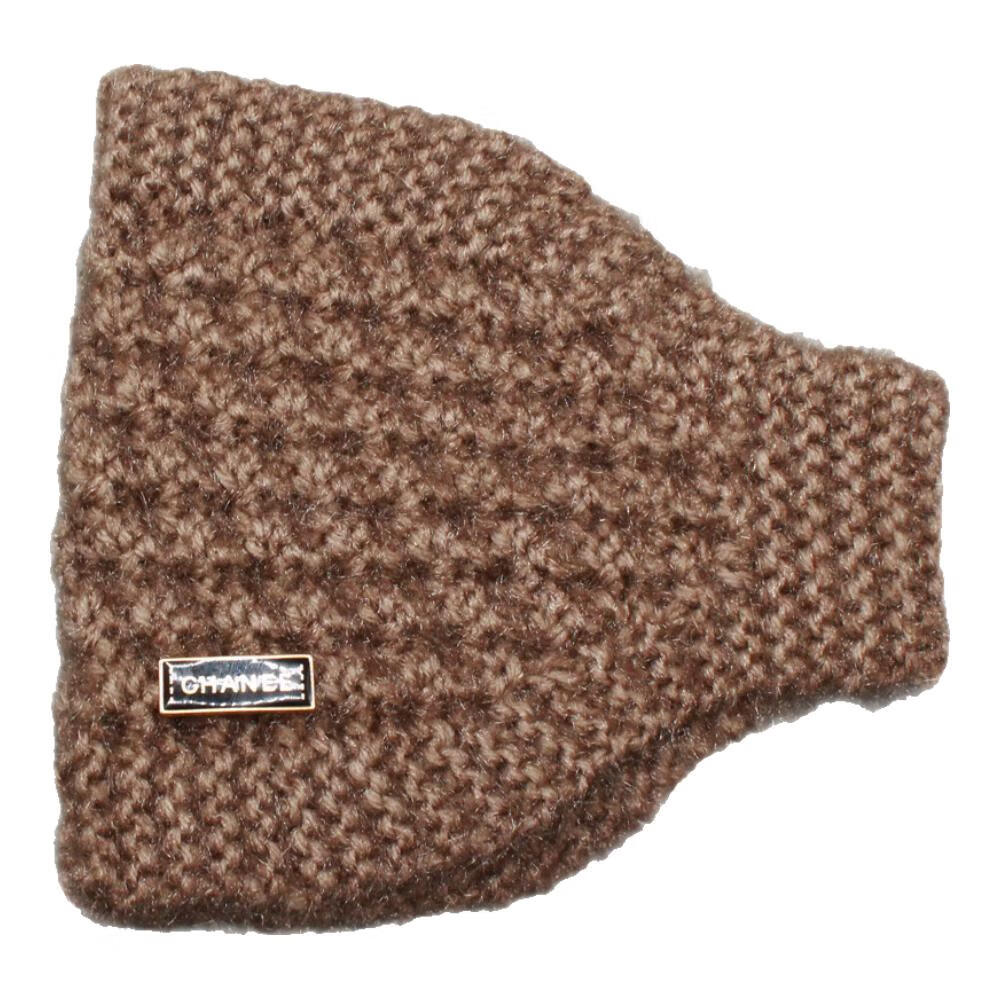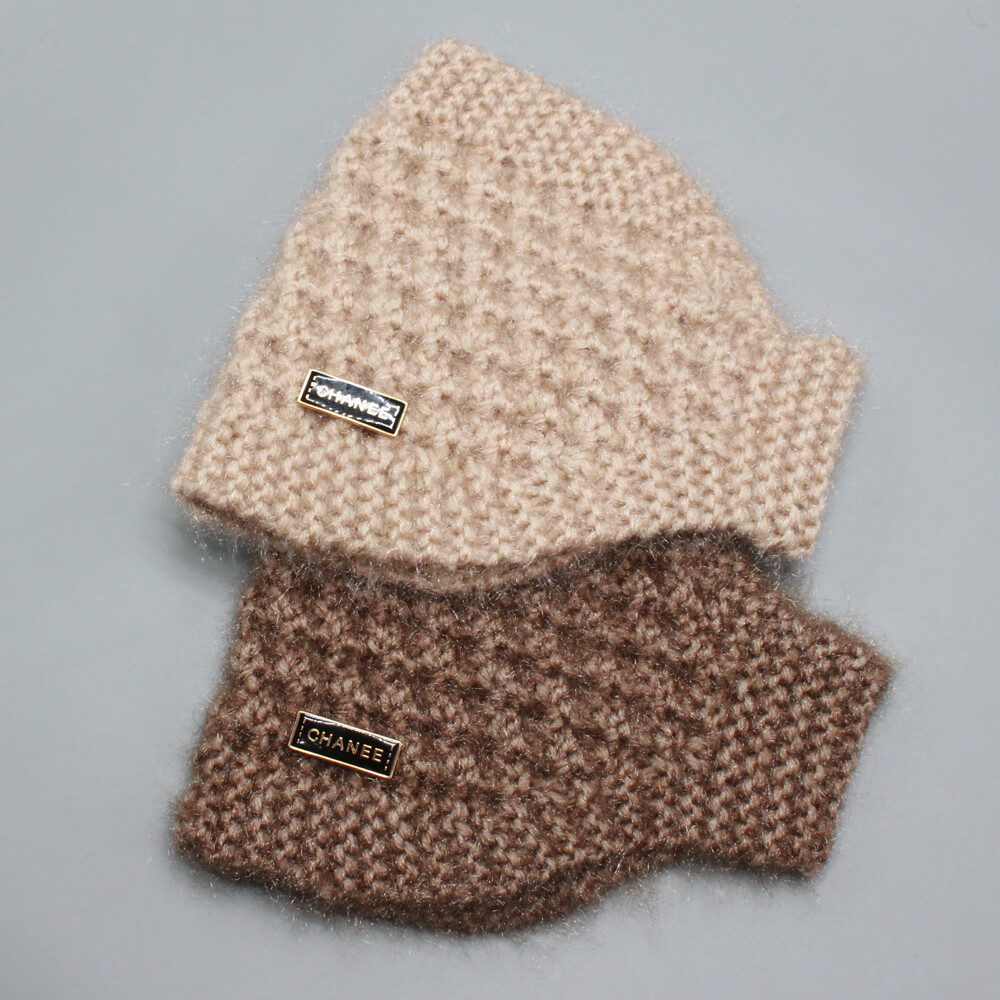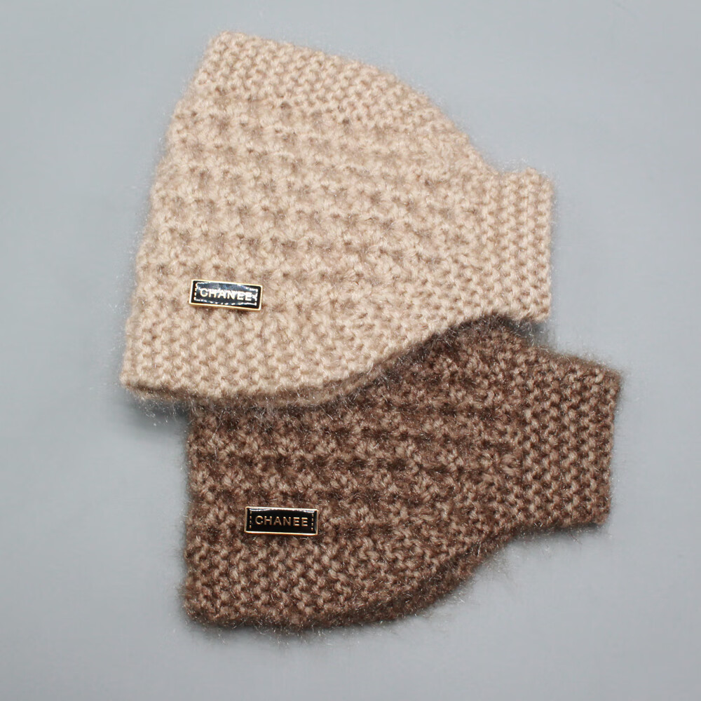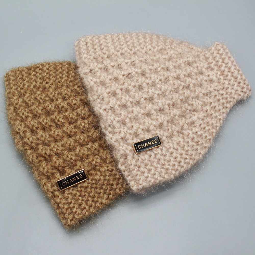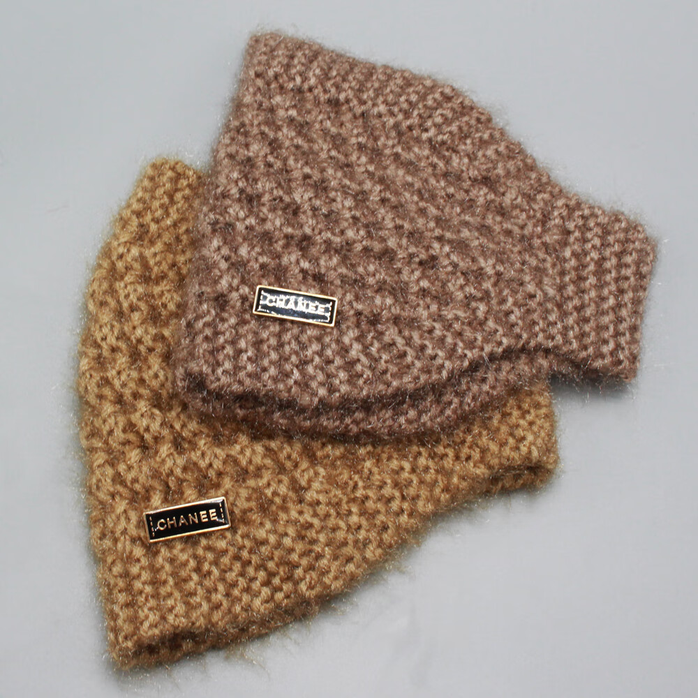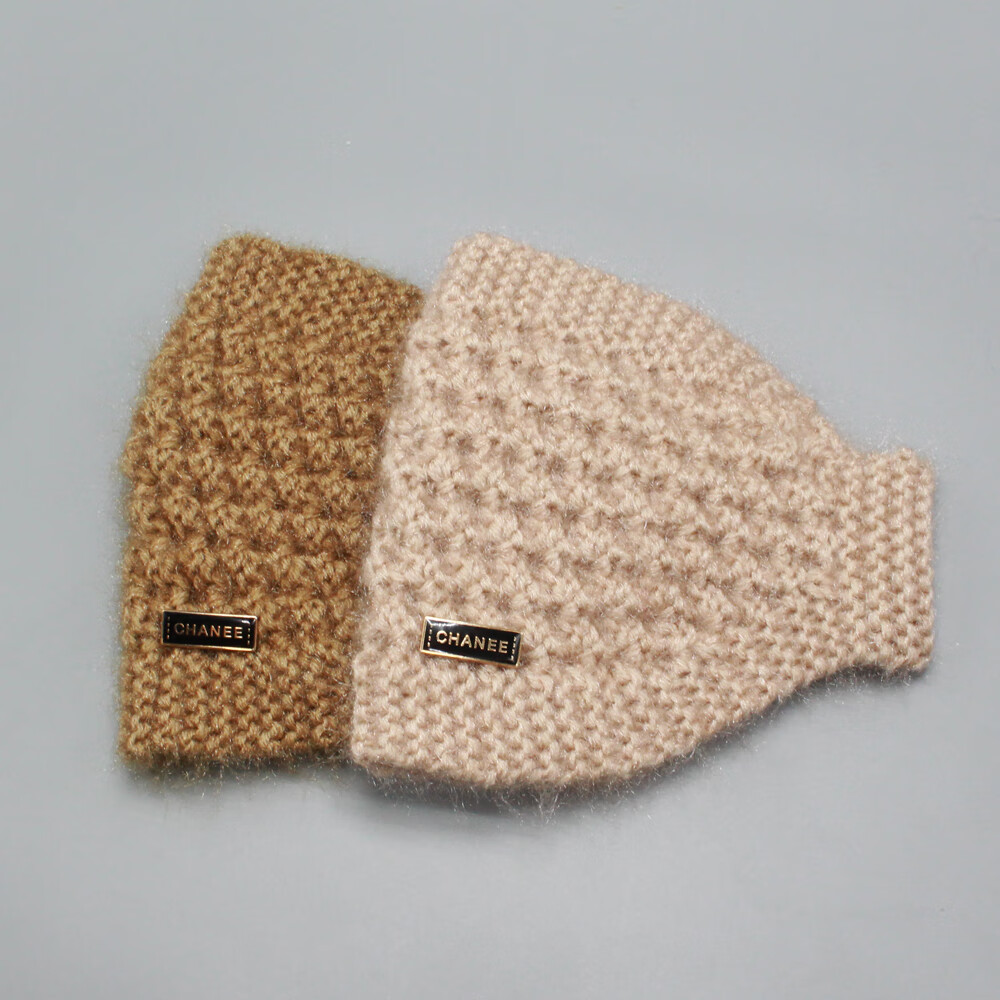 West Kiss Squirrel's new wide-brimmed hat with high temperament and good looks, knitted winter handmade warm headscarf, hair band, khaki color