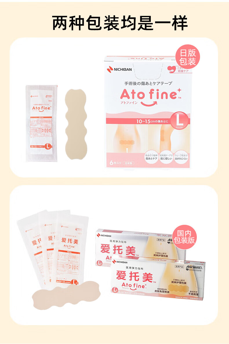 Atofine Japanese original Atofine caesarean section scar patch for caesarean section tension reducing elastic patch body care set 6 pieces - 1 box - 1 month's supply