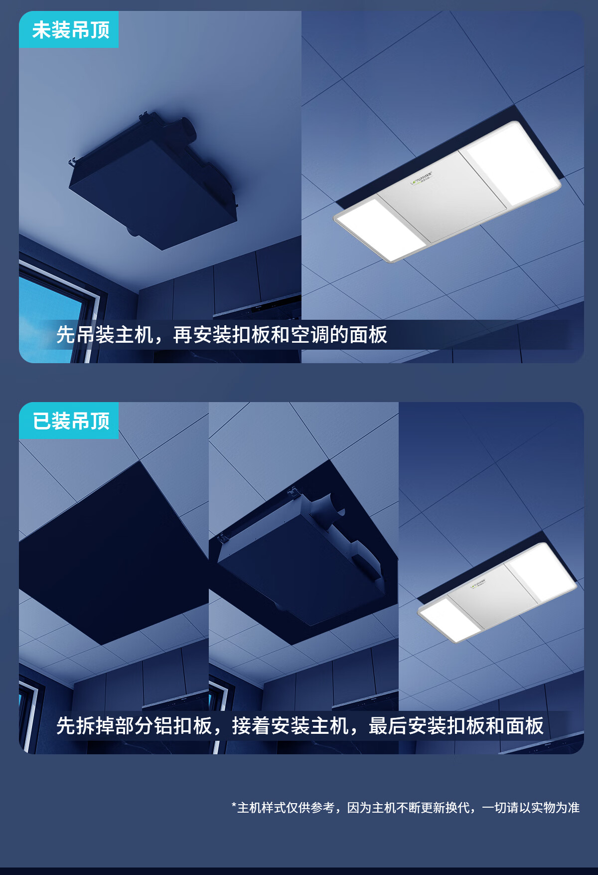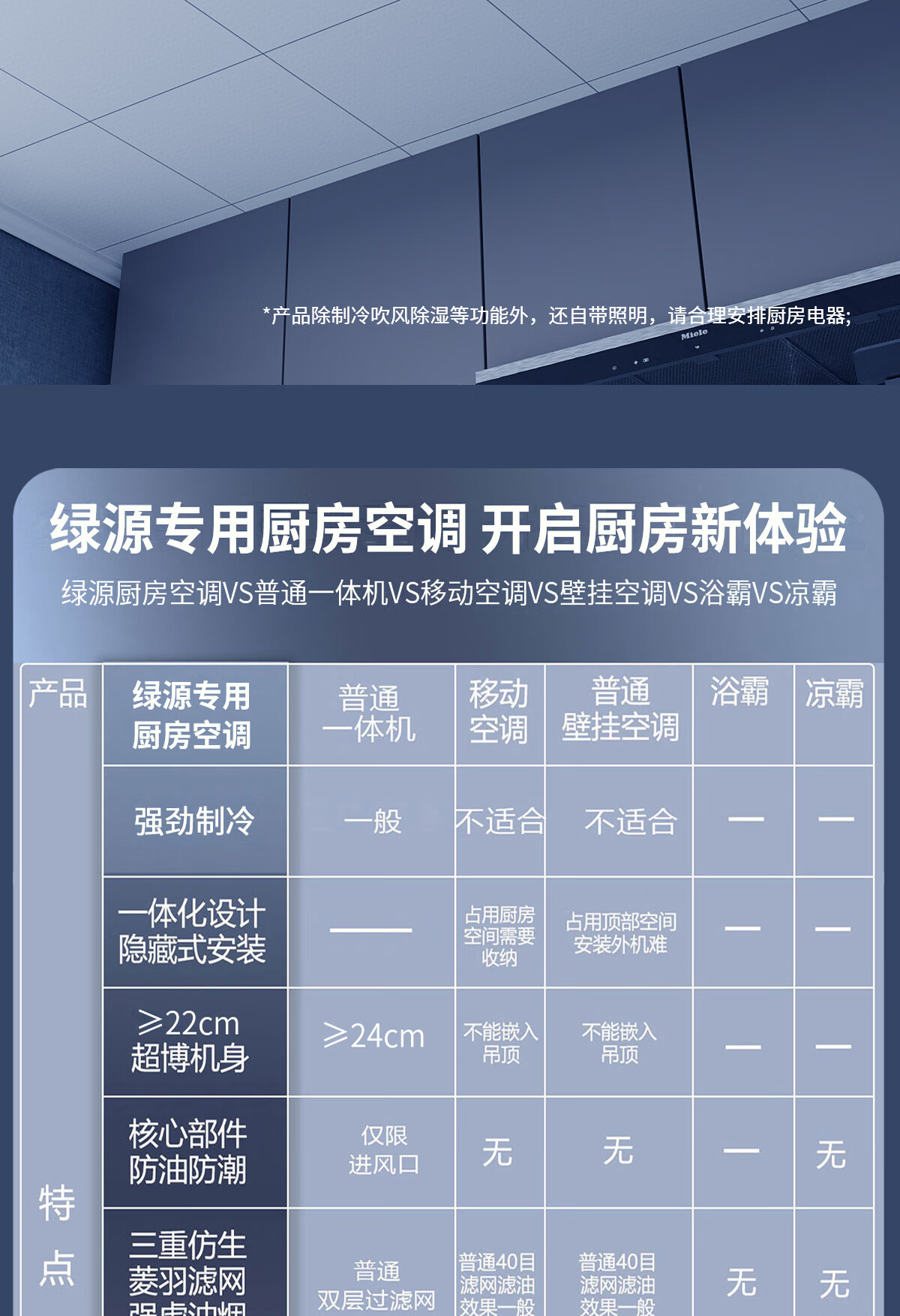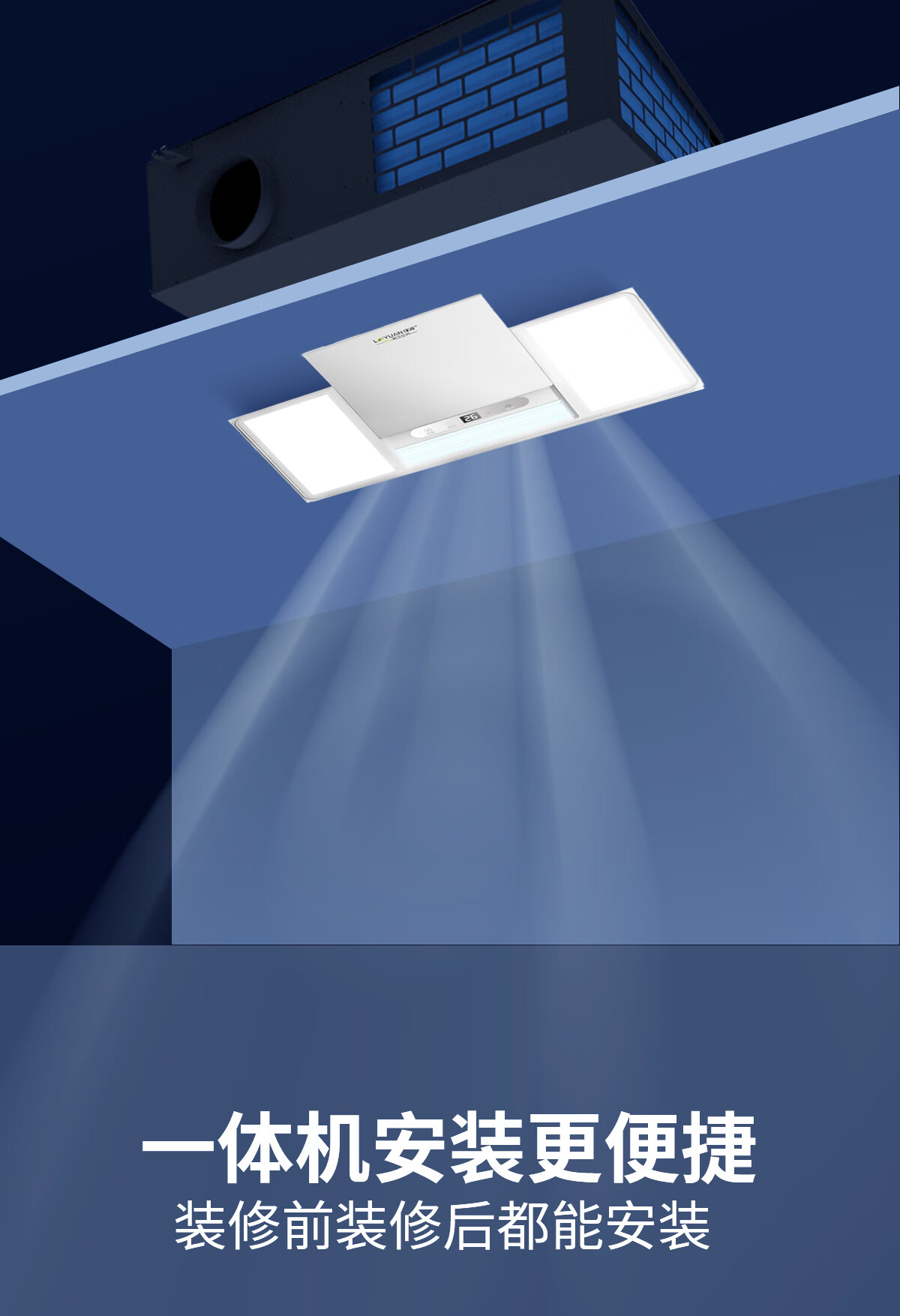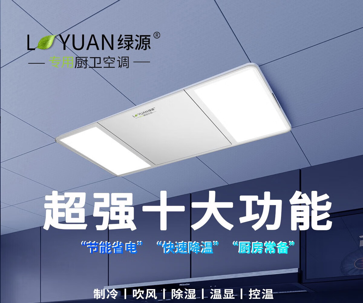 LVYUAN large kitchen single-cooling air conditioner, hidden all-in-one unit, large 1P, 2500W strong cooling capacity, lighting + dehumidification dual functions, no external unit, space-saving ceiling unit, large 1 piece set, lighting + cooling capacity 2500W-2 holes, T10 (single cooling)